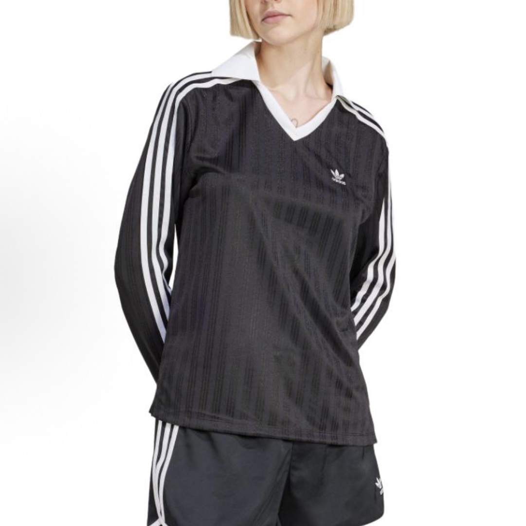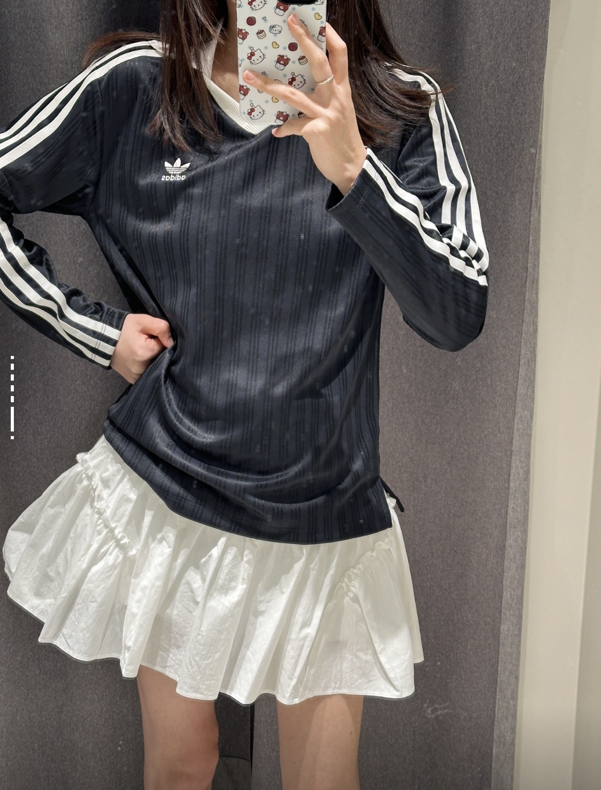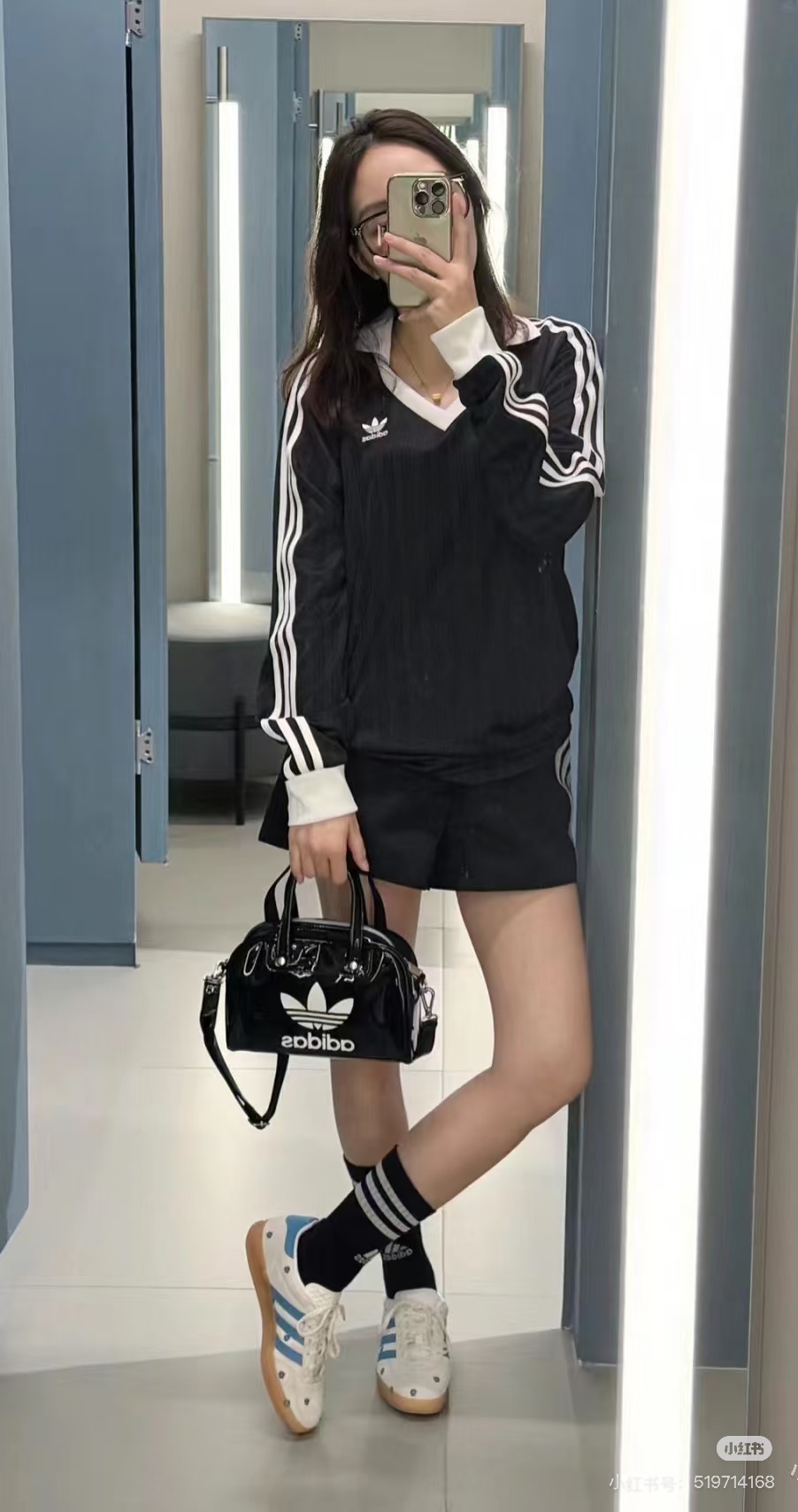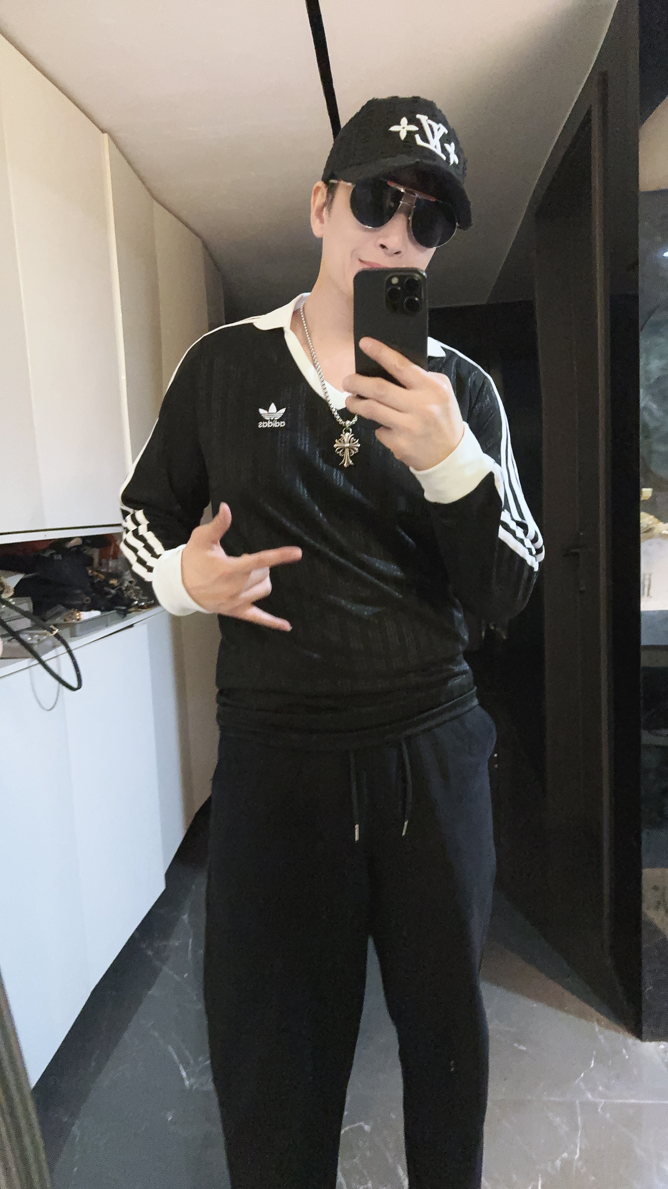 三叶草V领长袖🏈这款三叶草V领长袖,黑色主色调+三条杠,复古运动风满满!冰丝面料超透气,初秋穿刚刚好心宽松版型+翻领V领,修饰颈部线条,休闲又时髦计。日常通勤、运动都能轻松驾驭,搭配短裙或牛仔裤都很出彩!