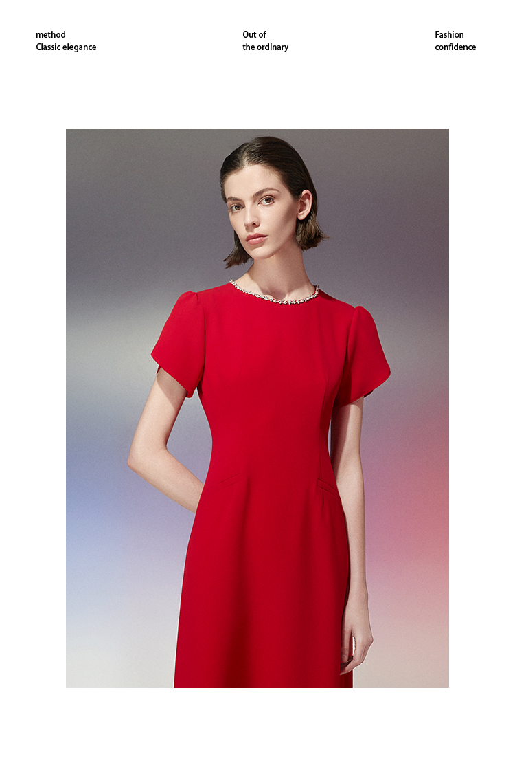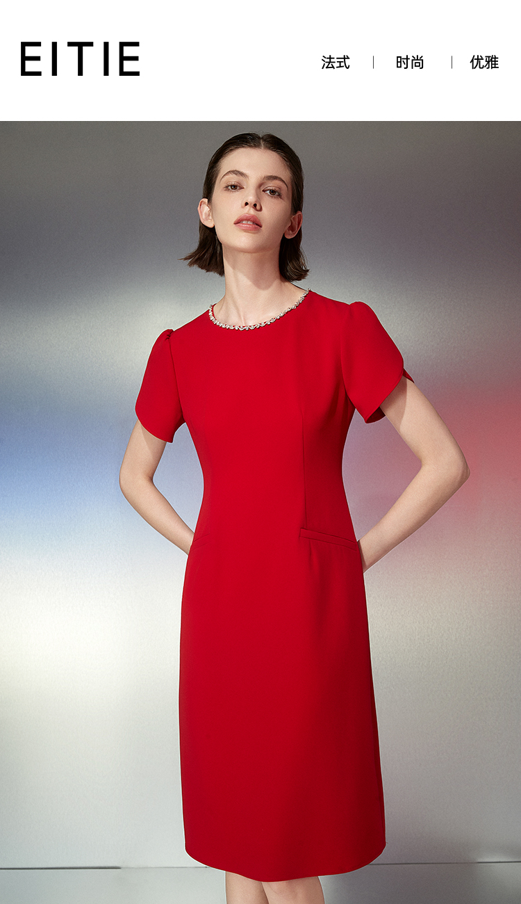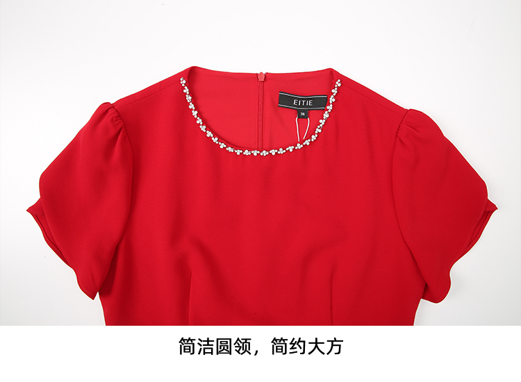 EITIE爱特爱新款女装连衣裙时尚OL漏肩通勤女士中裙3907690