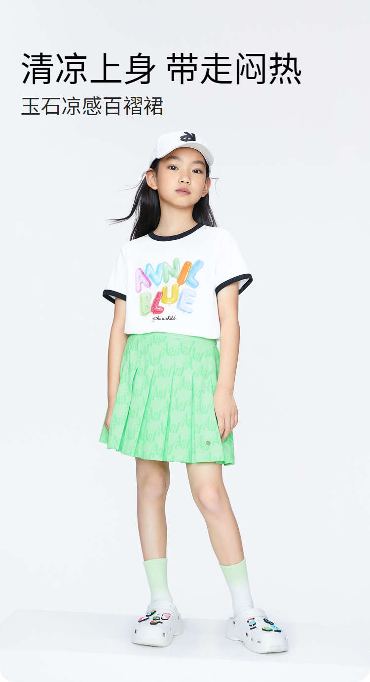 女童凉感百褶短裙抗菌裙子BLUE新款安奈儿童装实体店同款AG423828