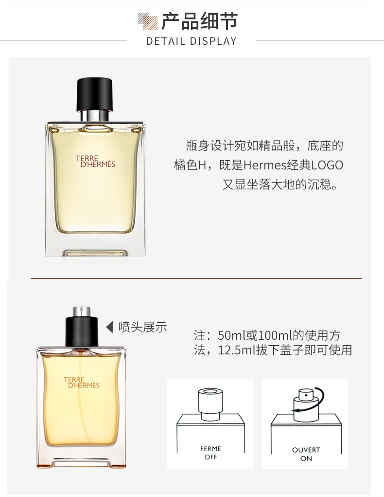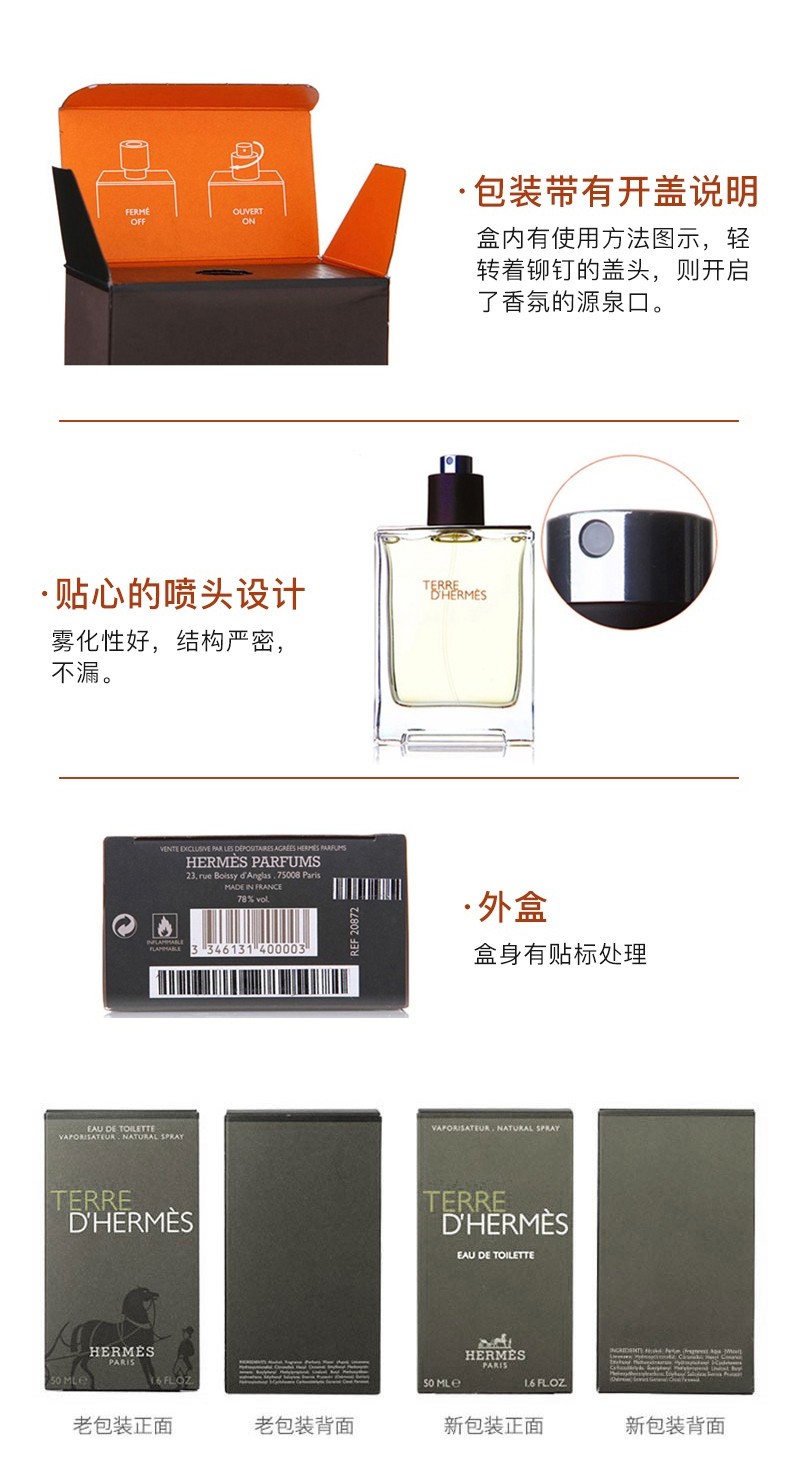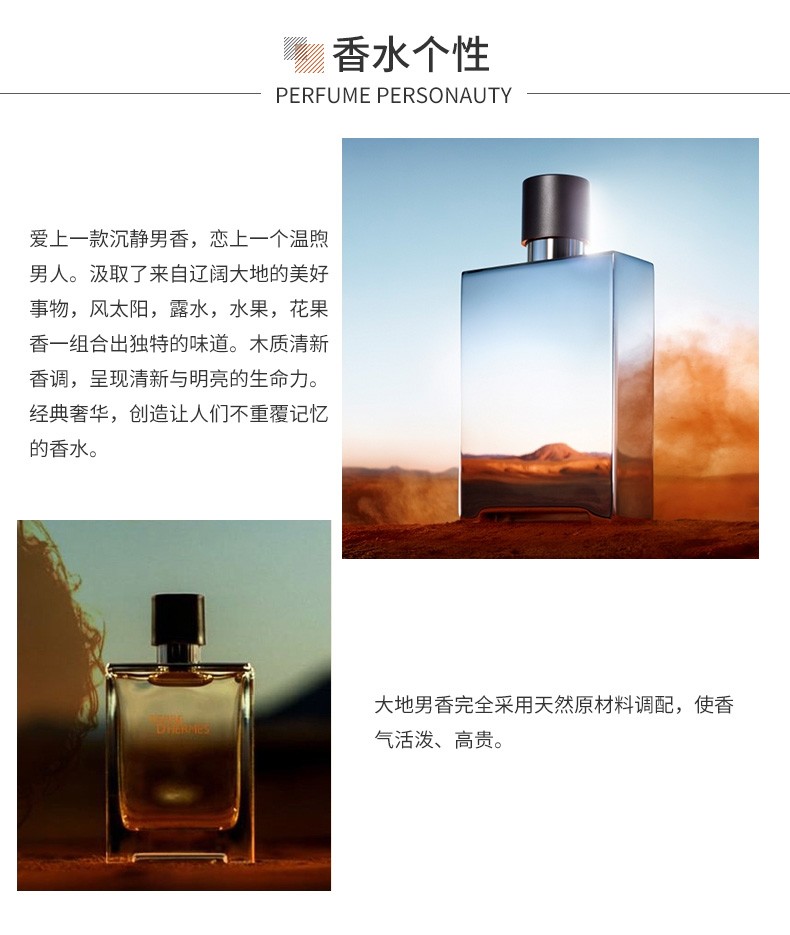 法国Hermes爱马仕香水/大地Terre中性男士持久树木淡香调50ML 跨境购