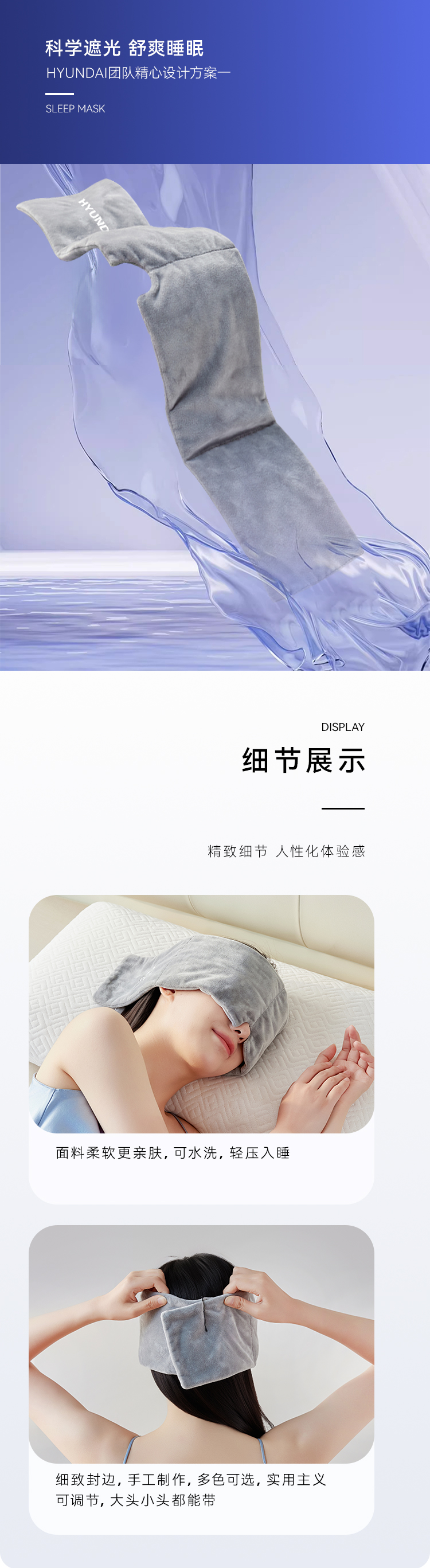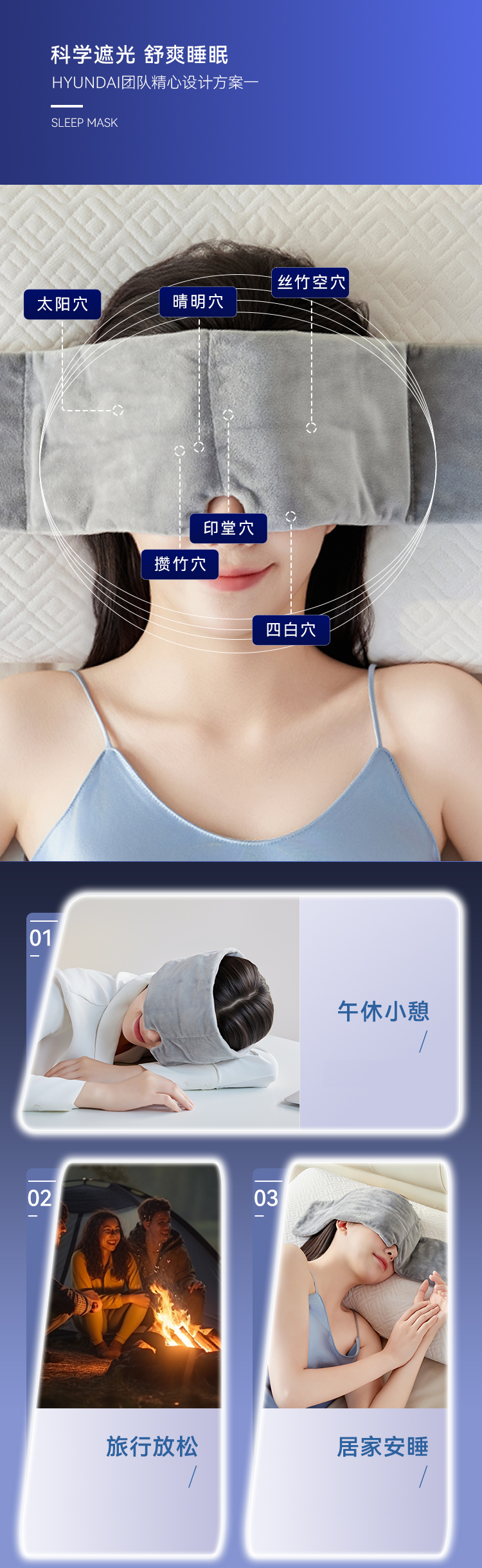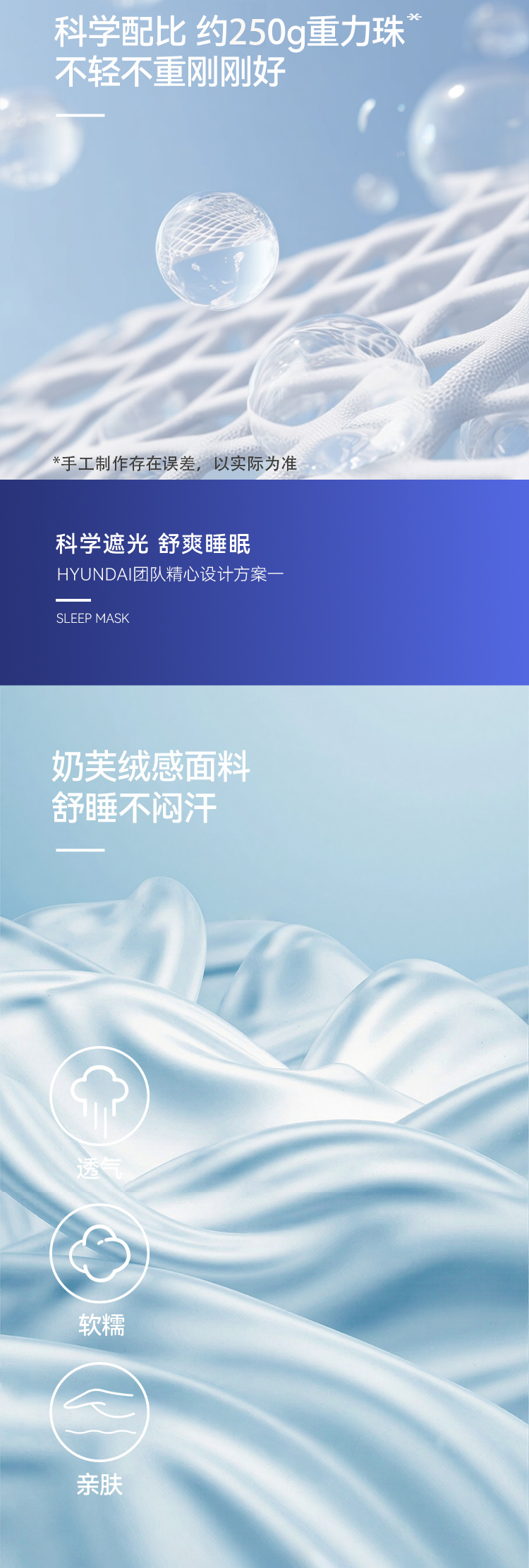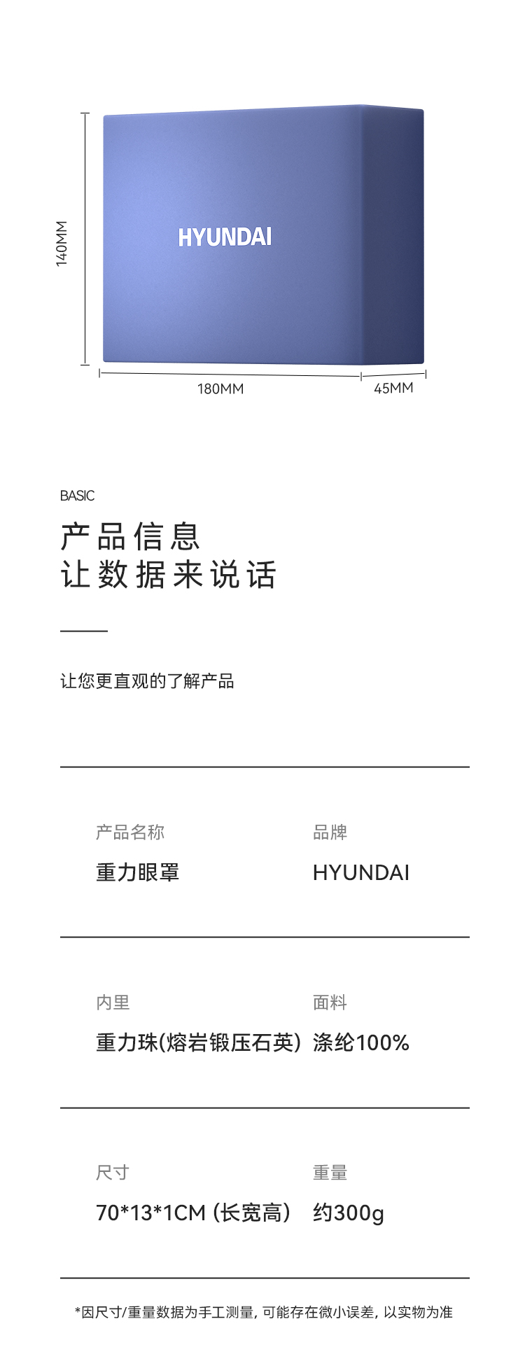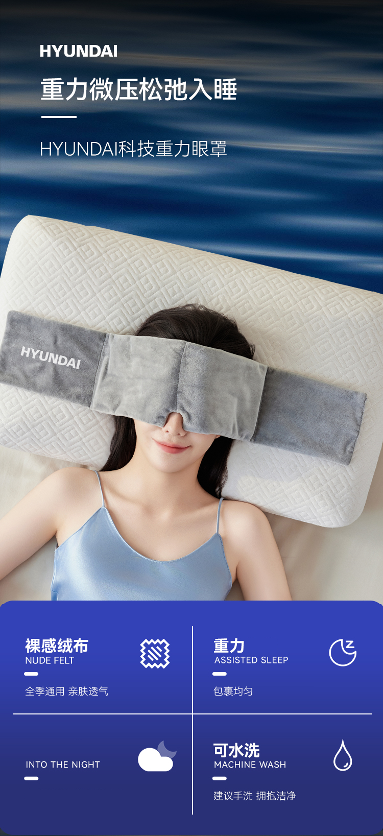 HYUNDAI重力深睡眼罩,科学配比 ,按摩穴位解压。四季款裸感绒布松弛入睡