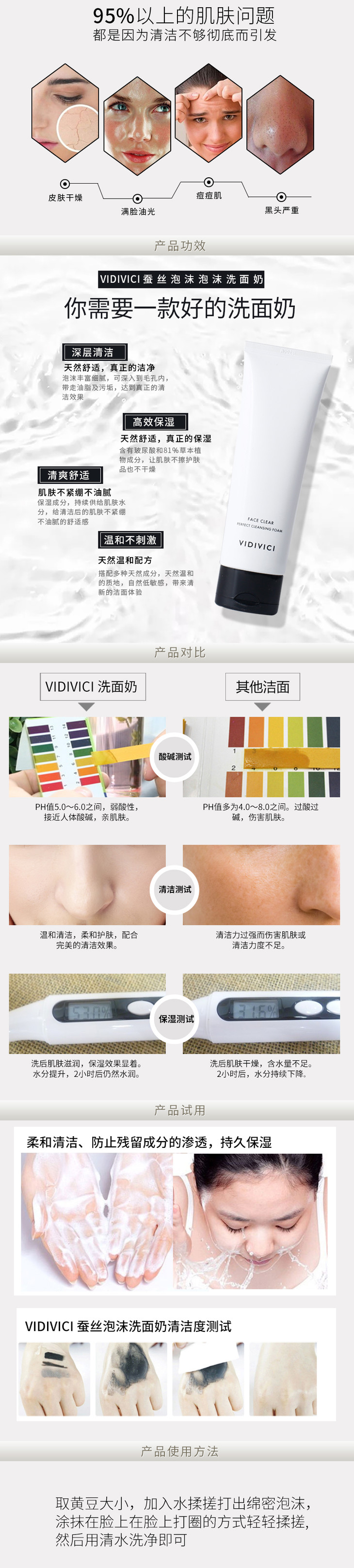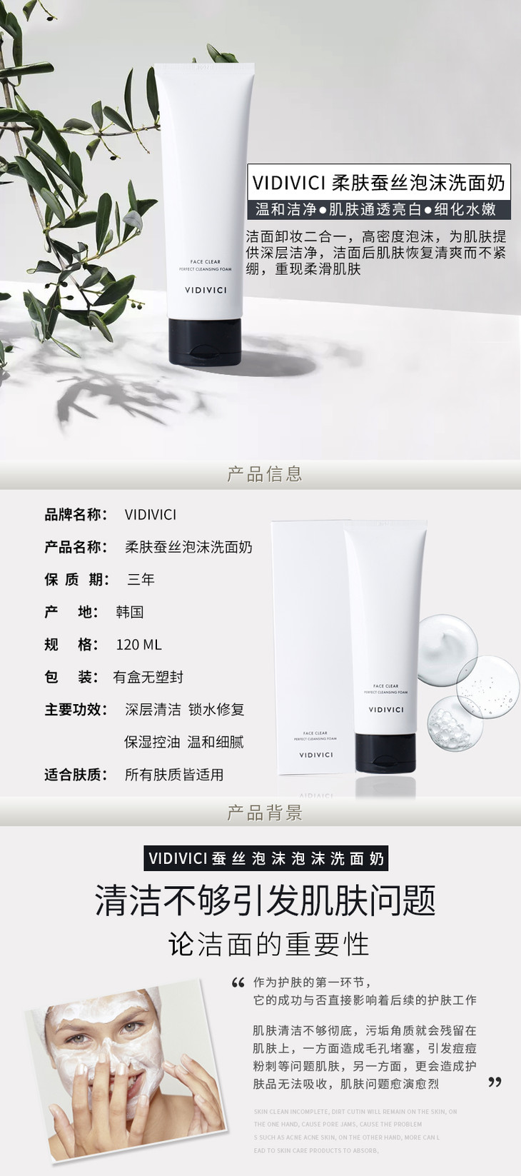 【门店直发】韩国VIDIVICI女神蚕丝嫩白泡沫洁面乳(新老包装随机)