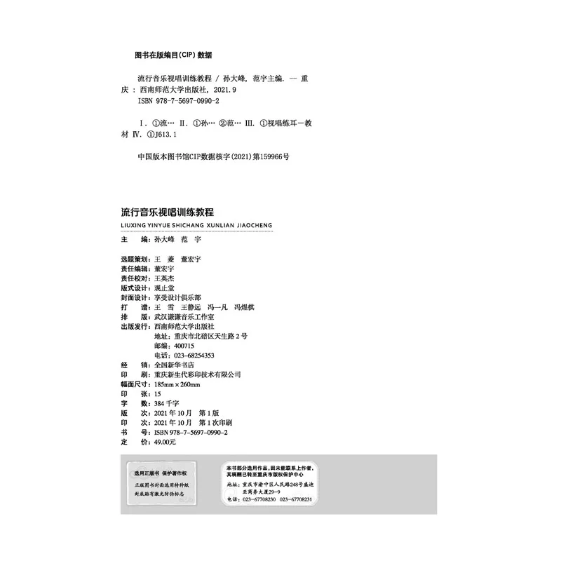 *书名:流行音乐视唱训练教程 | *ISBN:978-7-5697-0990-2 |