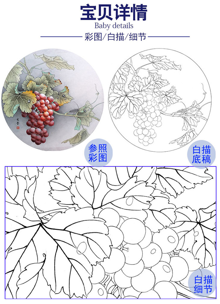 於文普工笔花鸟葡萄小品白描底稿-WP02