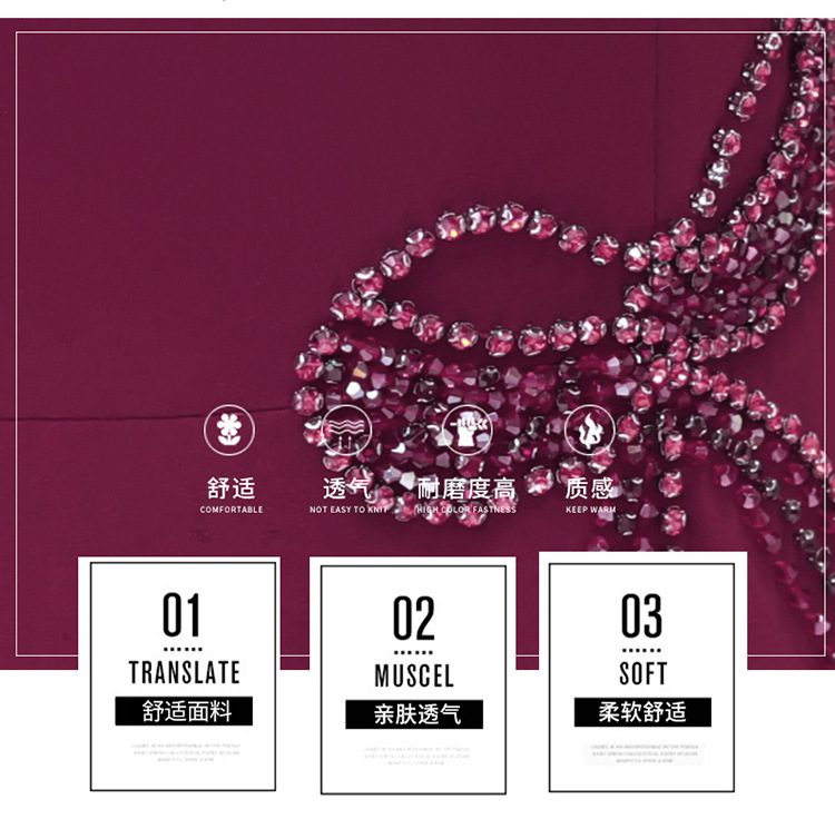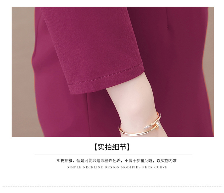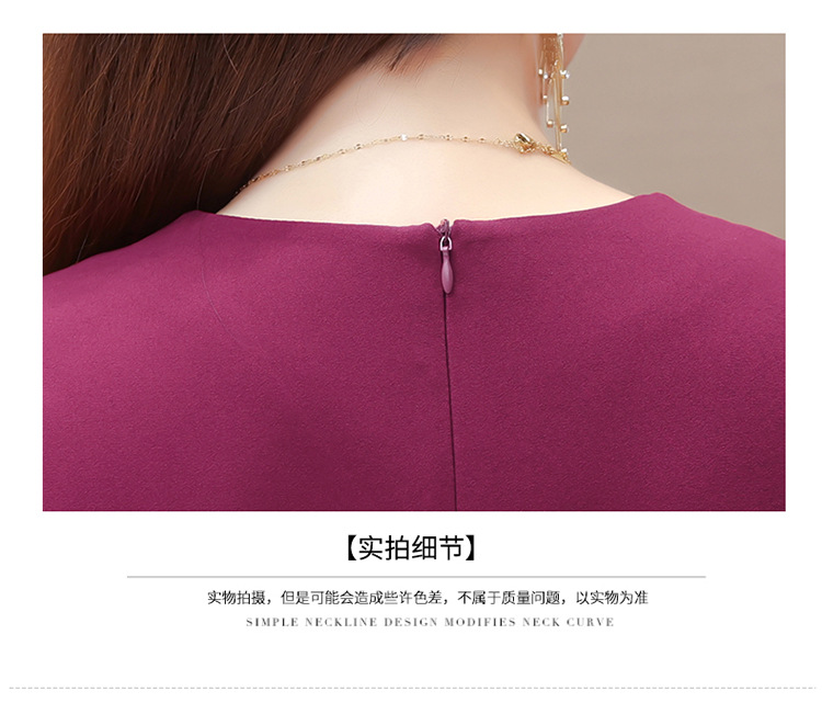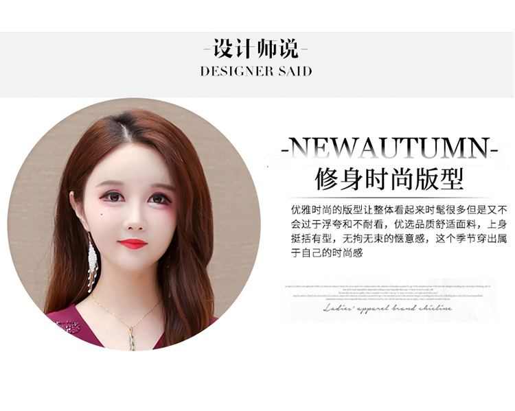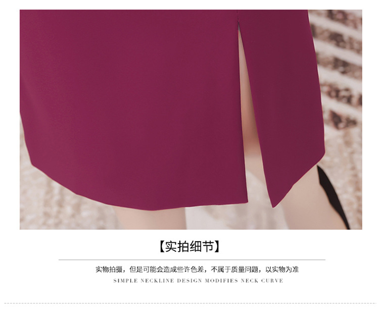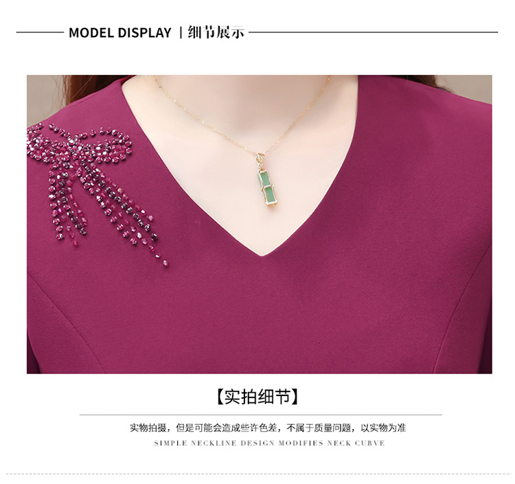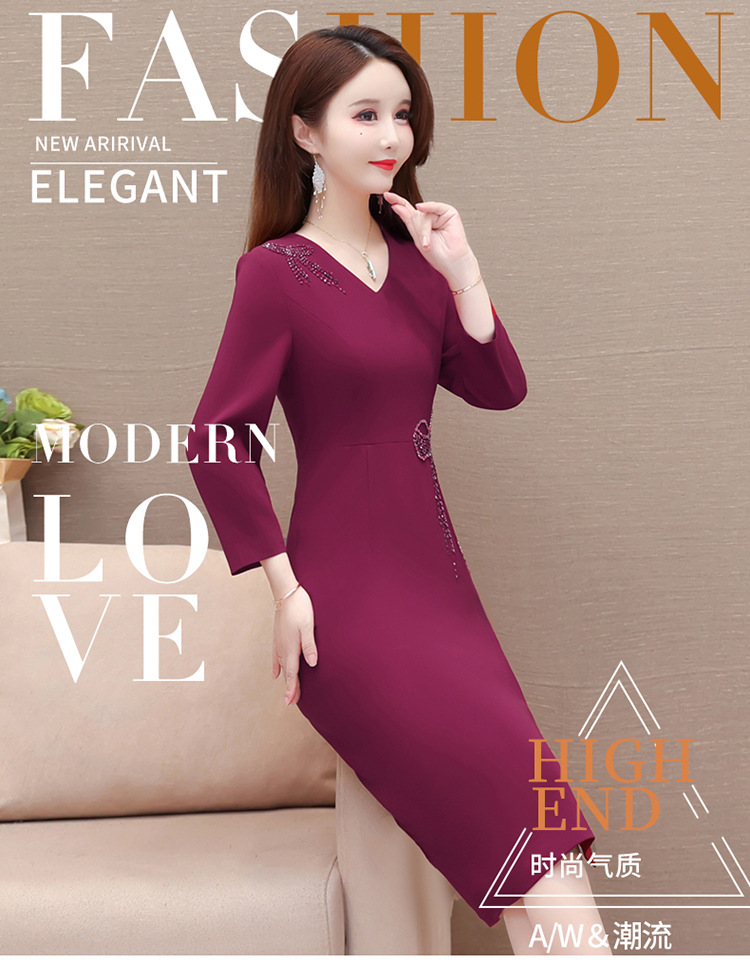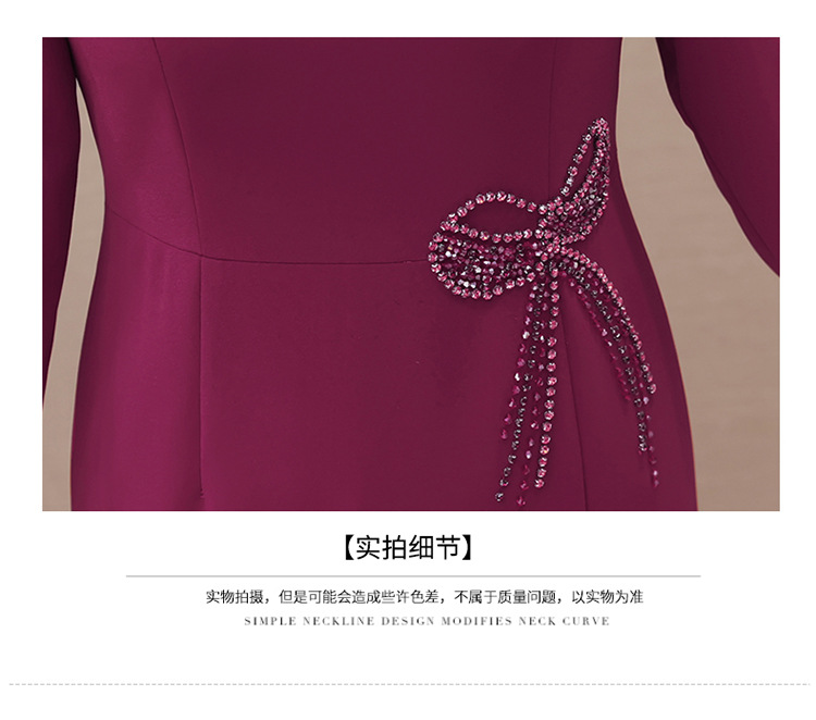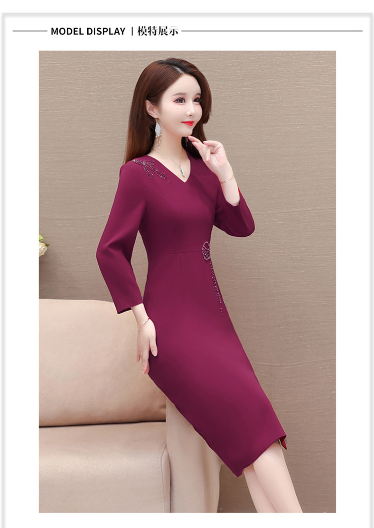 QYM-LRX-JDN8831-1-Y,紫红连衣裙秋季新款钻花中长裙2023年优雅女装中长款开衩A字裙