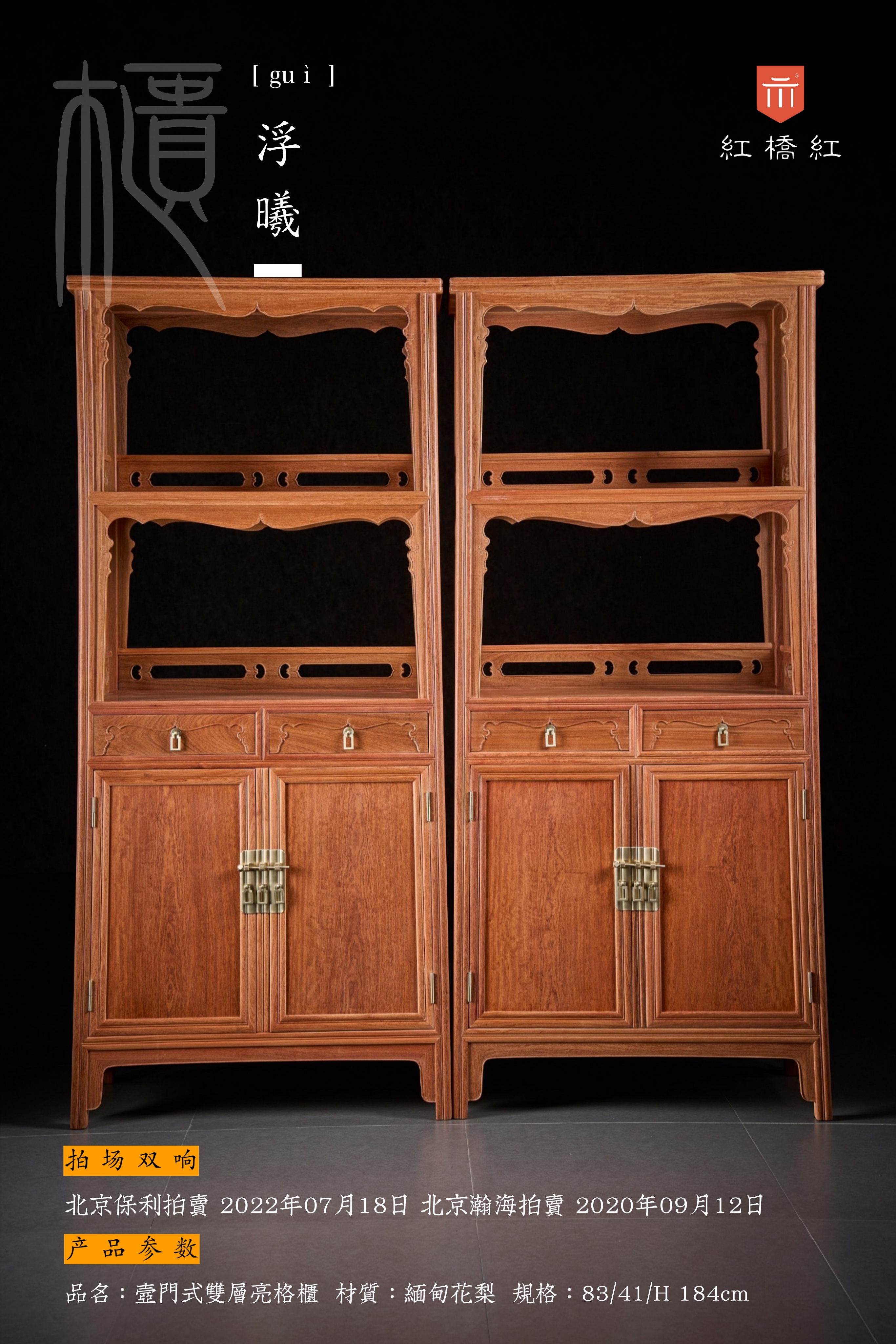 此器原型似例,拍场见于2022年7月18日北京保利第53期古董精品拍卖会,瓷器玉器工艺品专场,一对清 黄花梨书柜 ,成交价RMB 402,500;北京瀚海拍卖2020年9月12日,翰海四季(第101期)拍卖会,玉器·家俱·赏石专场,黄花梨带屉双层书柜 (2件)。