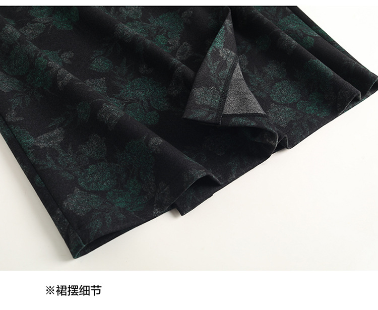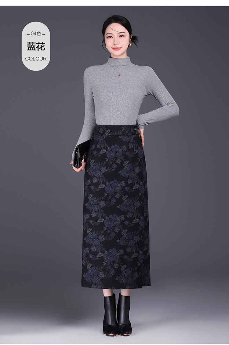 JYM-2496印花毛呢遮肉包臀半身裙女装2024秋冬中长款不规则一步裙女 商品图4