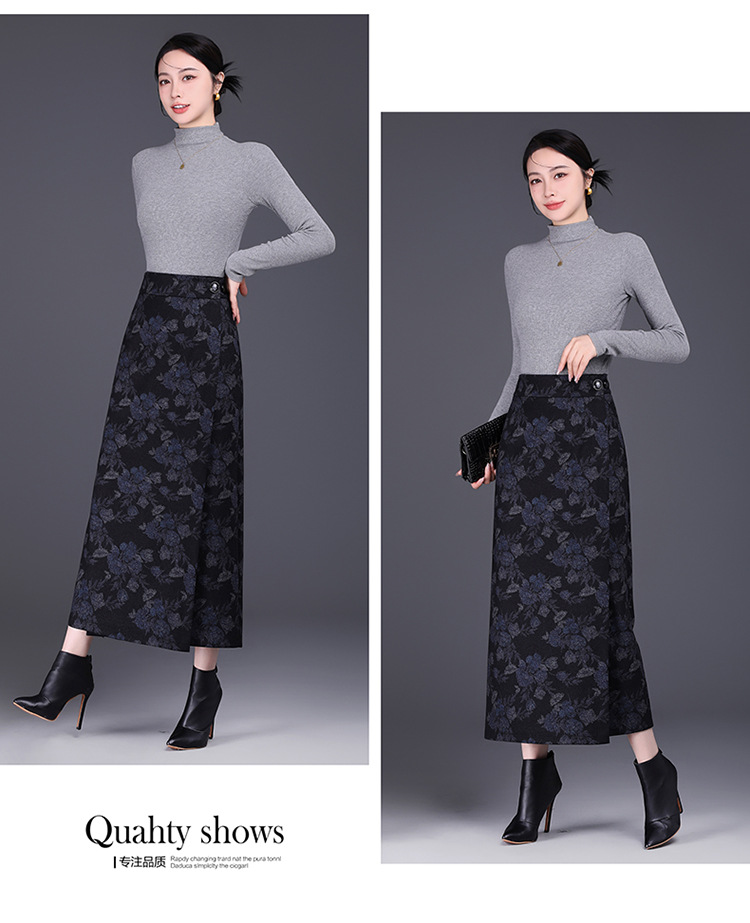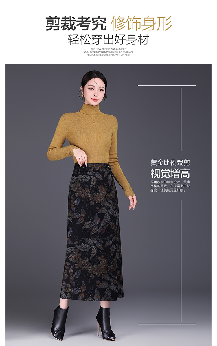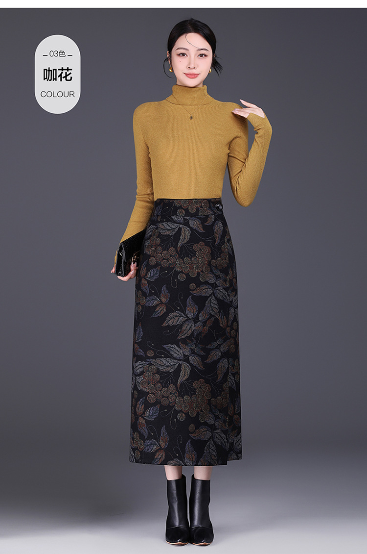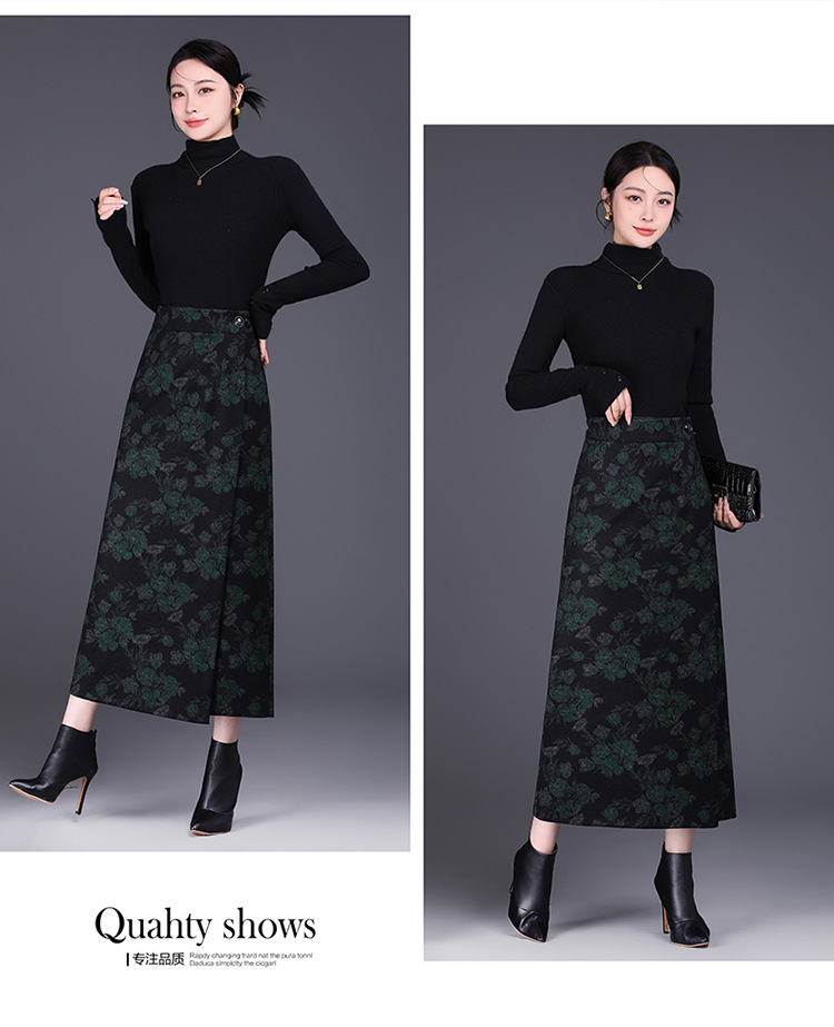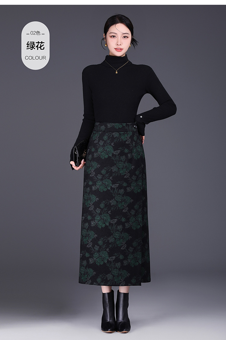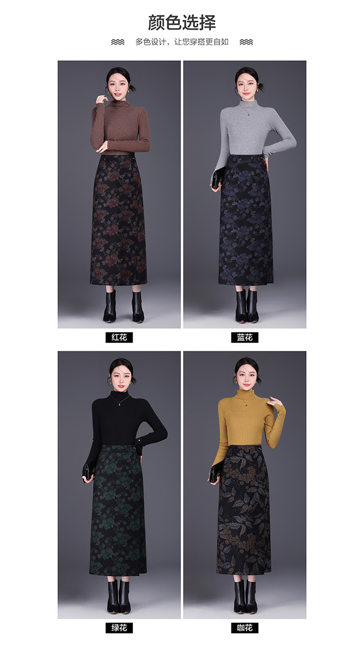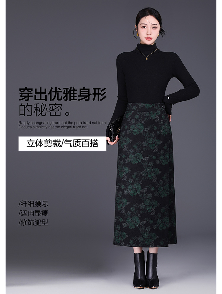 JYM-2496印花毛呢遮肉包臀半身裙女装2024秋冬中长款不规则一步裙女 商品图3