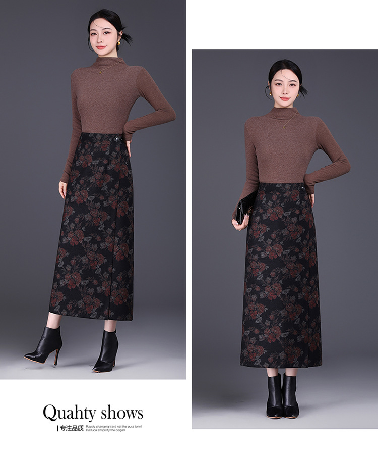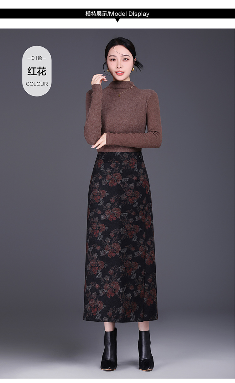 JYM-2496印花毛呢遮肉包臀半身裙女装2024秋冬中长款不规则一步裙女 商品图2
