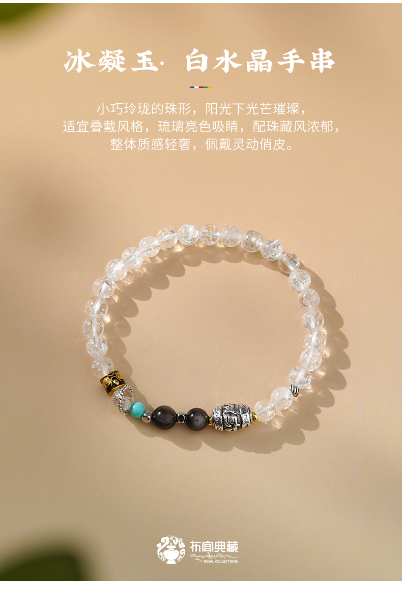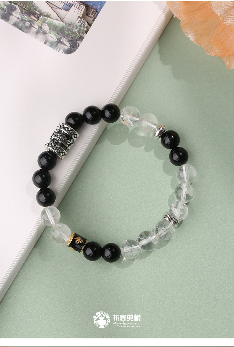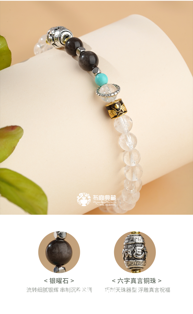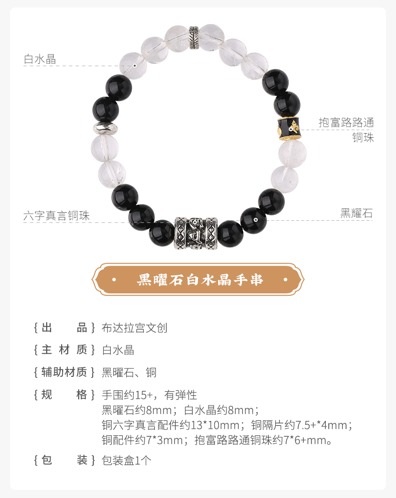 布达拉宫黑曜石白水晶铜五财配件手串白水晶青金石手串白水晶银曜石手串