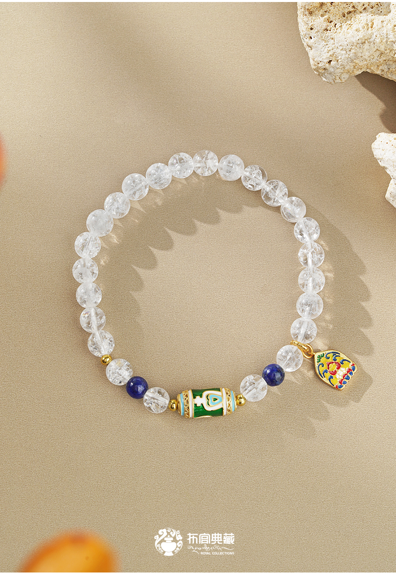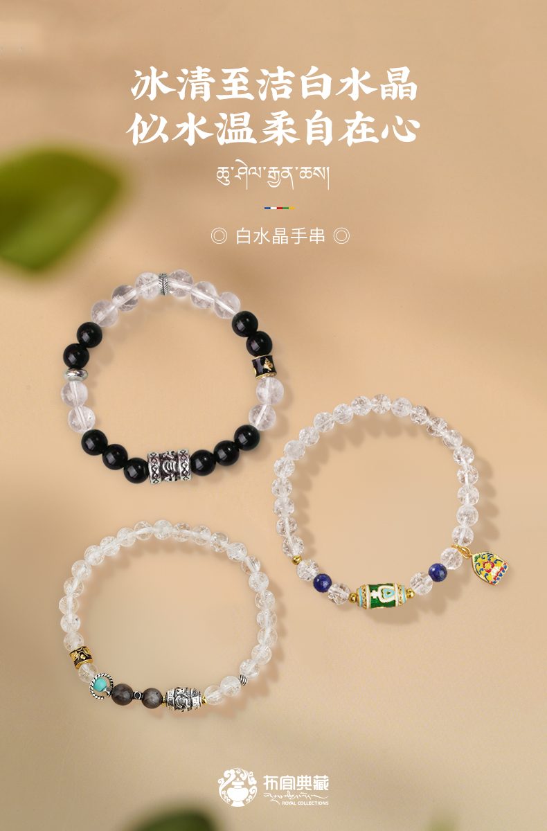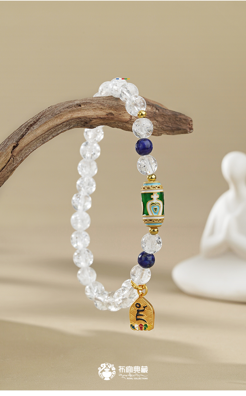 布达拉宫黑曜石白水晶铜五财配件手串白水晶青金石手串白水晶银曜石手串