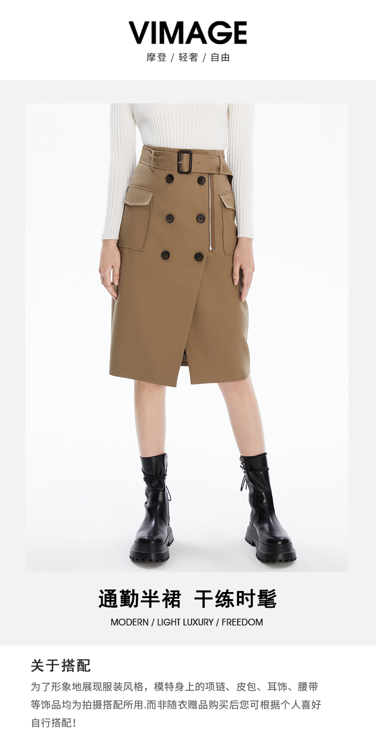 VIMAGE纬漫纪秋冬新款高腰时尚包臀裙半裙半身裙V1606212