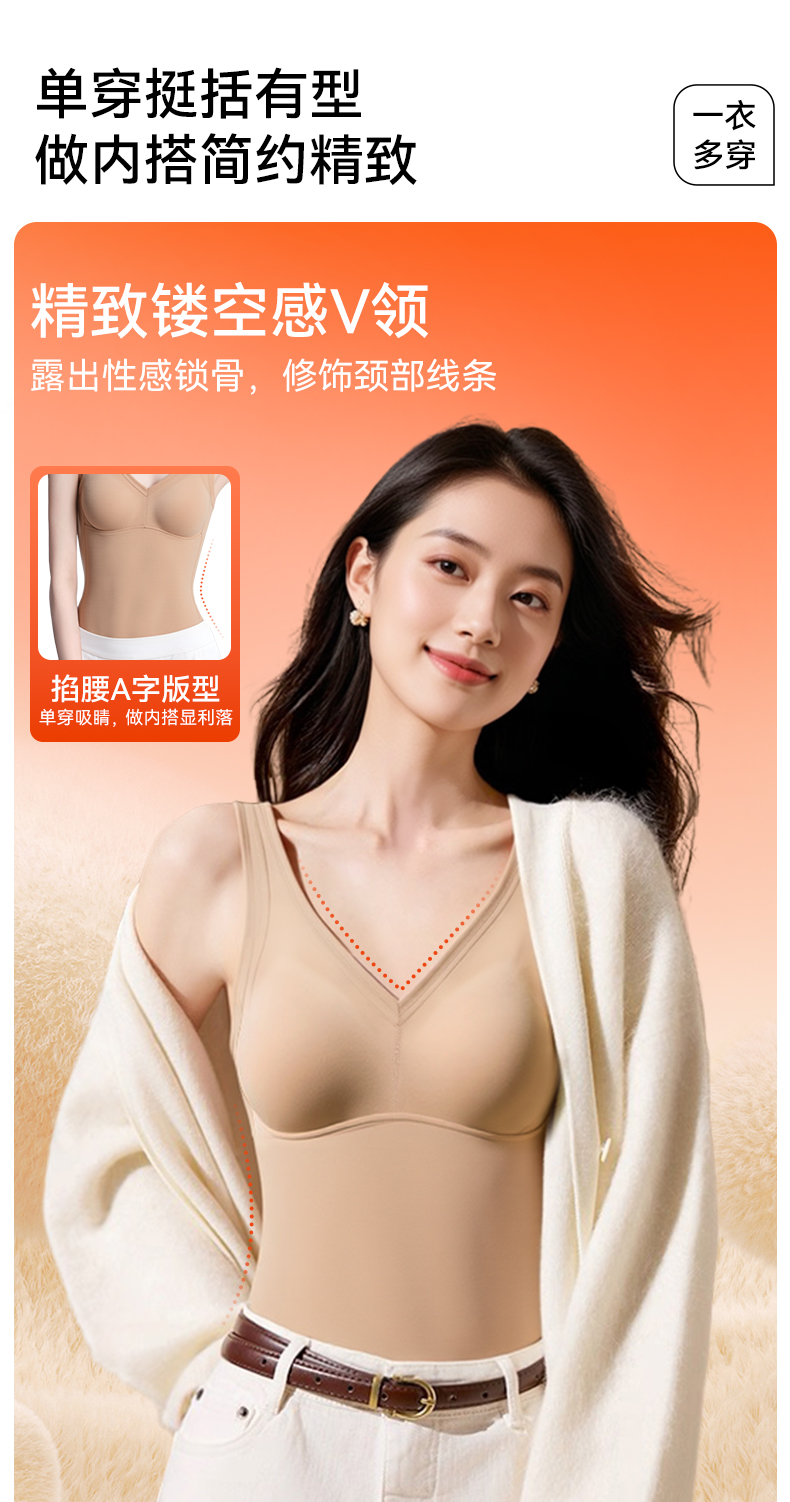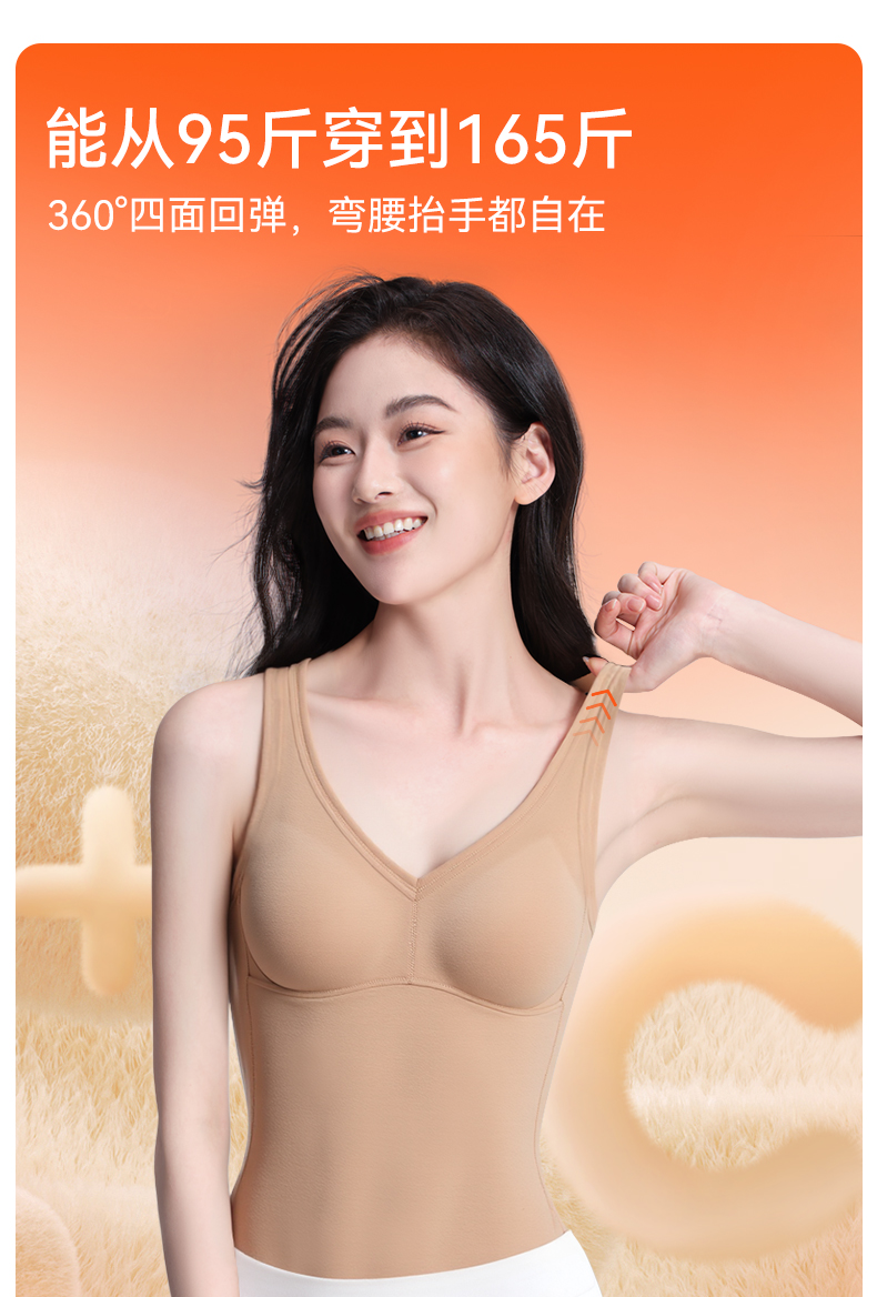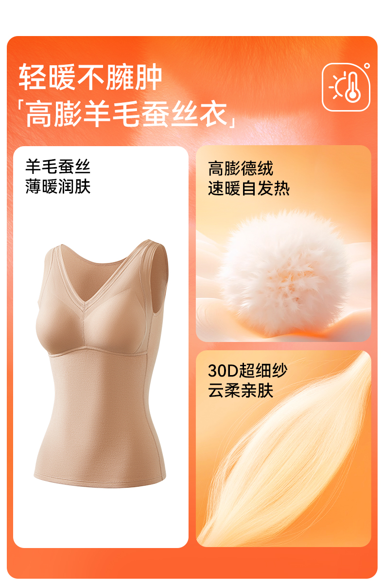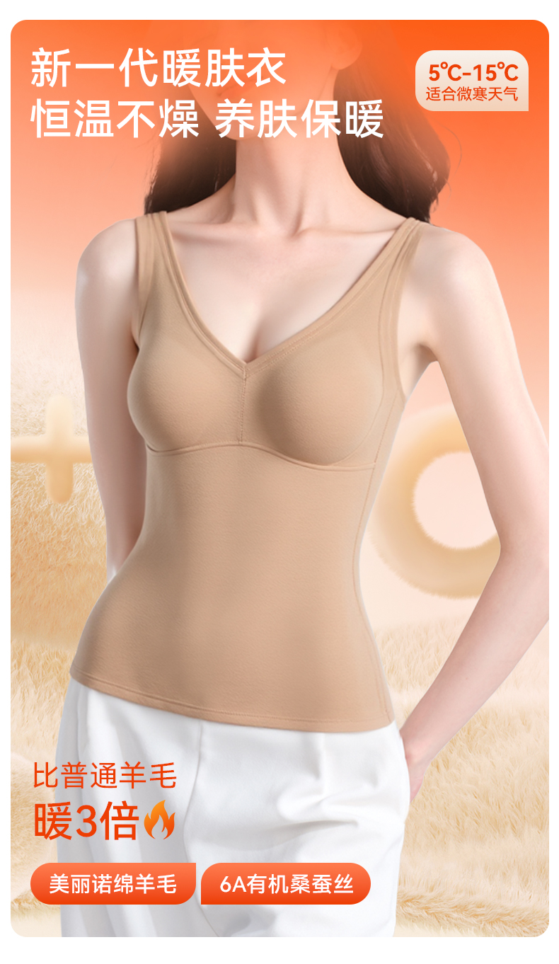 彗星天使德绒自发热不臃肿不刺痒三合一免穿Bra羊毛蚕丝女士保暖背心R79#