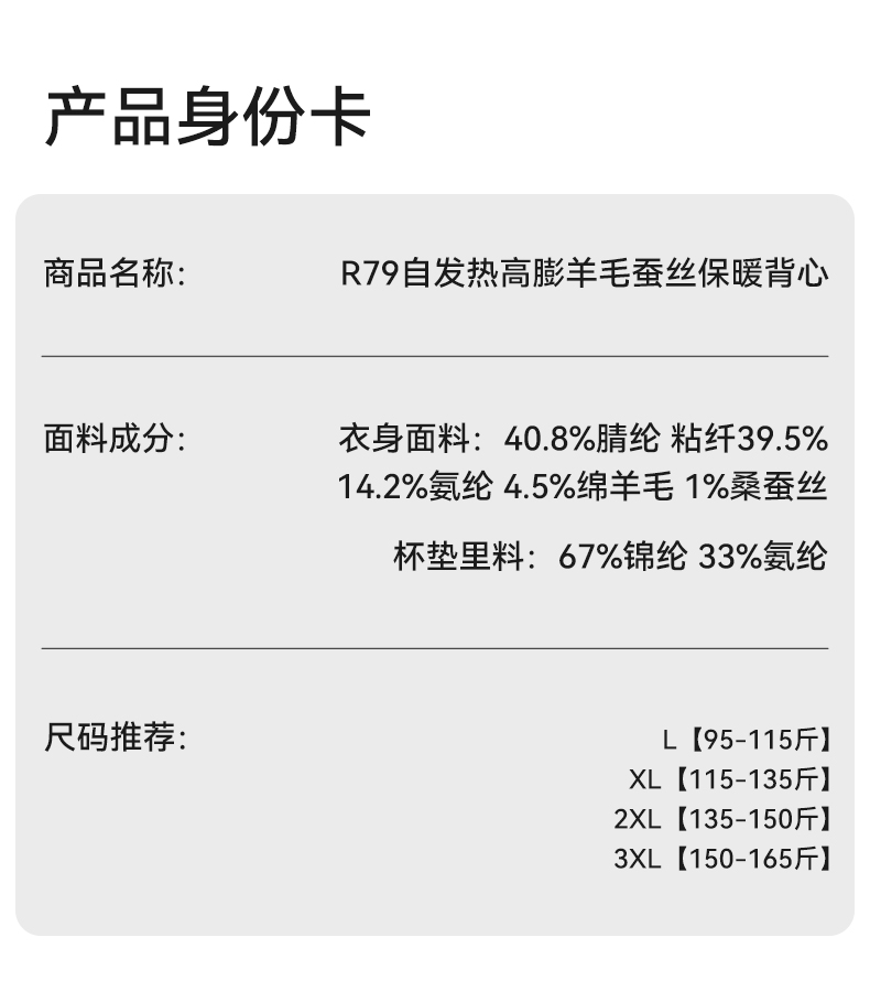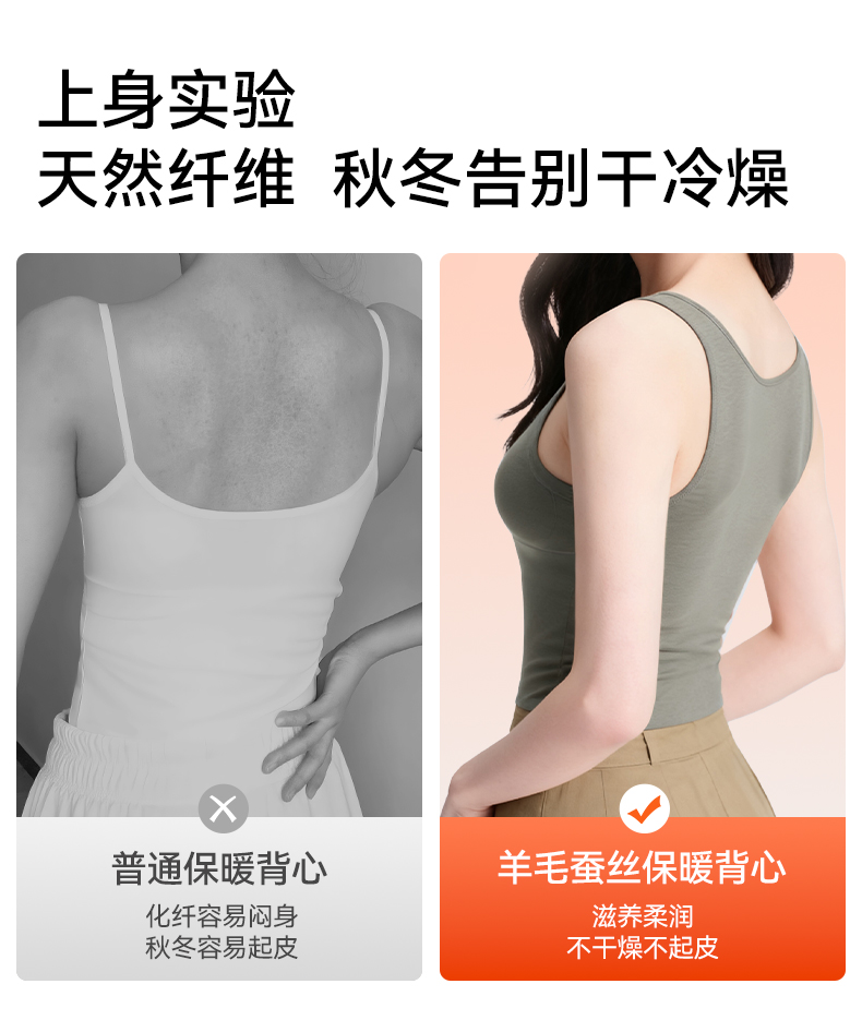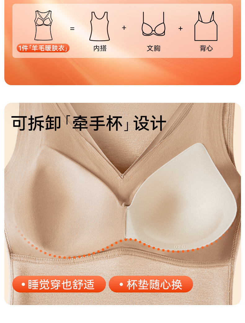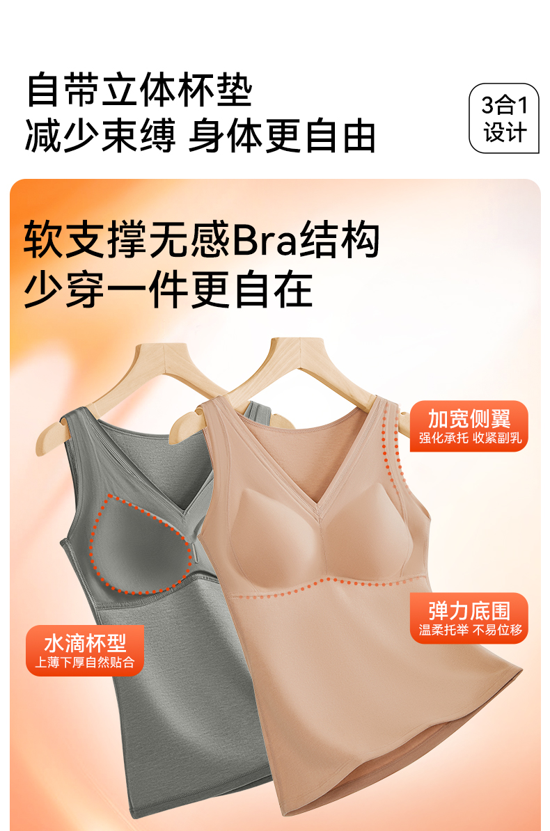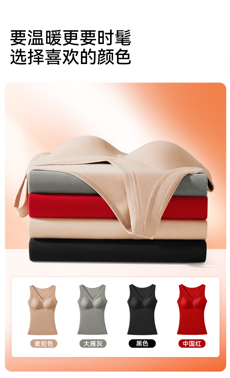 彗星天使德绒自发热不臃肿不刺痒三合一免穿Bra羊毛蚕丝女士保暖背心R79#