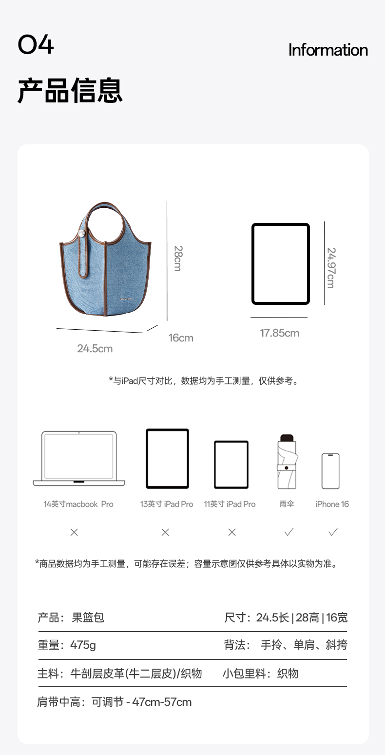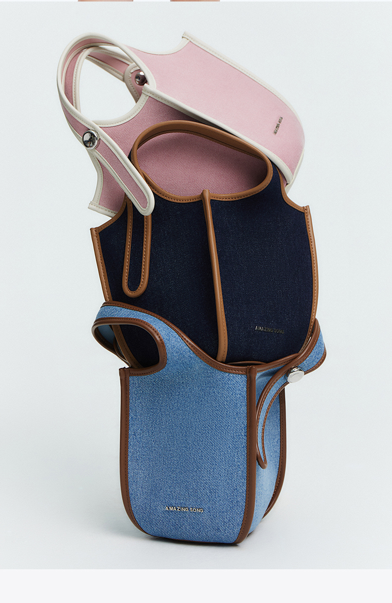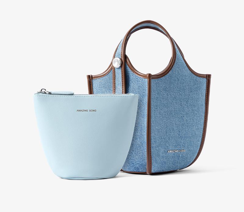 Amazing Song乙颂 果篮包牛仔丹宁手提斜挎水桶菜篮子包包【该商品不支持用券】