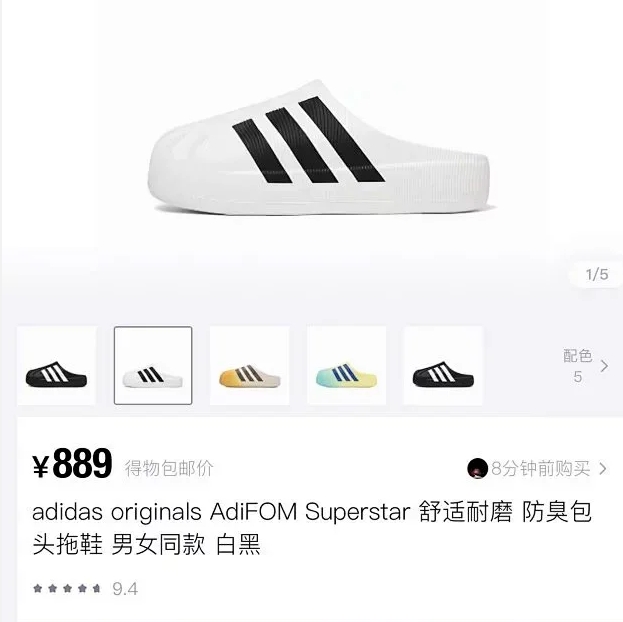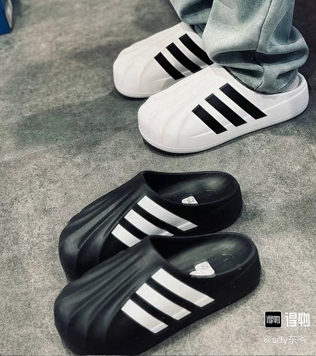 全新的AdiFom Superstar 拖鞋,去年一款一体发泡的AdiFom Superstar 洞洞鞋横空出世,今年又出了半拖款,火爆异常,官方都长期断码,现在二级市场已经炒到了800+的售价了,非常好搭配的一款一体成型的半拖鞋,夏天凹造型必备。
