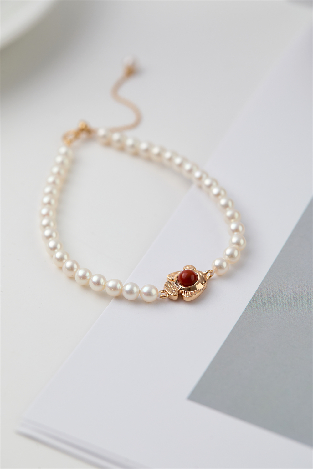 pearl moments珍刻 年年有鱼(南红小鱼) 小鱼儿4号baby珍珠手链