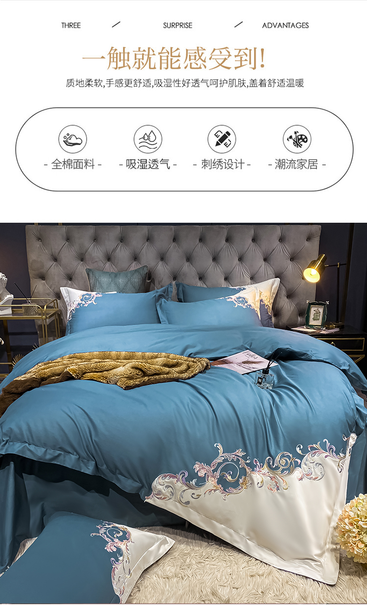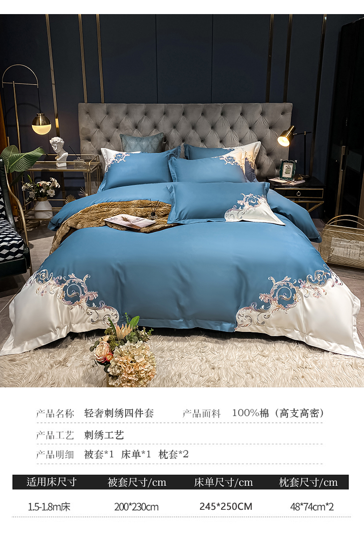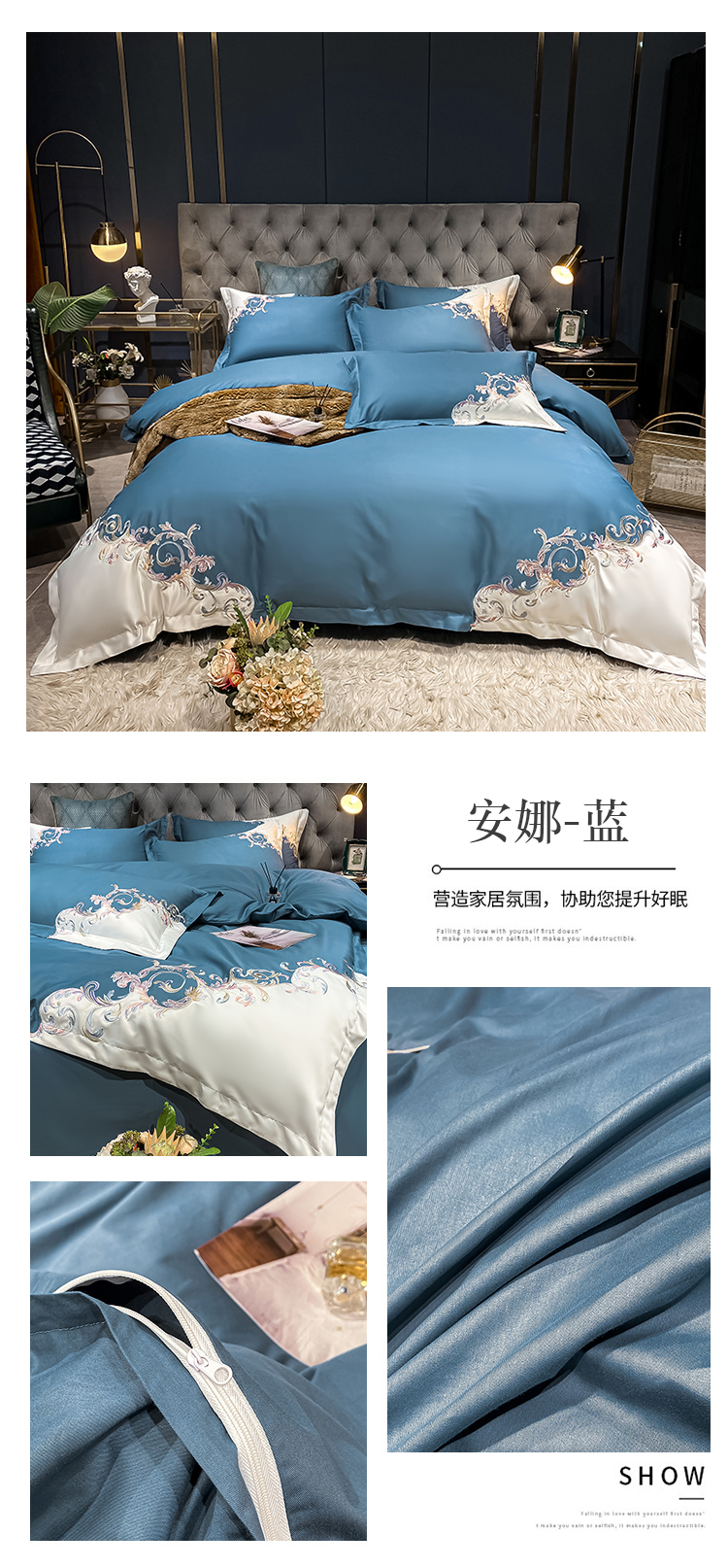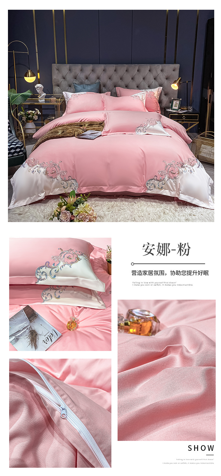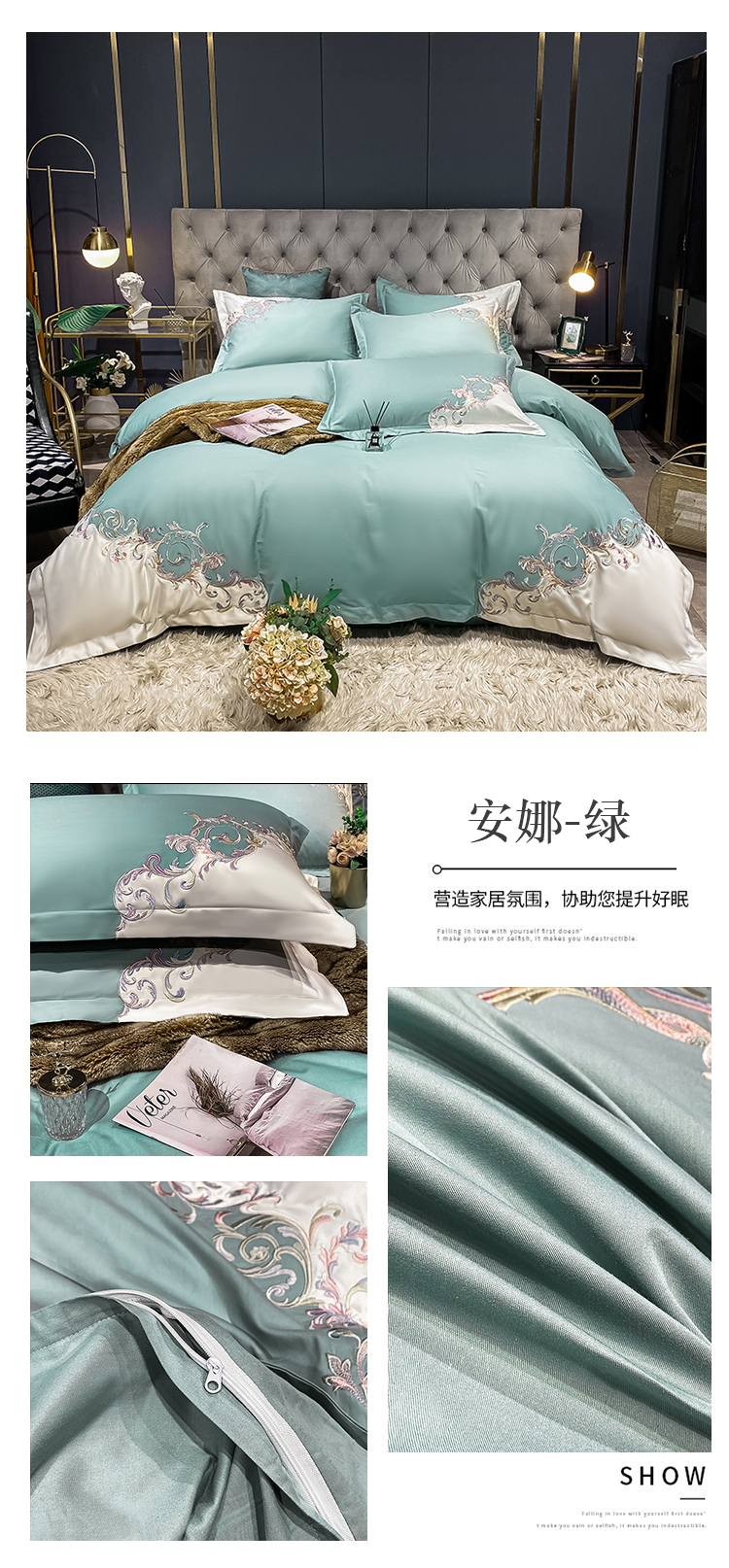 轻奢刺绣四件套【悠梦嘉居轻奢刺绣四件套双拼角交叉刺绣高档工艺100%高支高密全棉轻奢享受高档礼盒装,安娜-绿/粉/蓝】