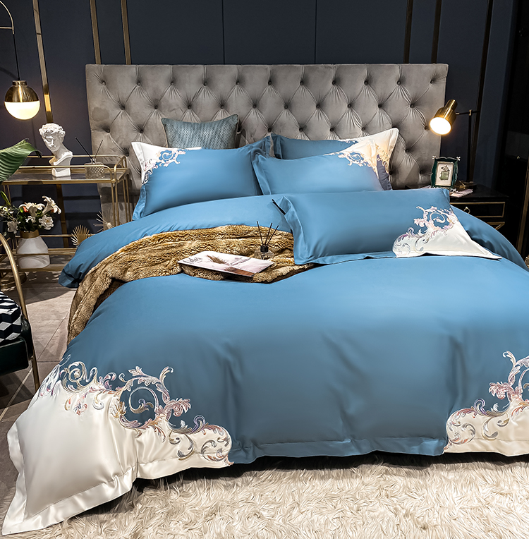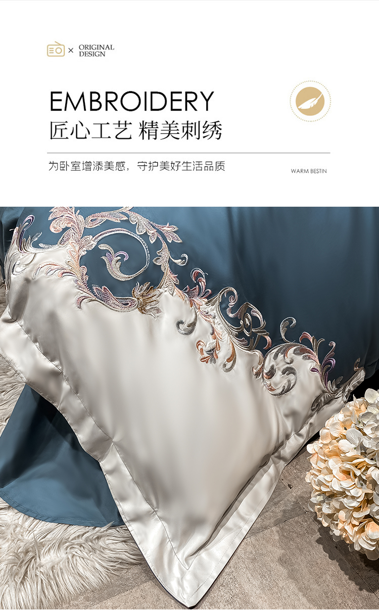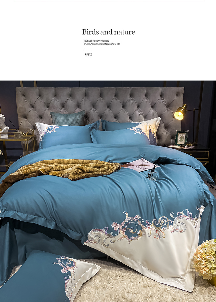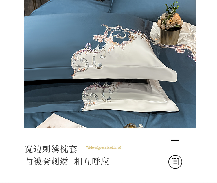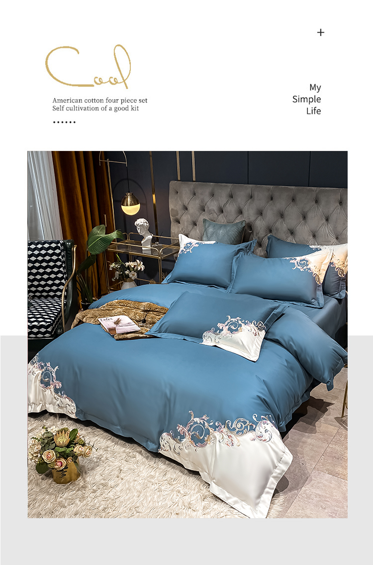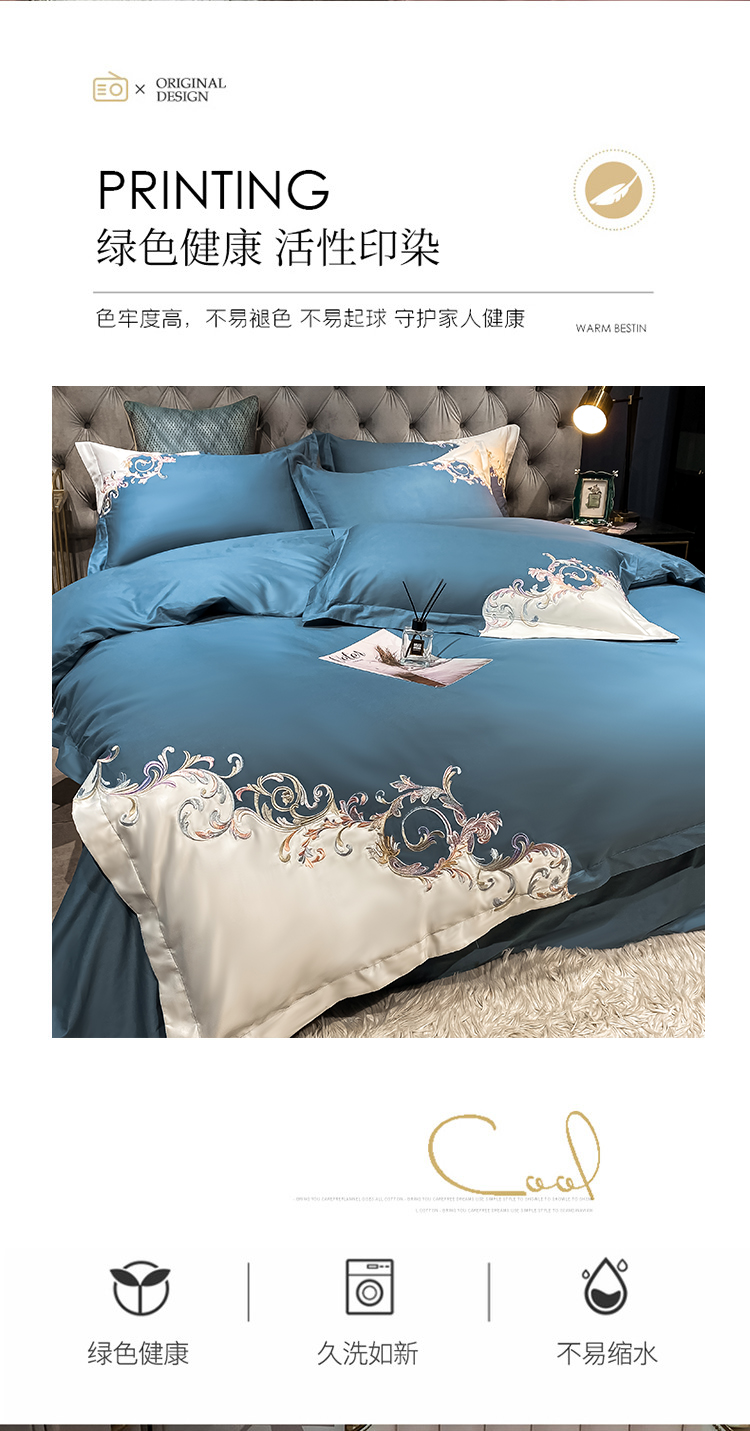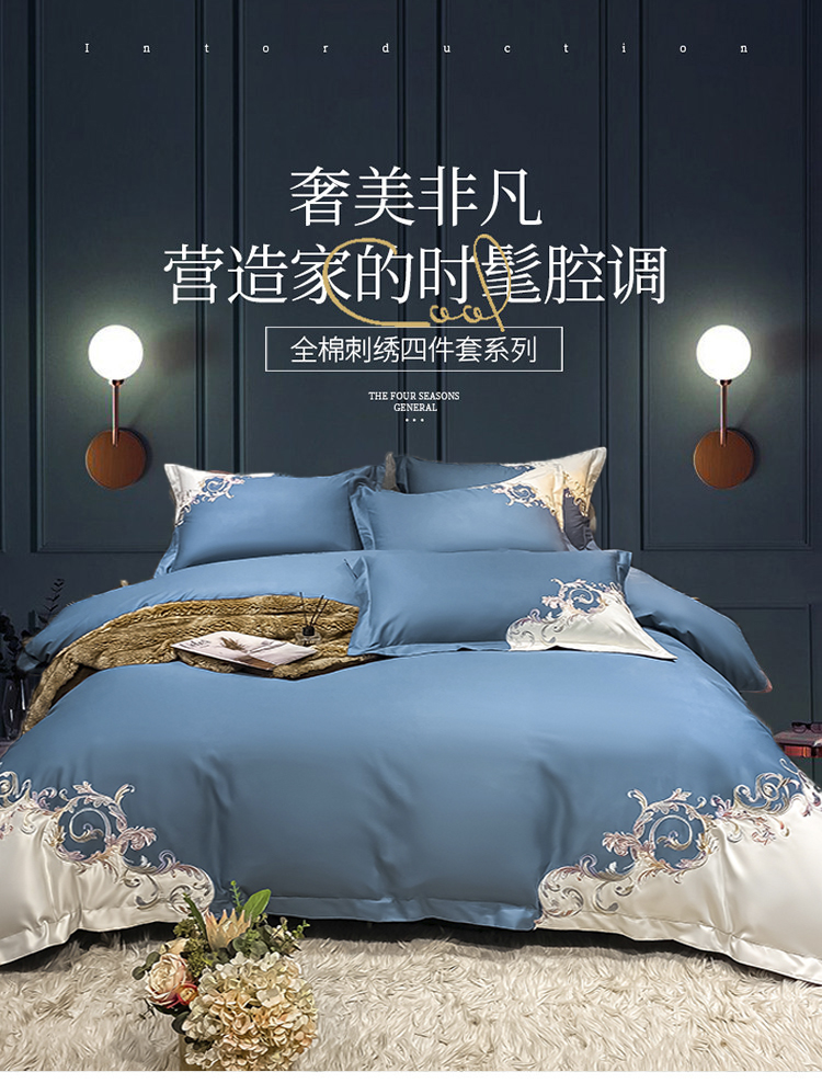 轻奢刺绣四件套【悠梦嘉居轻奢刺绣四件套双拼角交叉刺绣高档工艺100%高支高密全棉轻奢享受高档礼盒装,安娜-绿/粉/蓝】