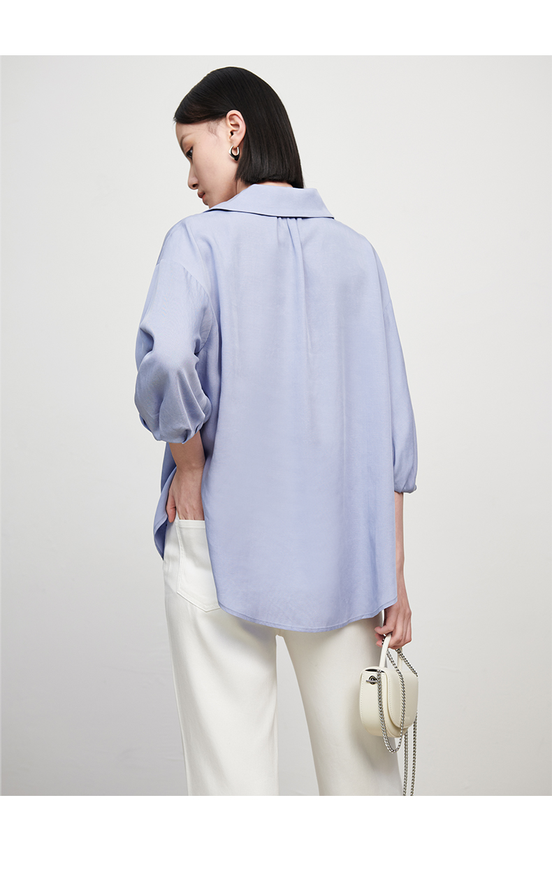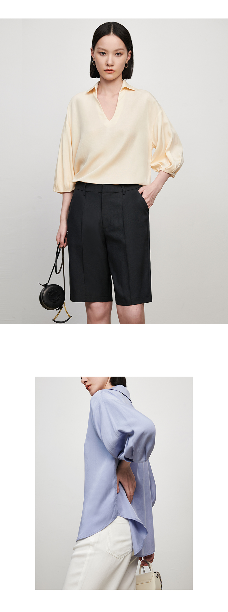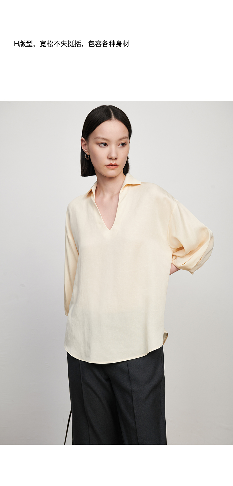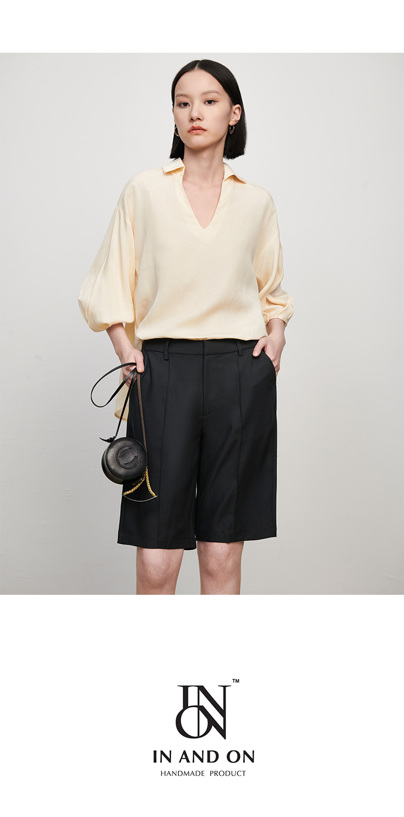 IN AND ON夏季新款莱赛尔凉感小翻领宽松气质休闲纯色衬衫女