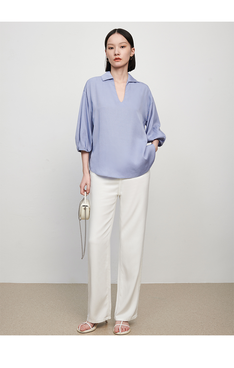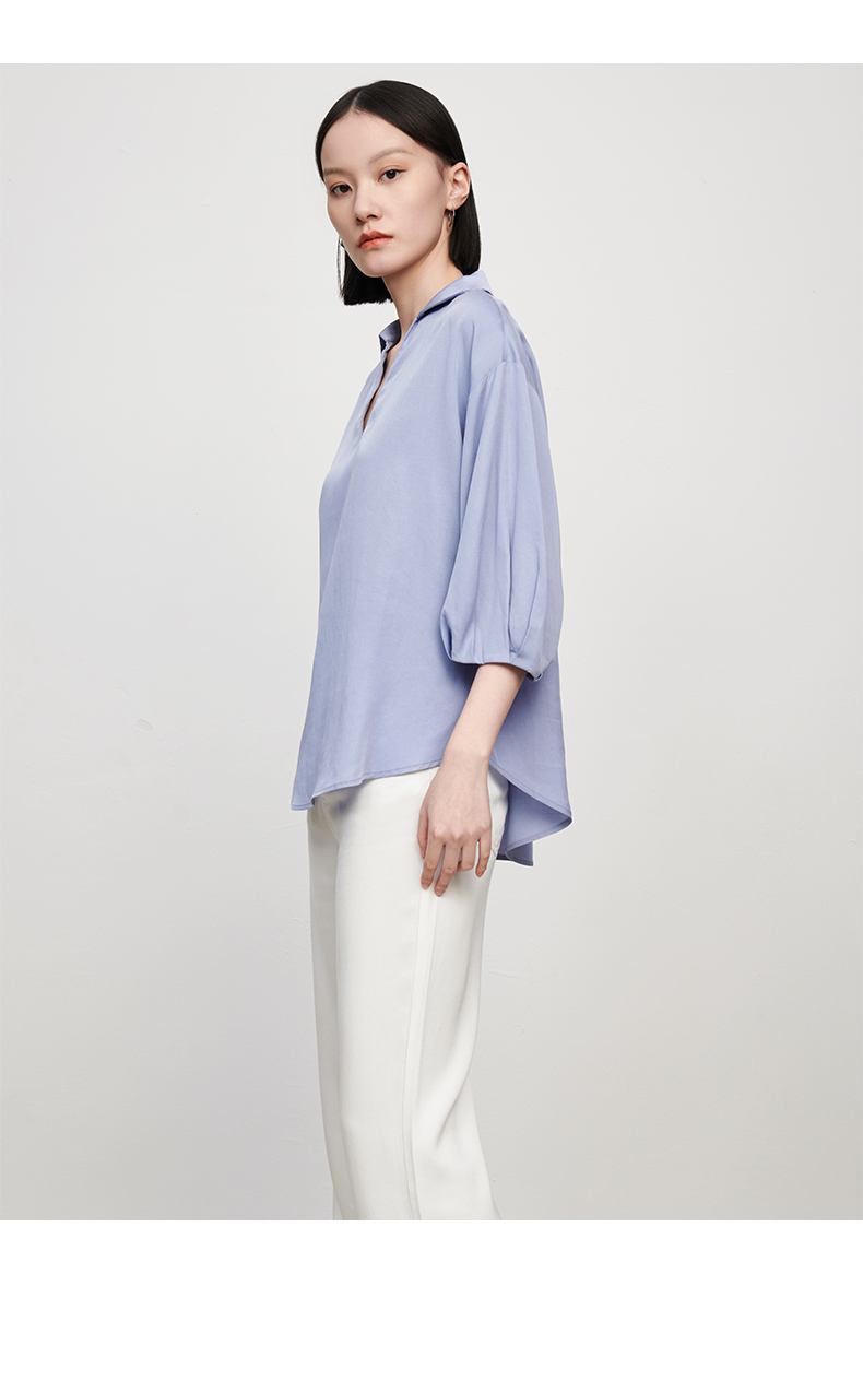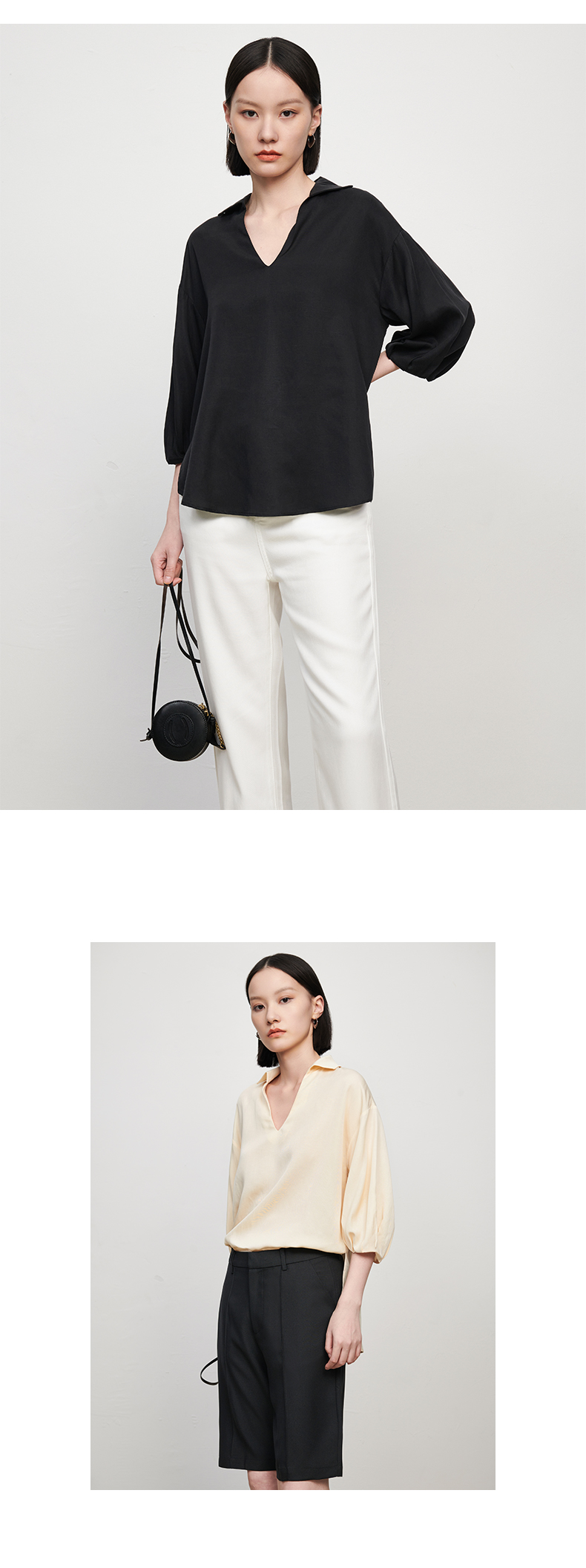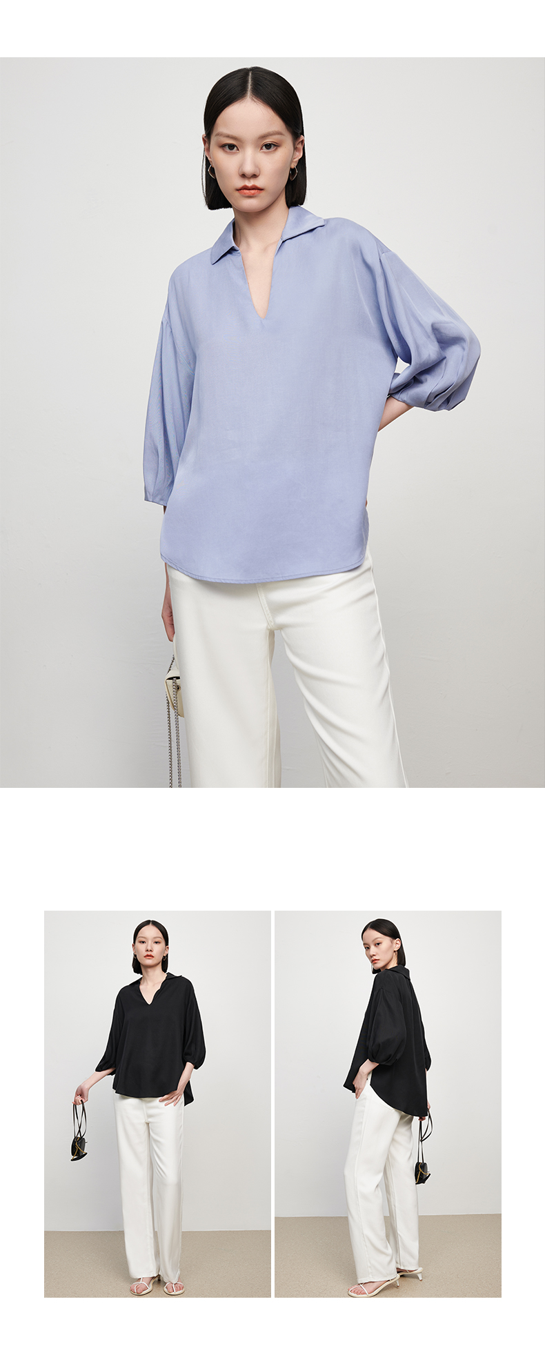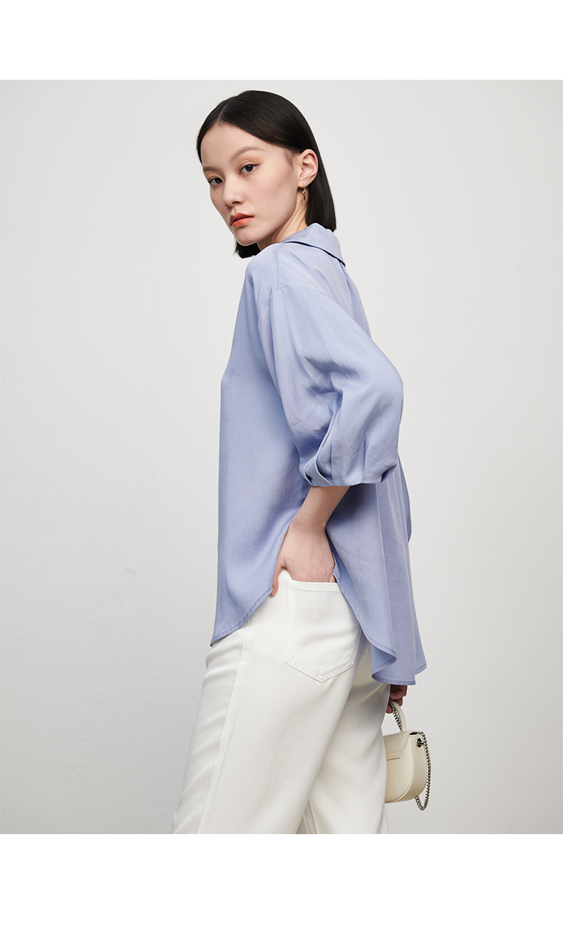 IN AND ON夏季新款莱赛尔凉感小翻领宽松气质休闲纯色衬衫女