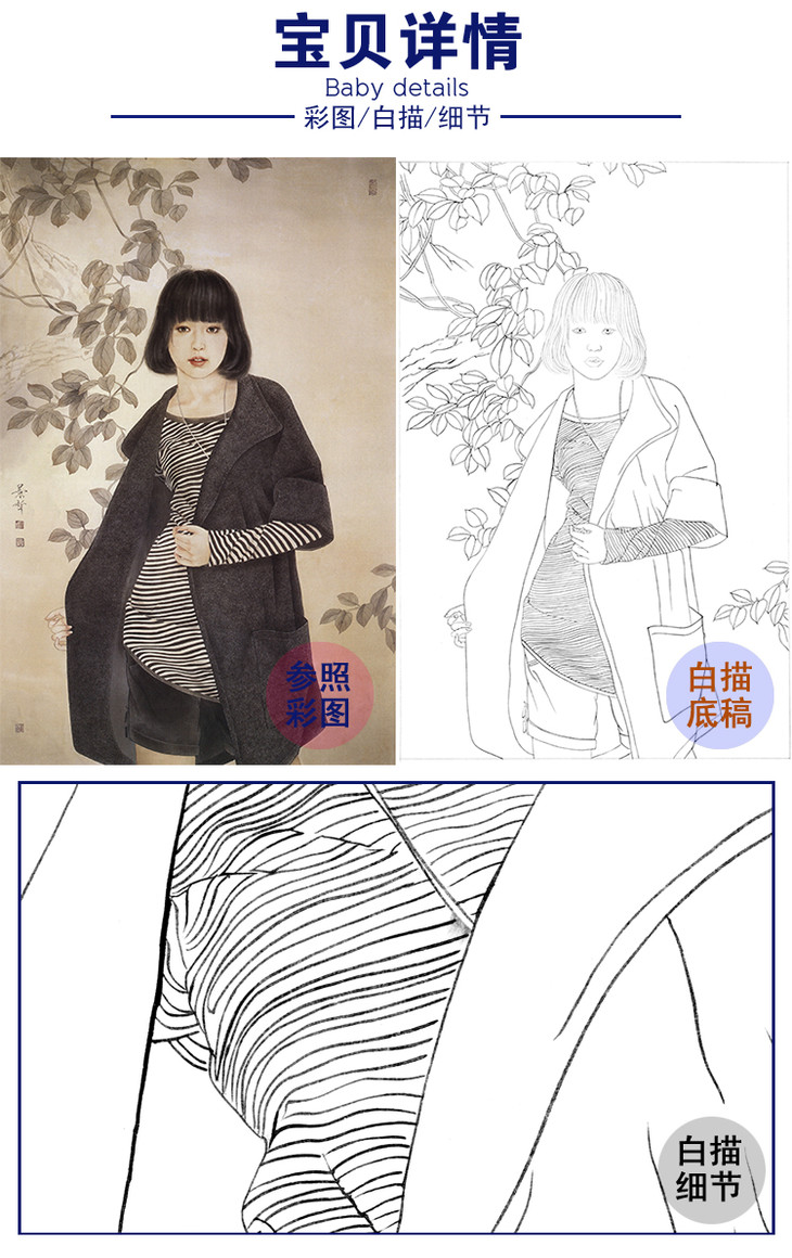 竖幅工笔人物白描底稿-崔景哲现代仕女-B120