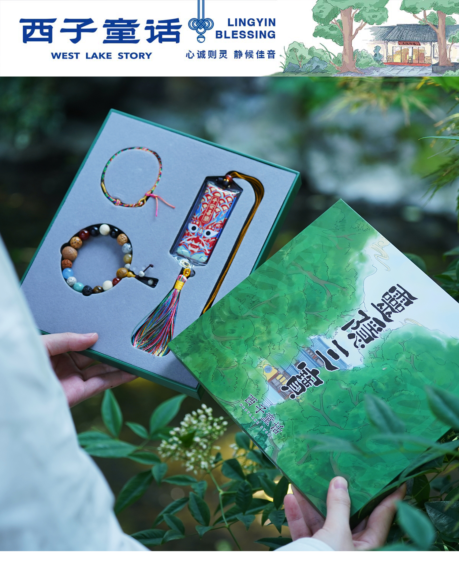 【灵隐景区直发 灵隐文创馆产品】灵隐三宝礼盒(灵隠十八籽手串、端午五彩绳、香囊)