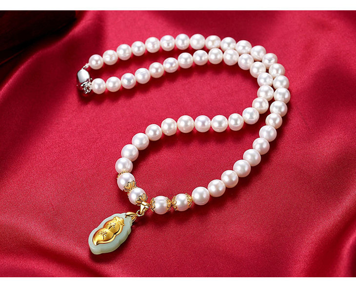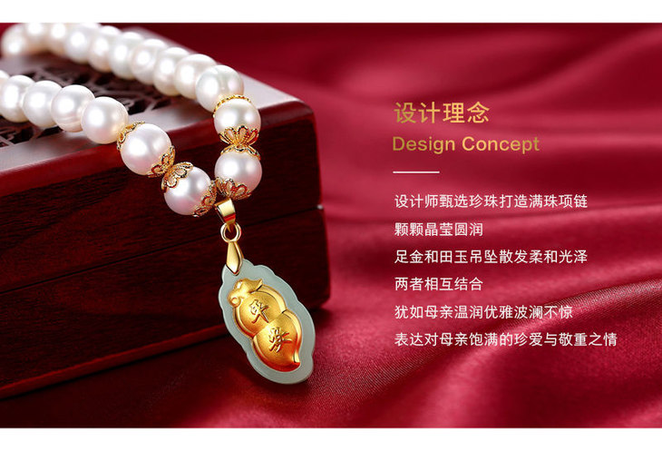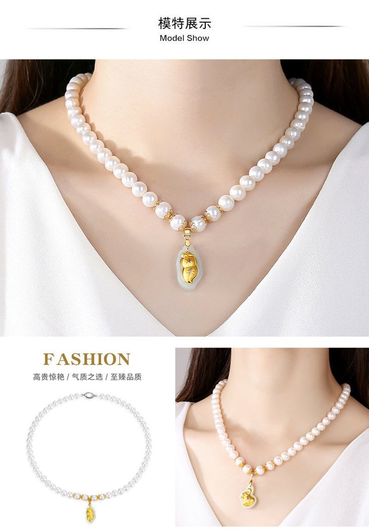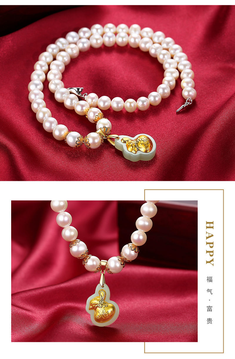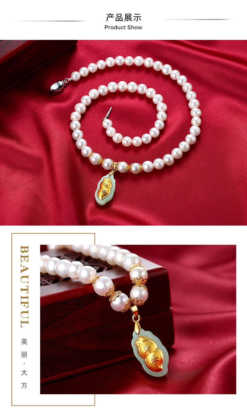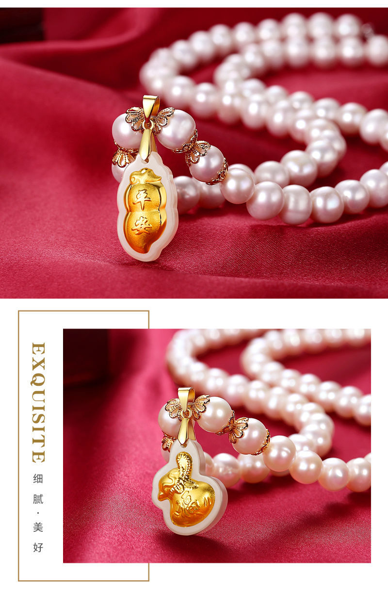 TZW-龙凤伴侣淡水珍珠项链足金镶和田玉母节送妈妈婆婆生日礼物