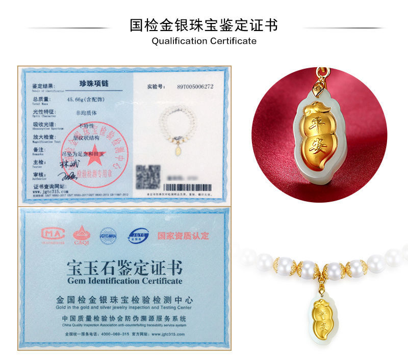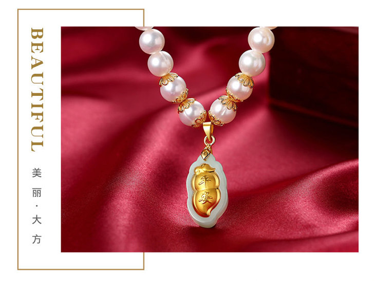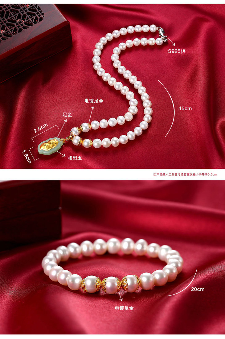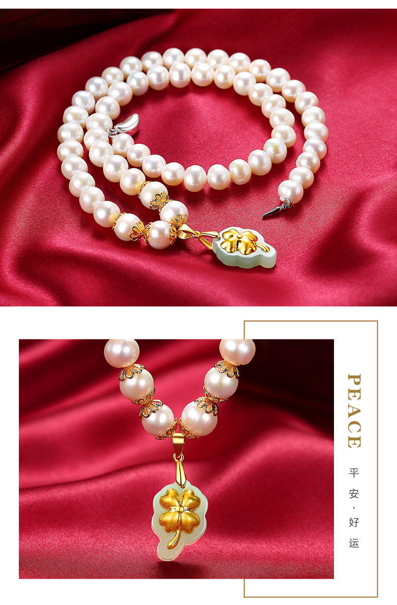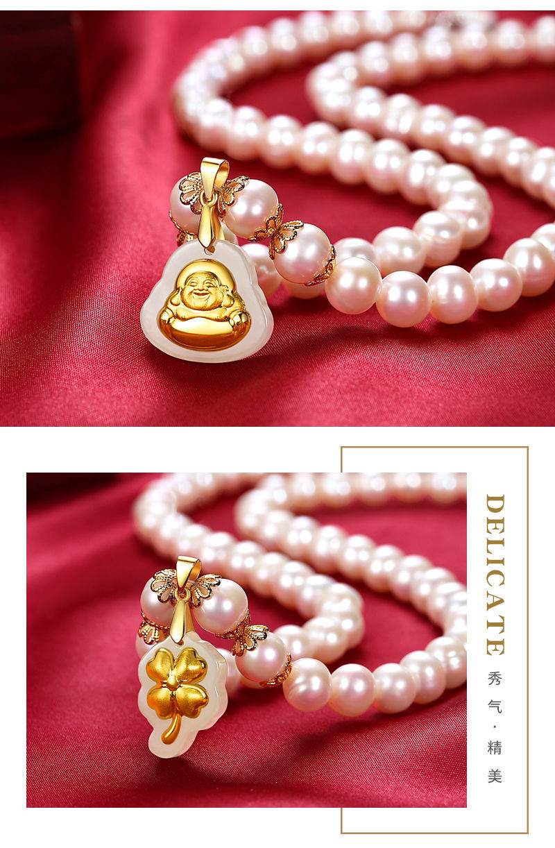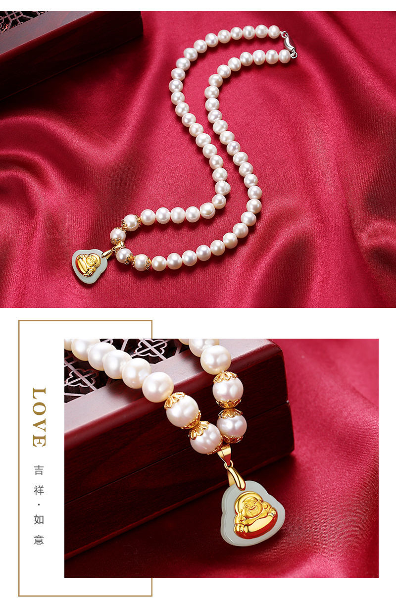 TZW-龙凤伴侣淡水珍珠项链足金镶和田玉母节送妈妈婆婆生日礼物