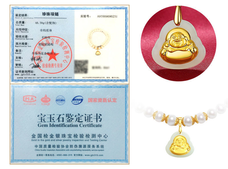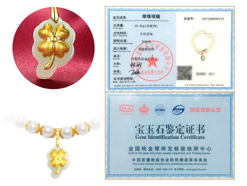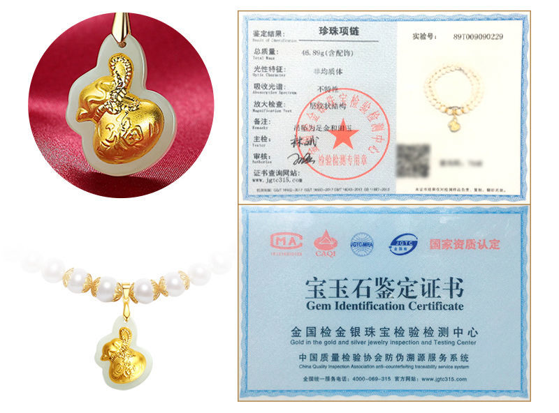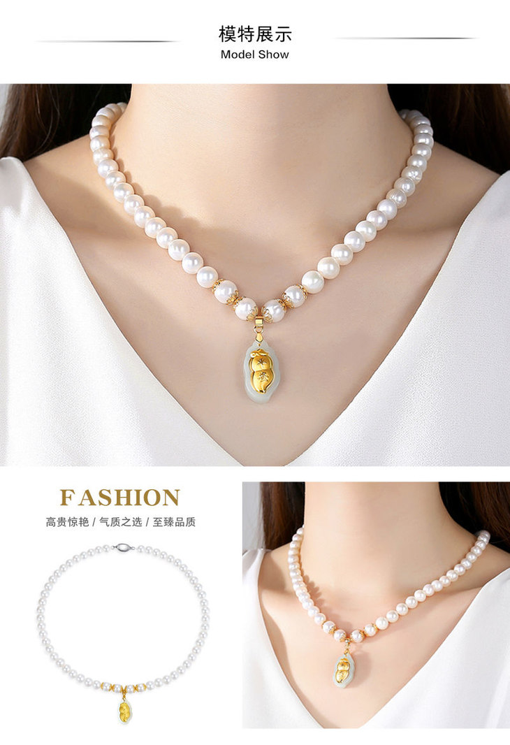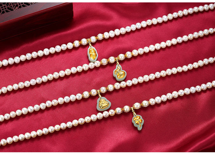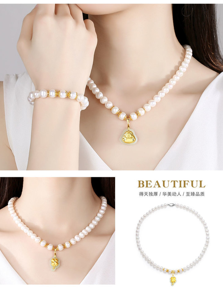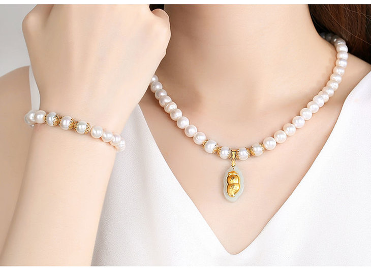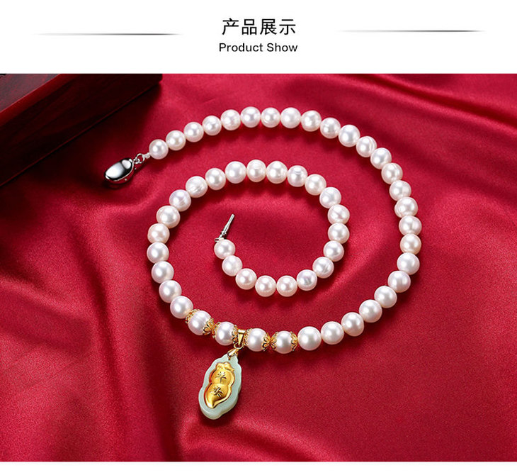 TZW-龙凤伴侣淡水珍珠项链足金镶和田玉母节送妈妈婆婆生日礼物
