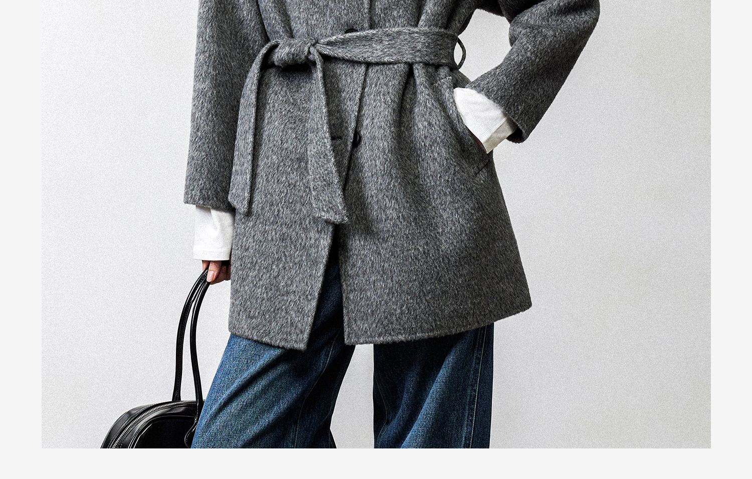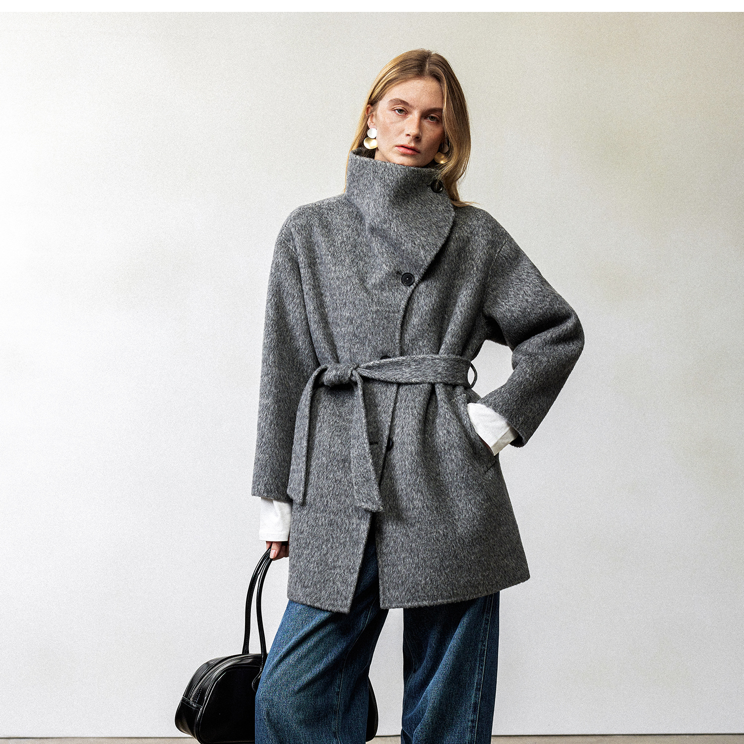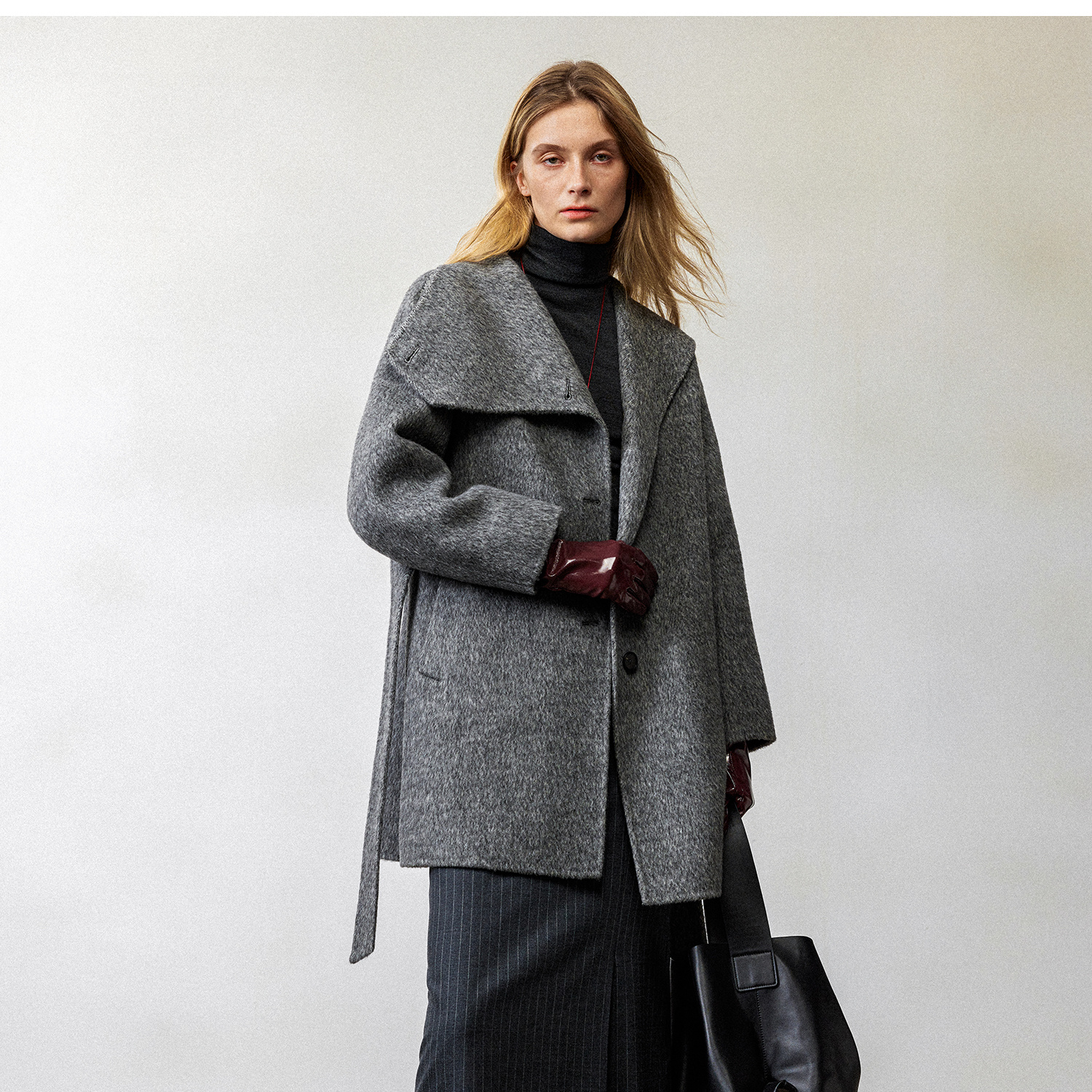 西嘉|羊驼羊毛混纺 高智淡人风双面毛呢大衣外套女2024秋冬高级感
