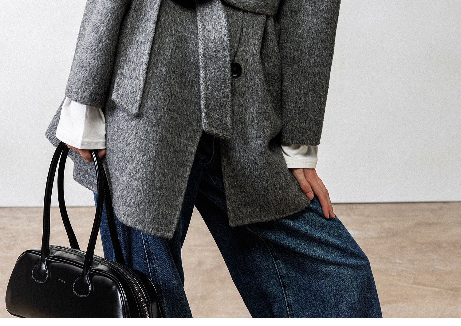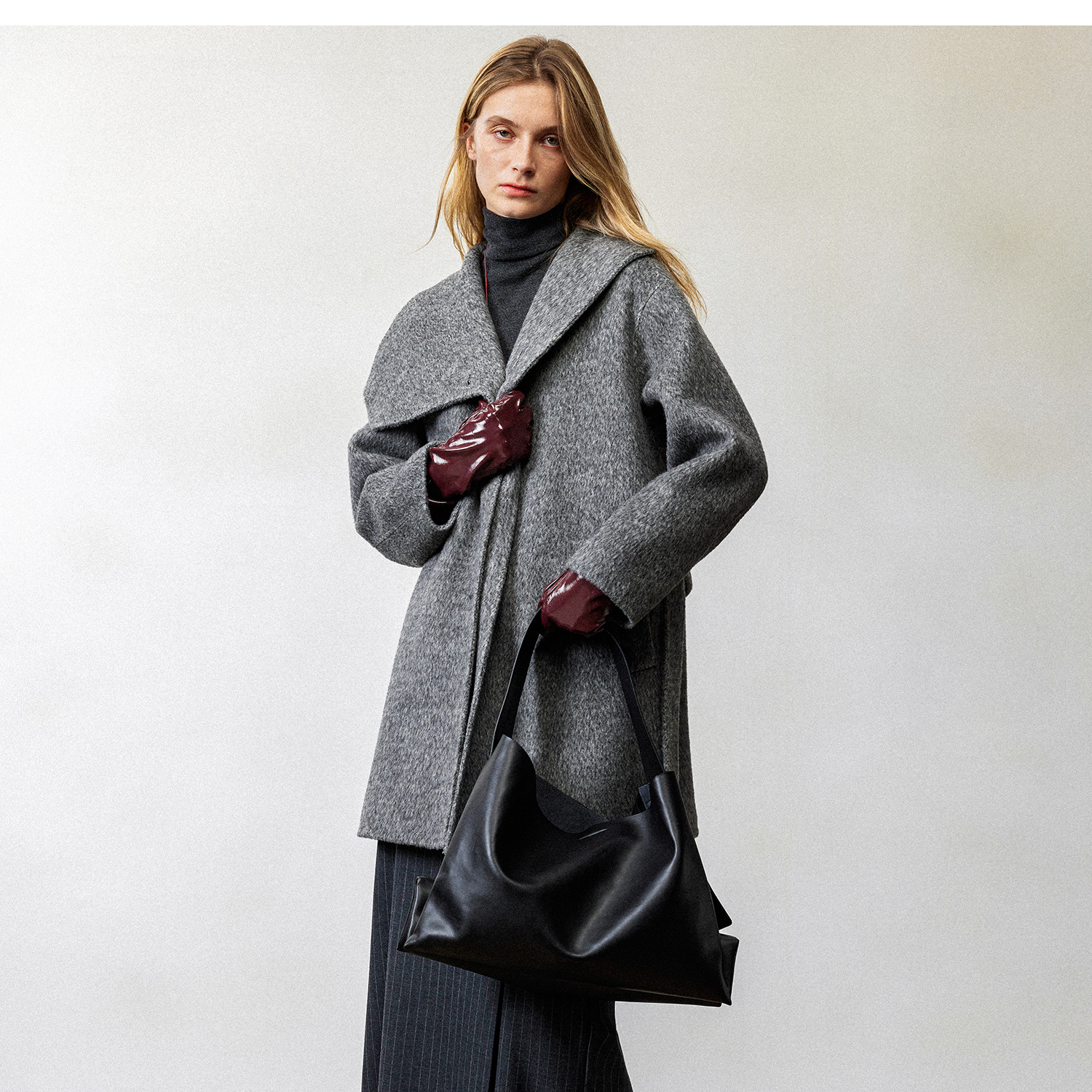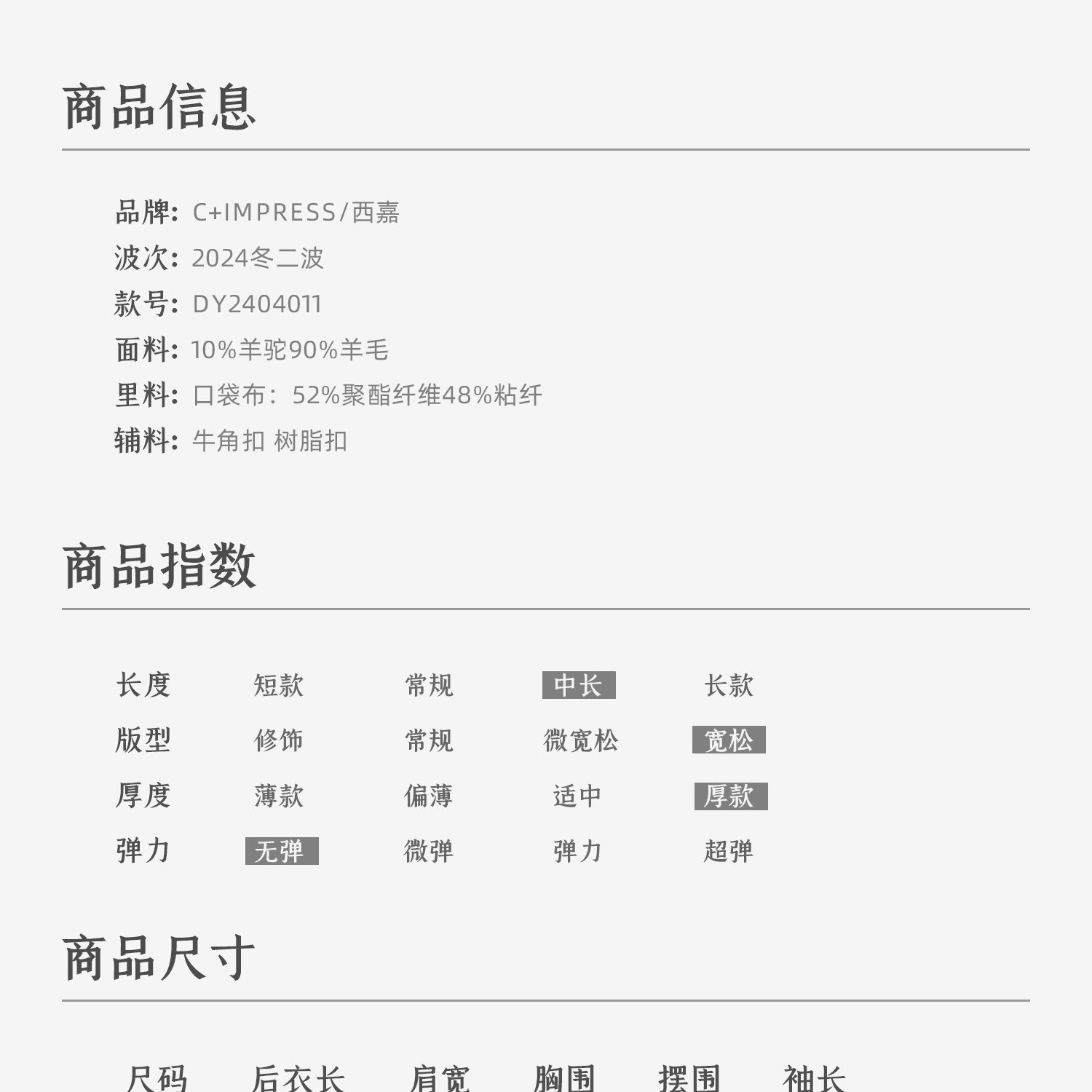 西嘉|羊驼羊毛混纺 高智淡人风双面毛呢大衣外套女2024秋冬高级感