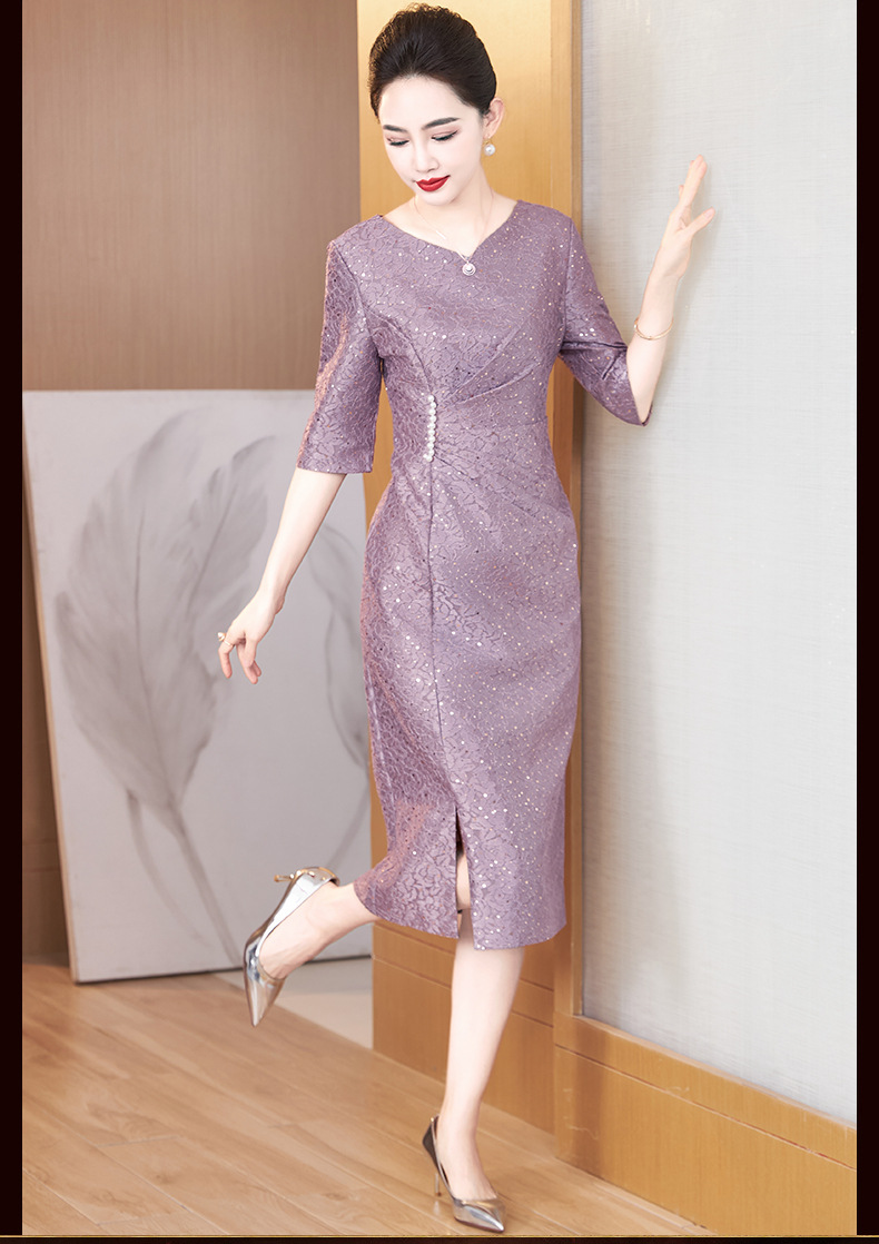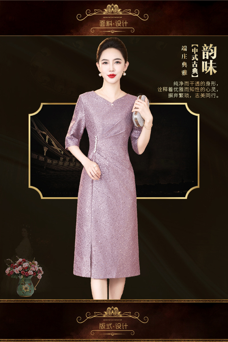 LC 2531旗袍连衣裙中式改良版七分袖旗袍日常可穿