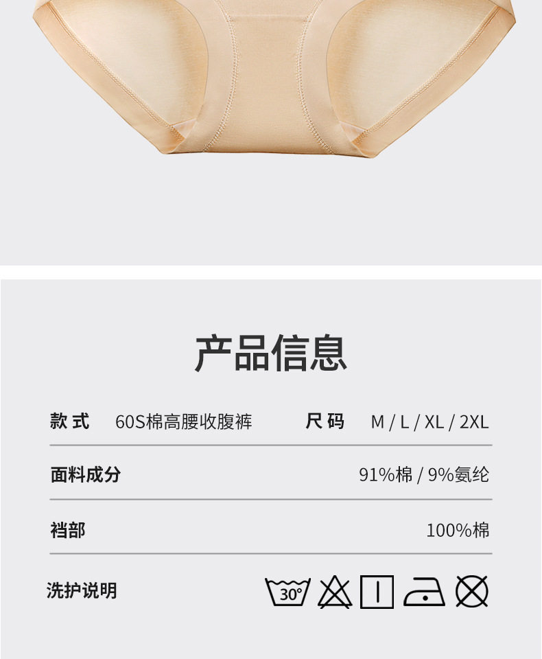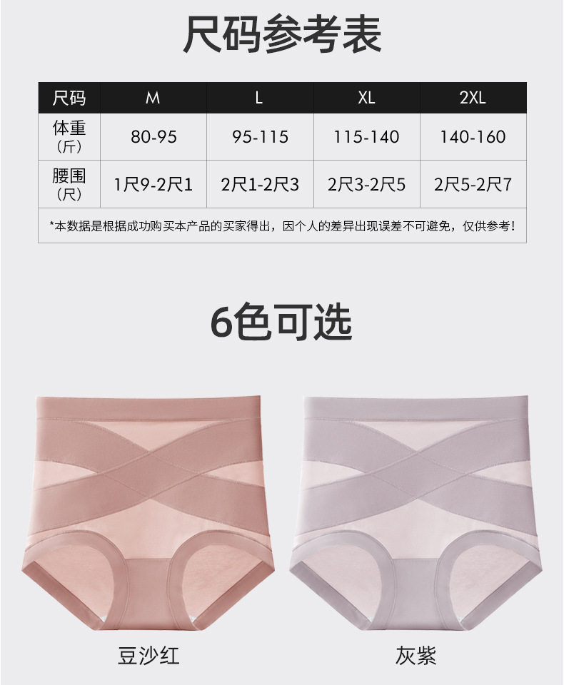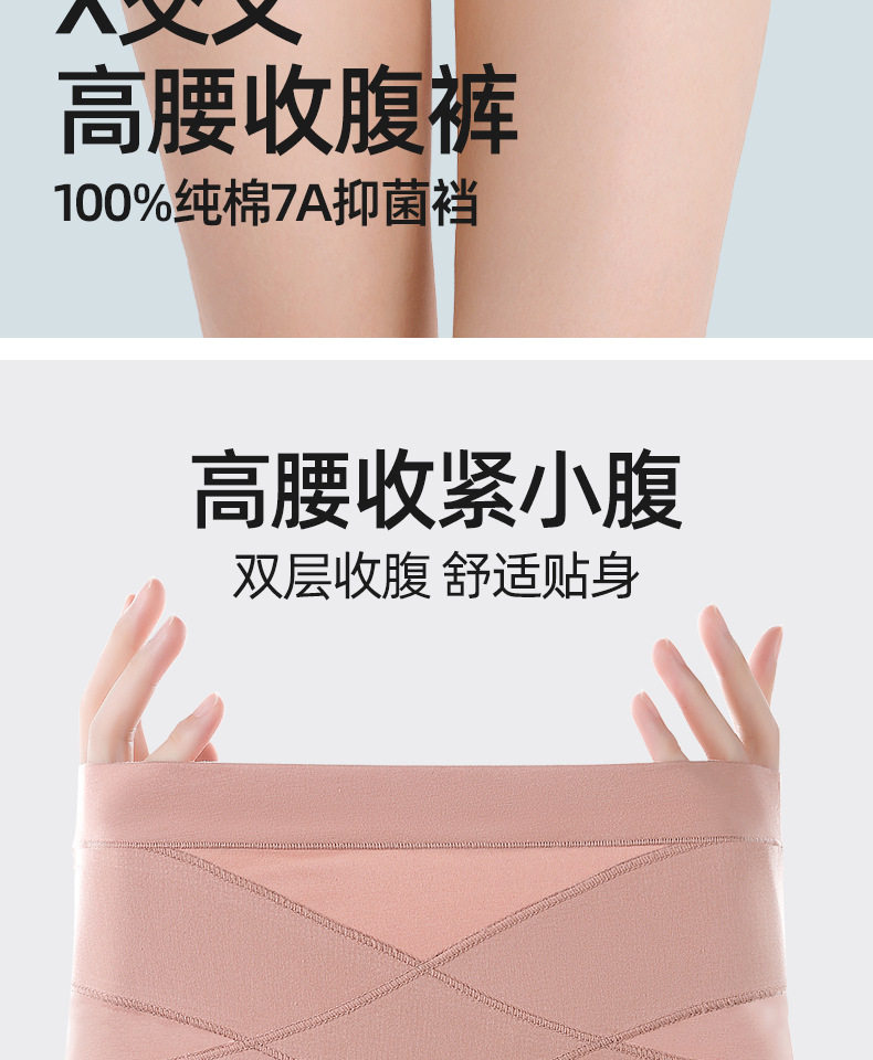 XY-1380 【1条】60支高腰收腹神器内裤女纯棉收小肚子7A全棉裆塑形提臀不夹臀