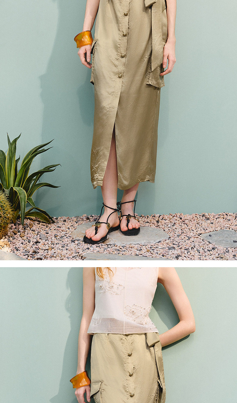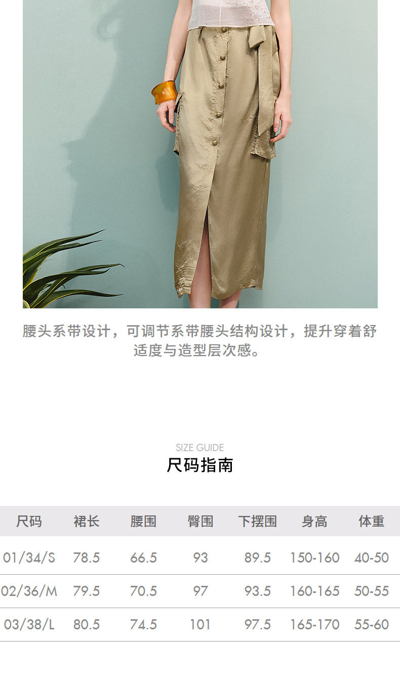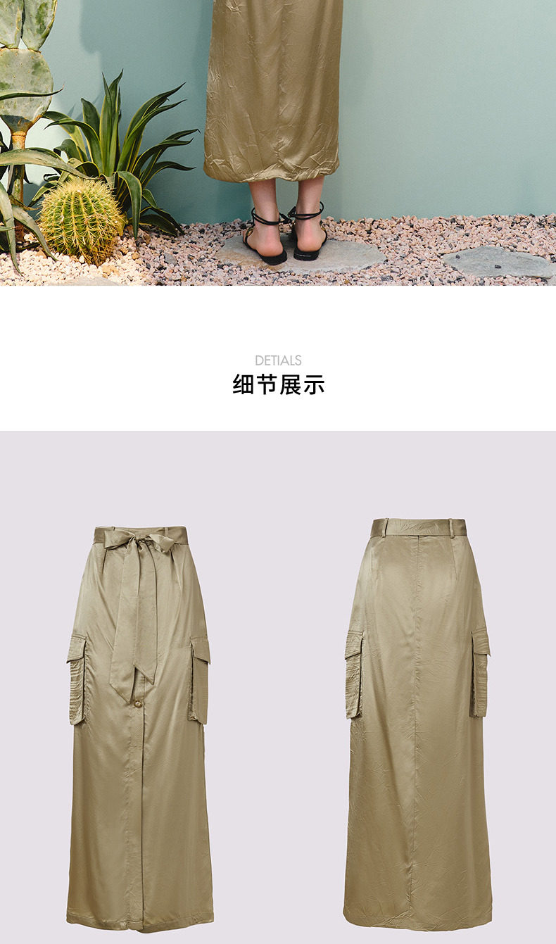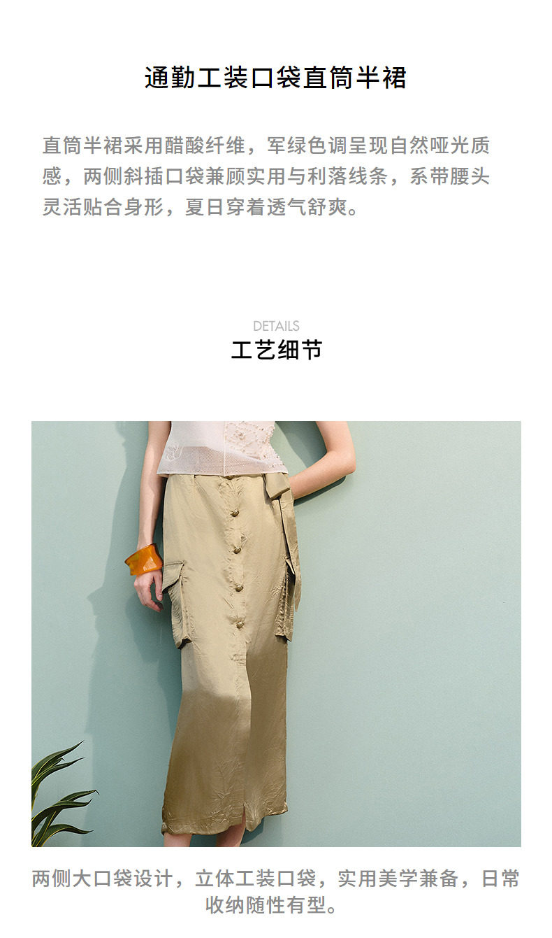 【商场同款】MAXRIENY通勤工装口袋直筒半裙25夏款军绿色醋酸裙子(货号:MC86SK275)