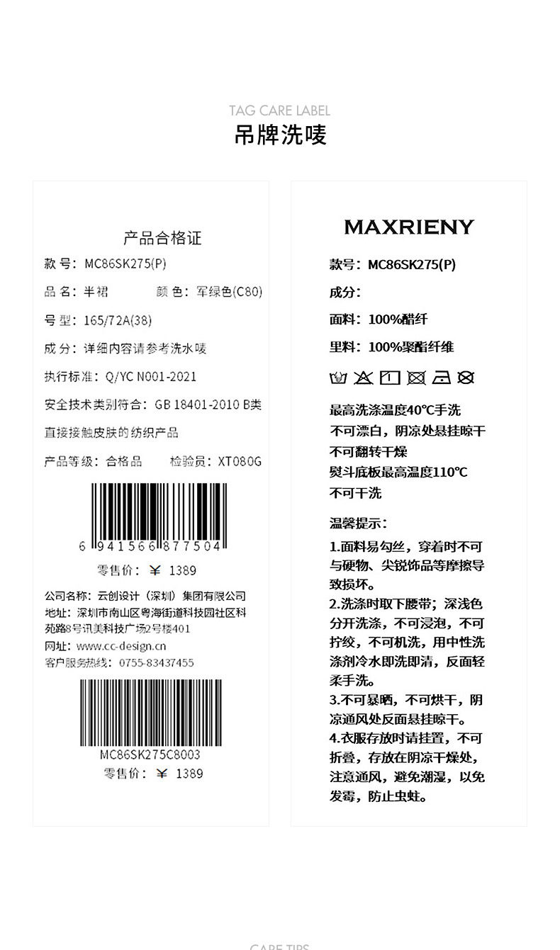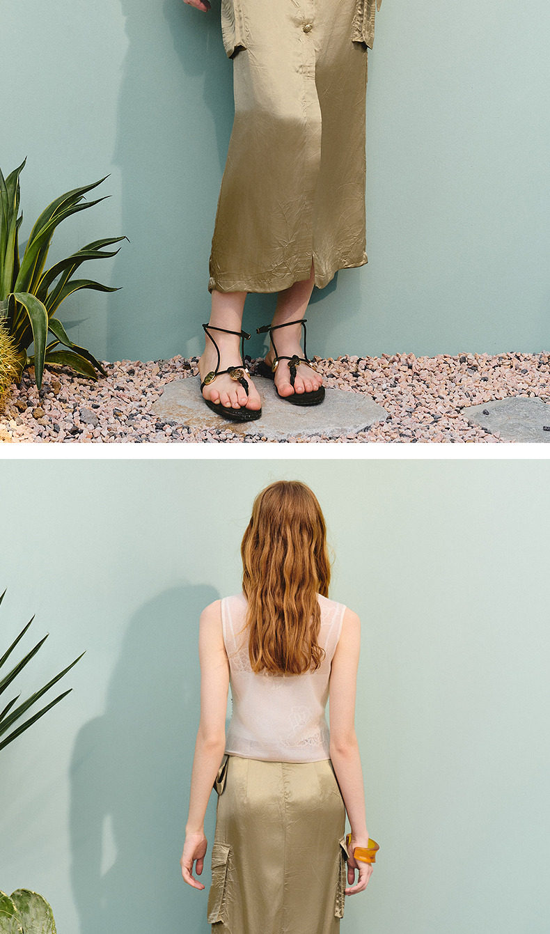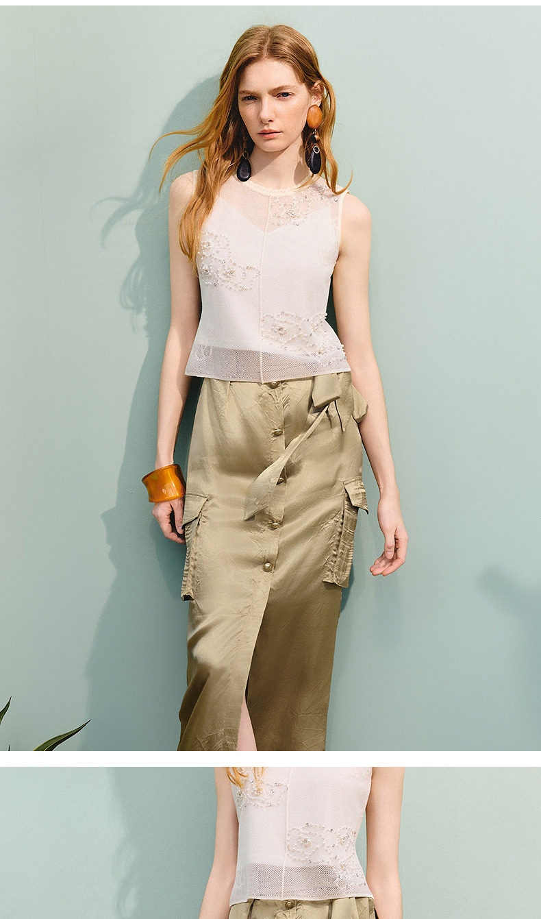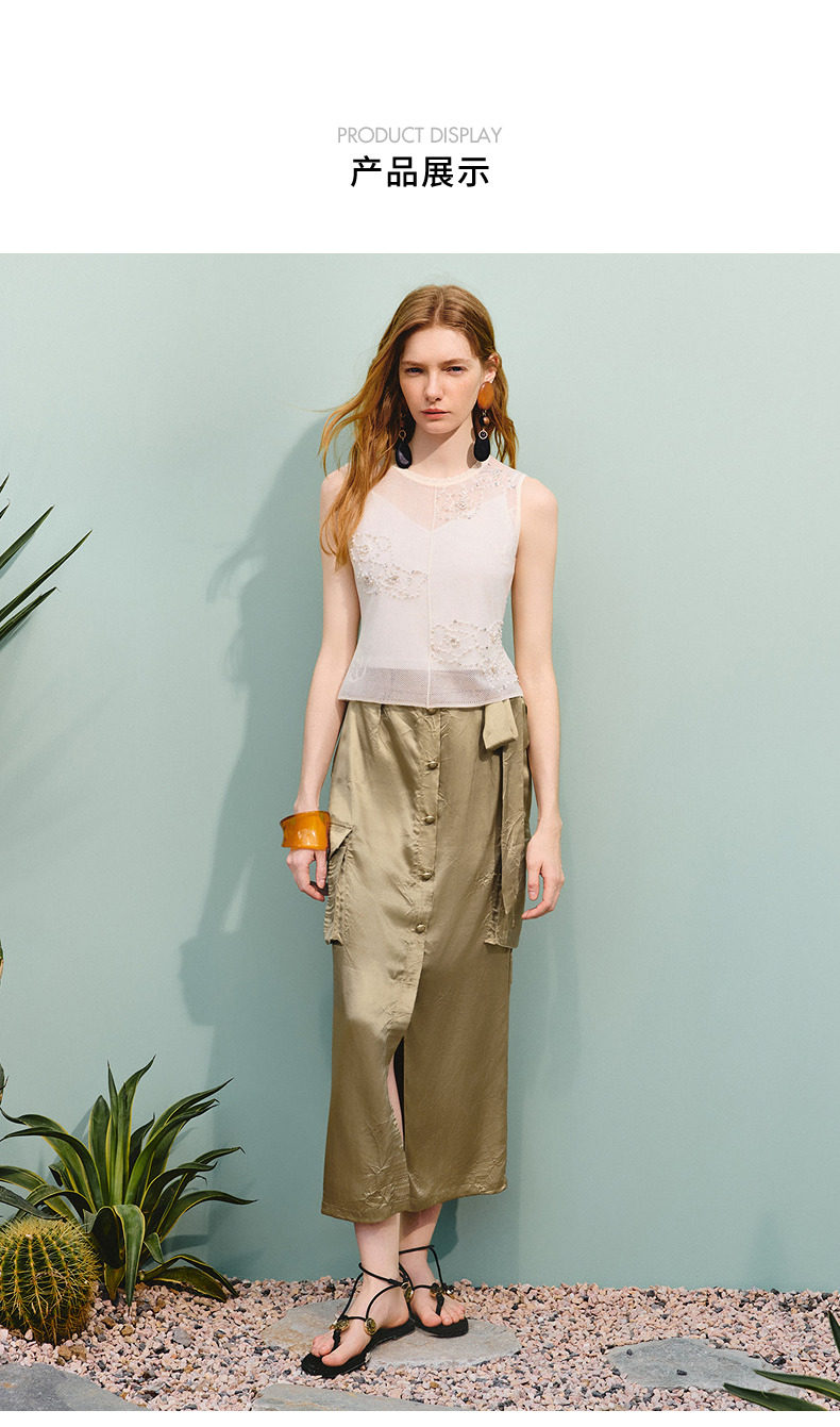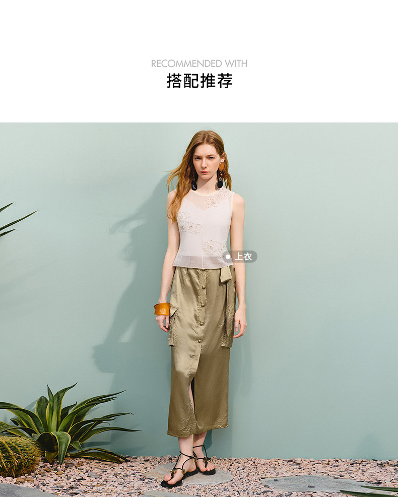 【商场同款】MAXRIENY通勤工装口袋直筒半裙25夏款军绿色醋酸裙子(货号:MC86SK275)
