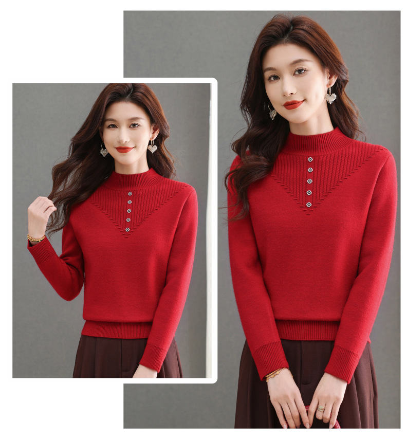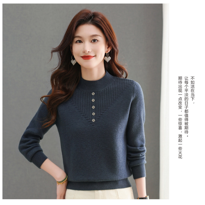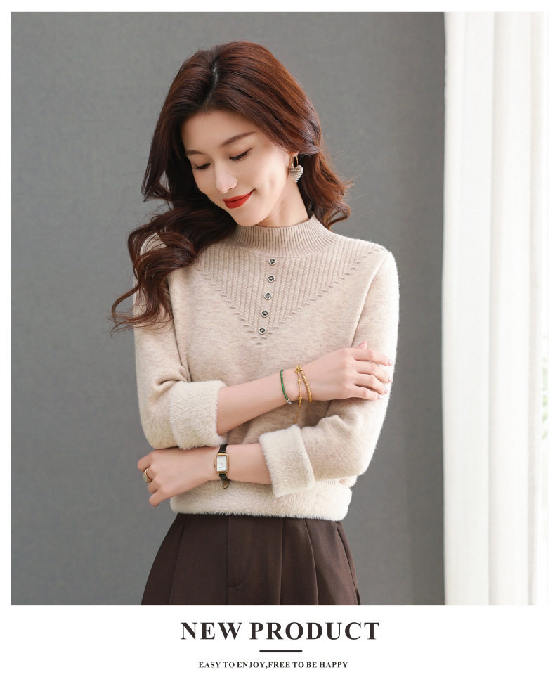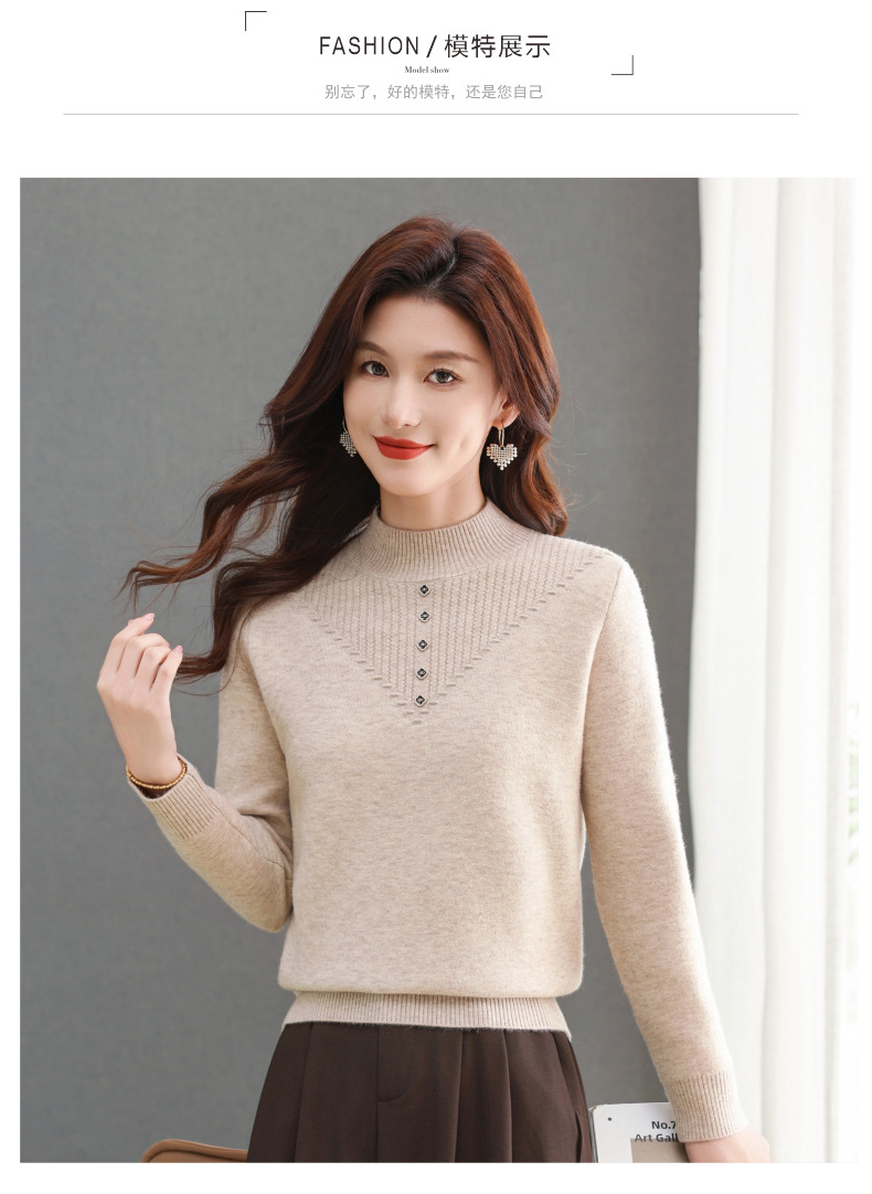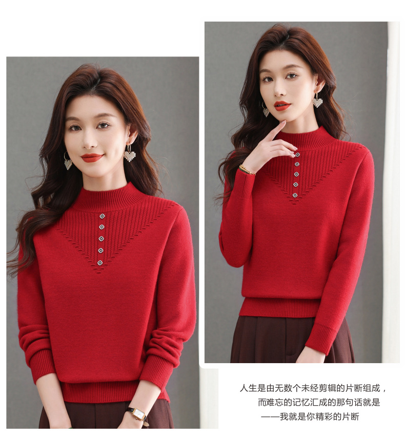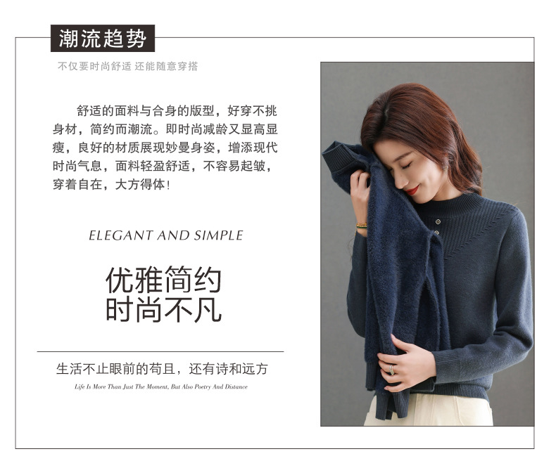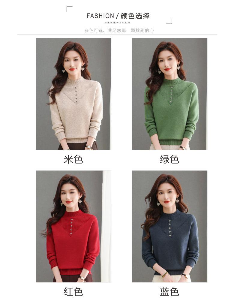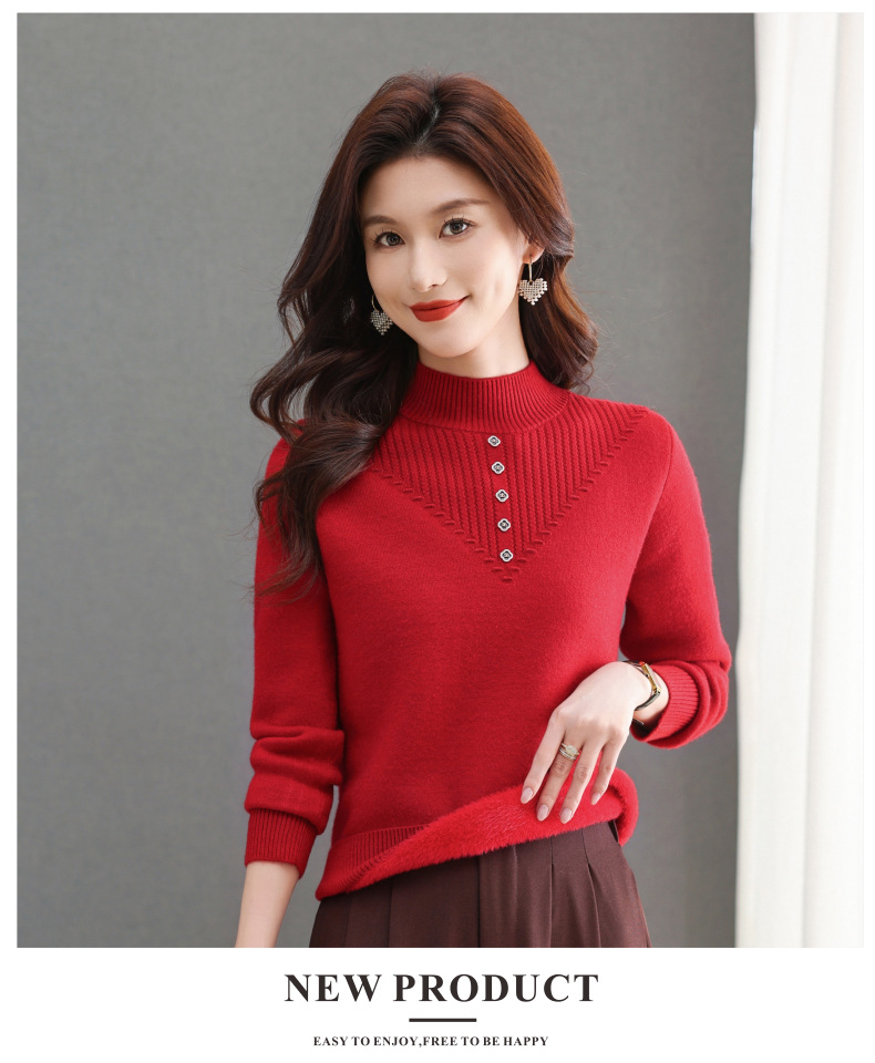 CC-101-2615毛衣女士秋冬季新款一体洋气宽松加绒厚款保暖打底衫提花