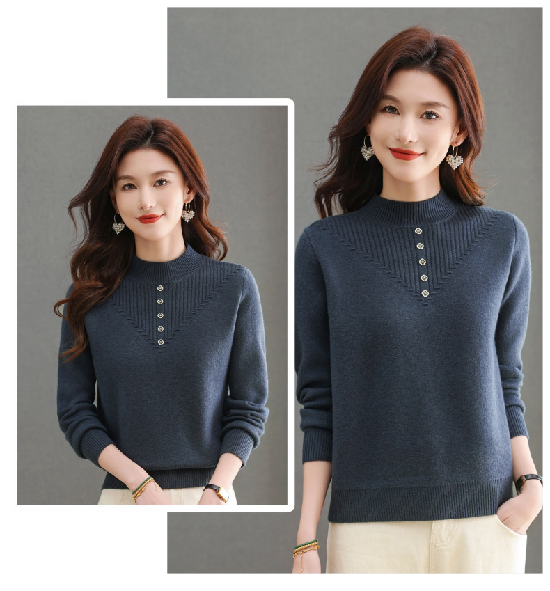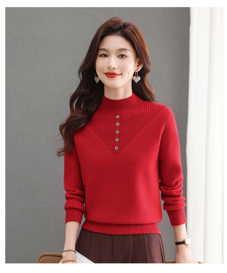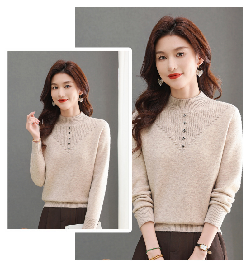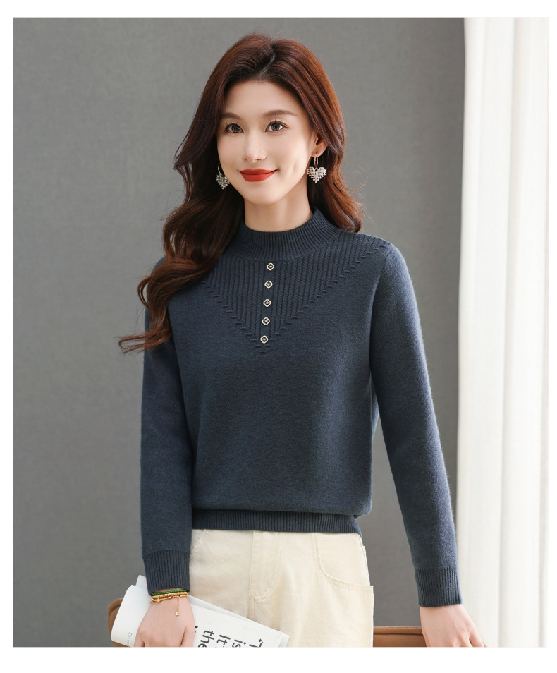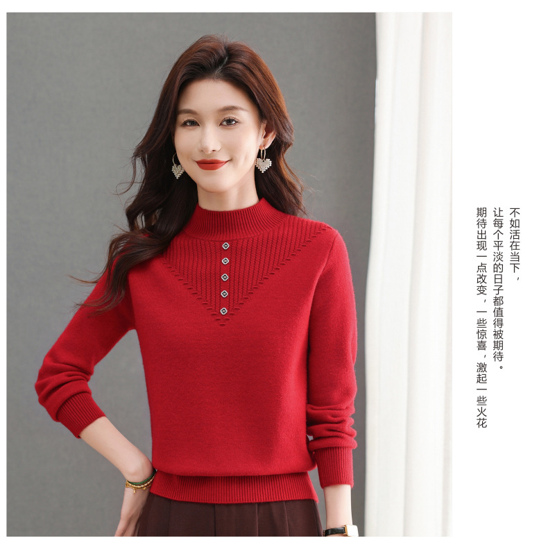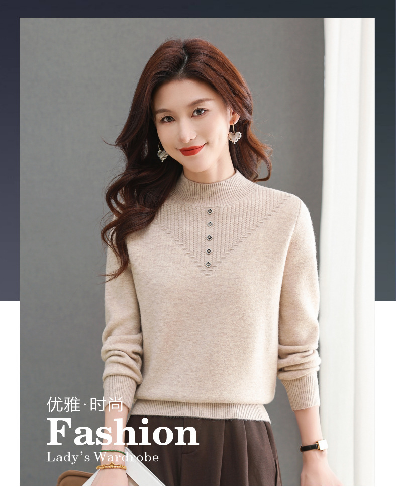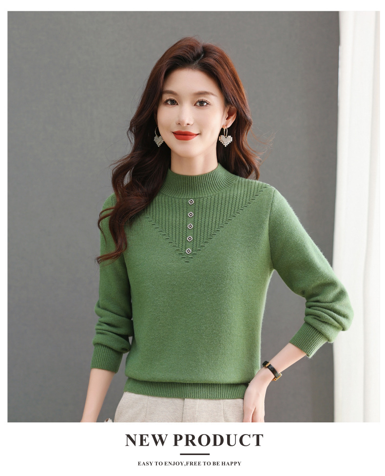 CC-101-2615毛衣女士秋冬季新款一体洋气宽松加绒厚款保暖打底衫提花