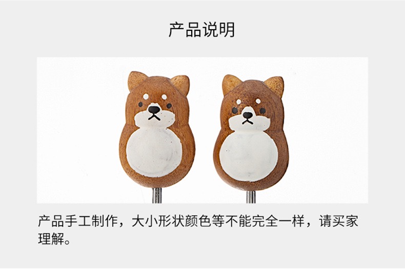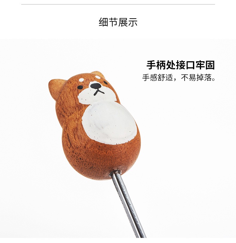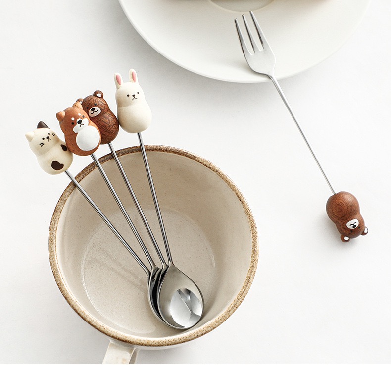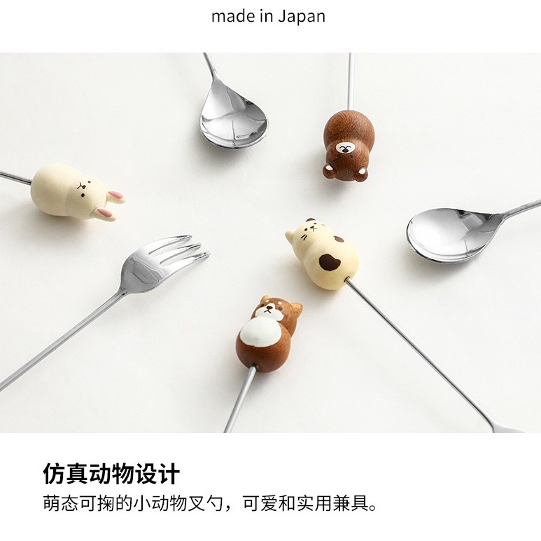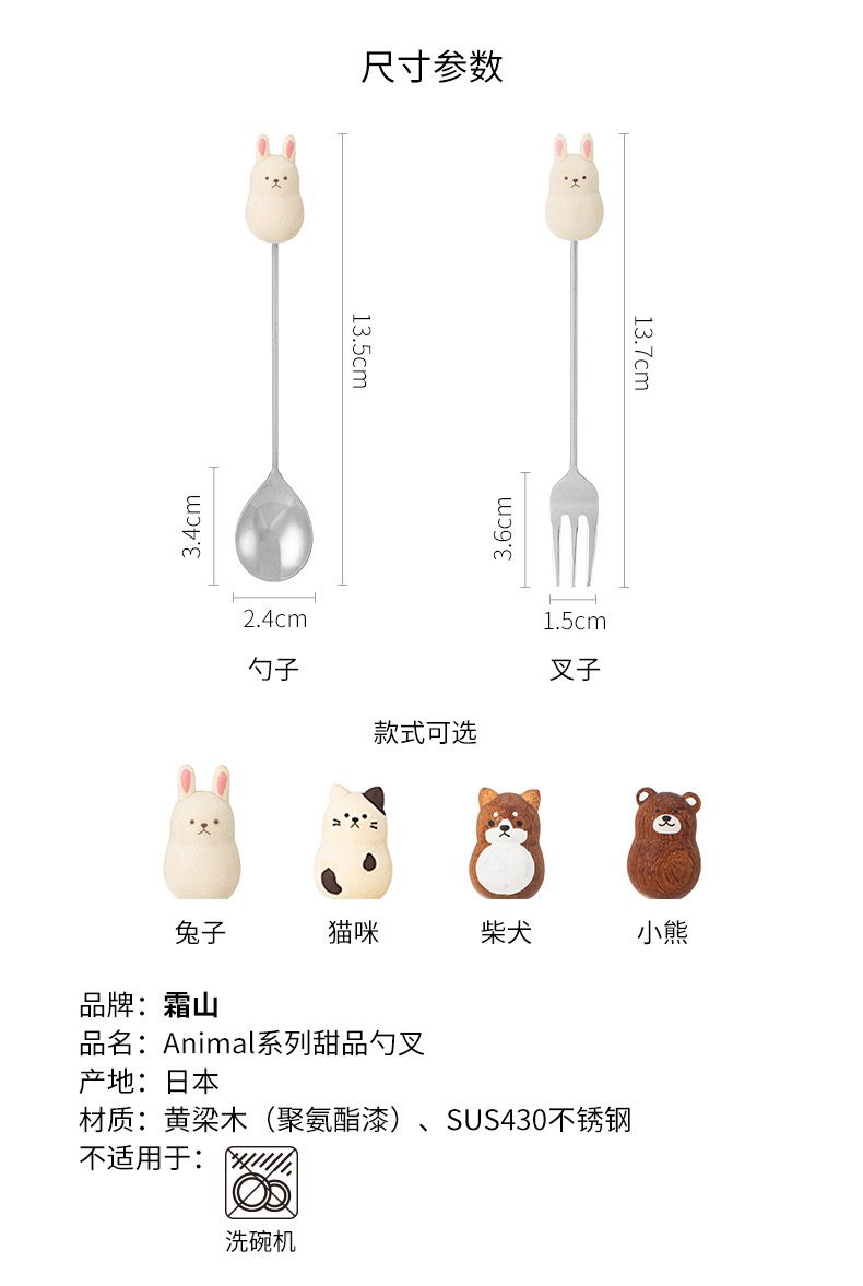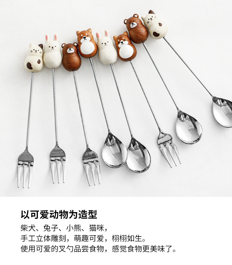 日本牌 Animal系列实木动物头叉勺 不锈钢餐具甜品勺咖啡勺水果叉