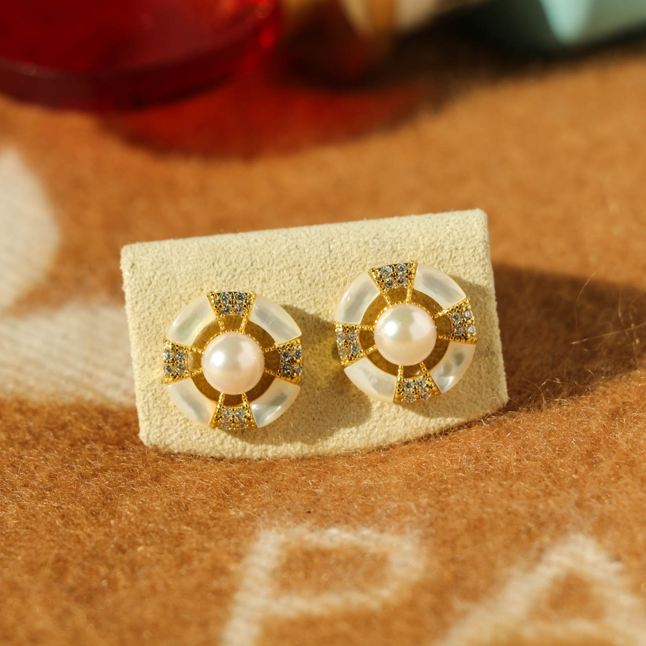 【现货】海外成品进口 小香风耳环 海水贝壳 纯银镀真金 akoya海水珍珠