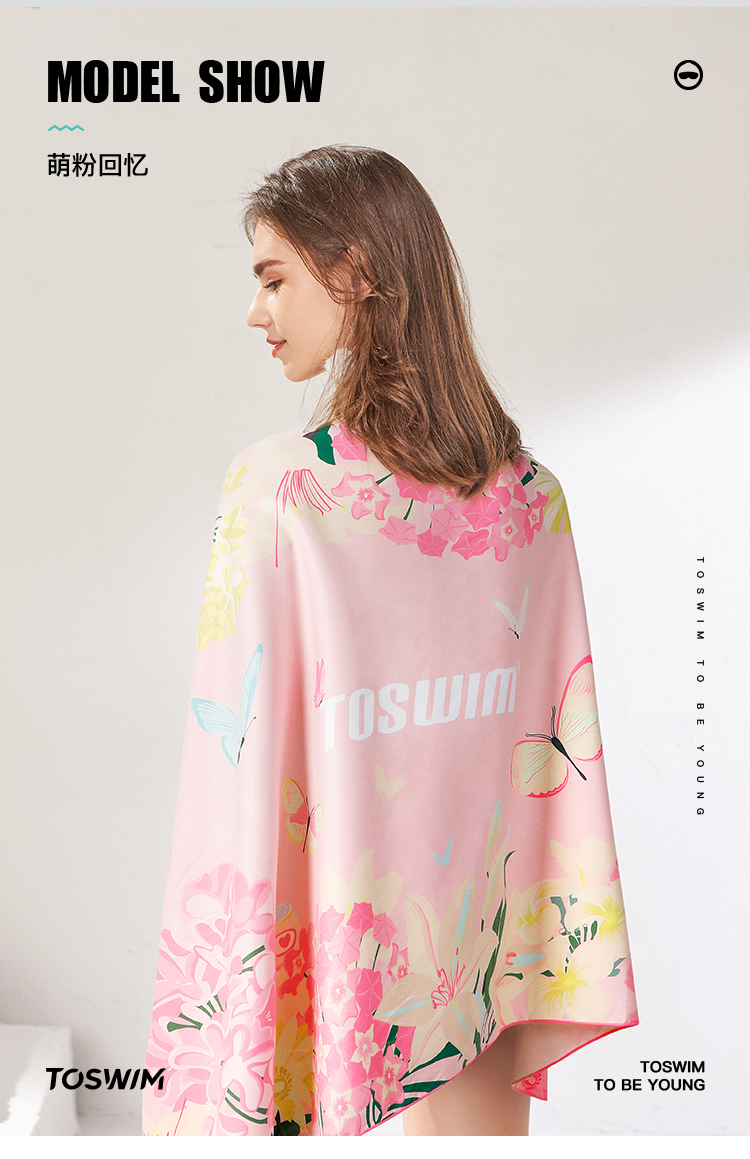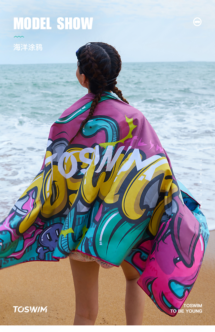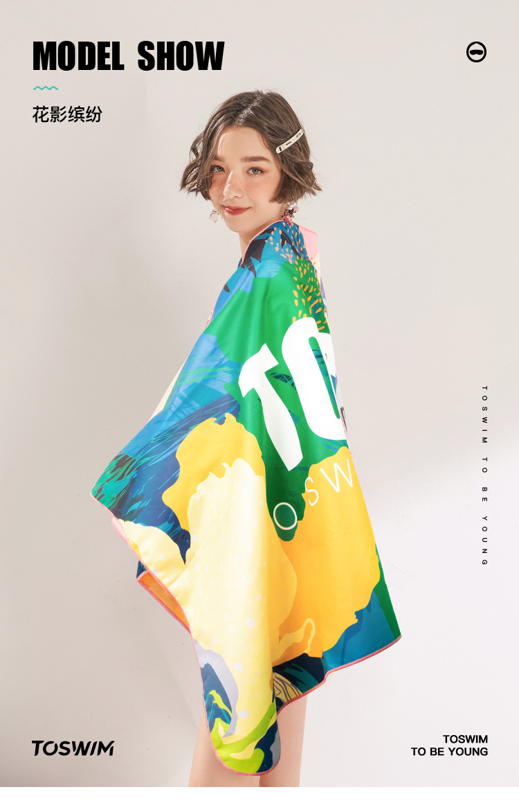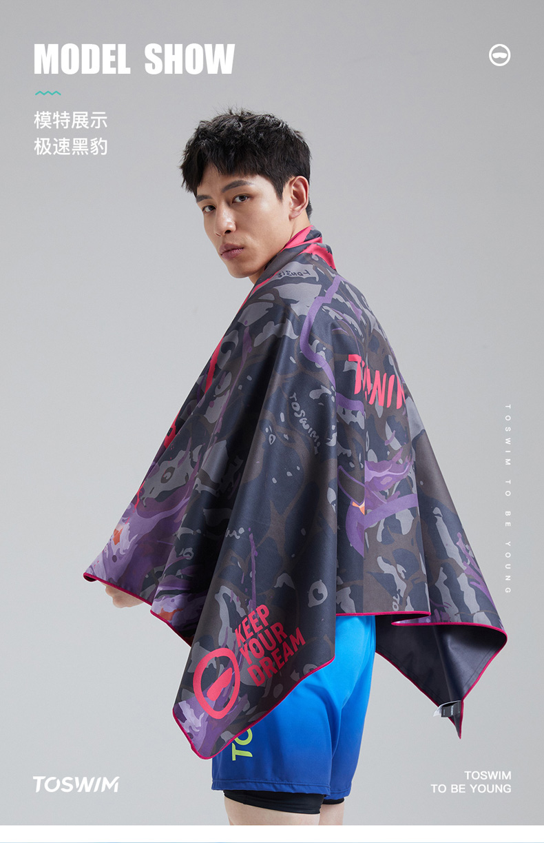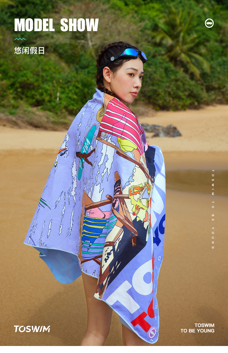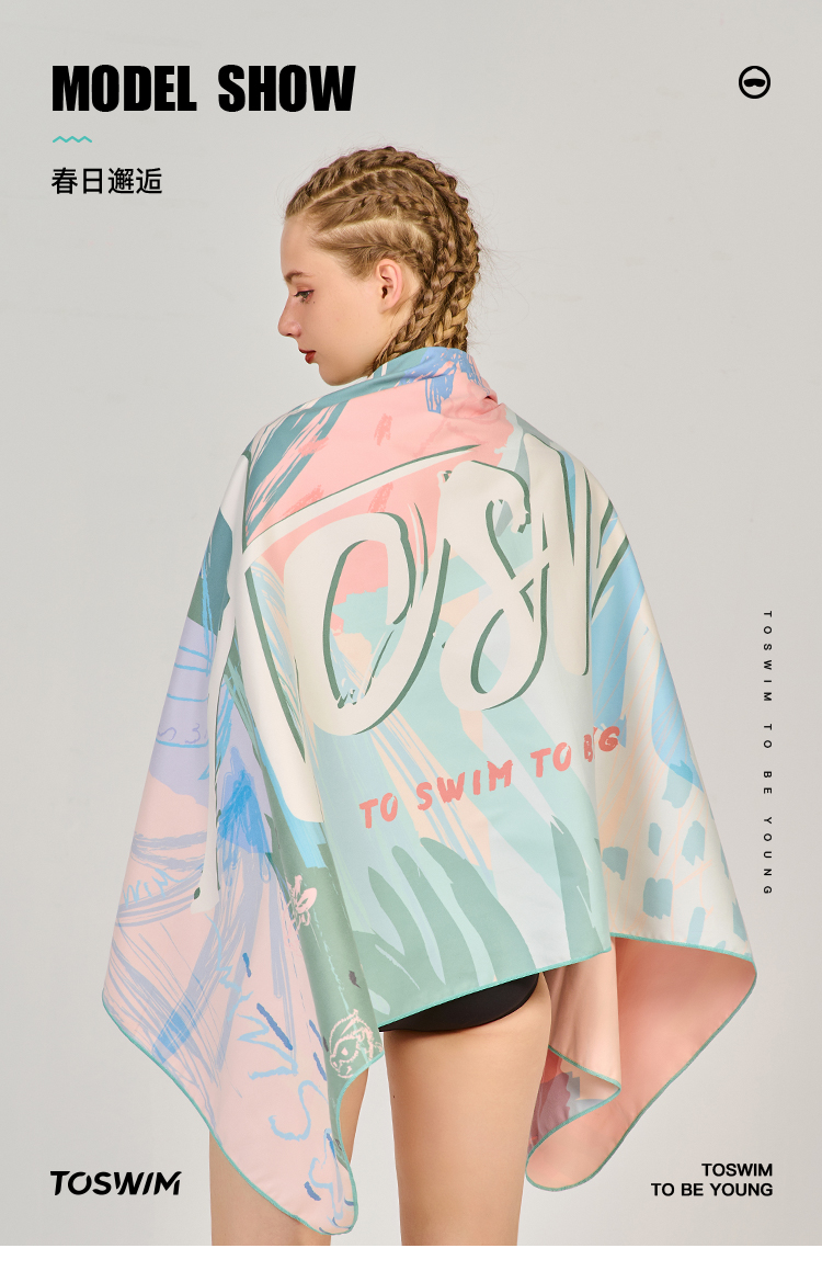 泳镜侠推荐!TOSWIM户外可穿式洗澡快干印花健身薄款大号游泳毛巾