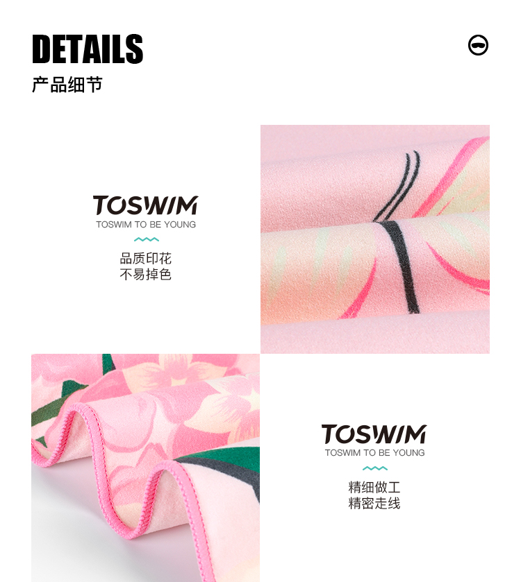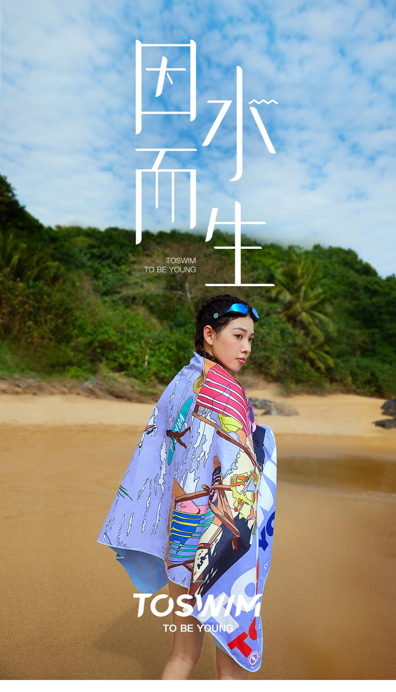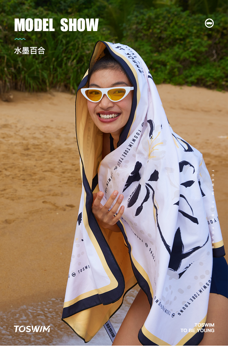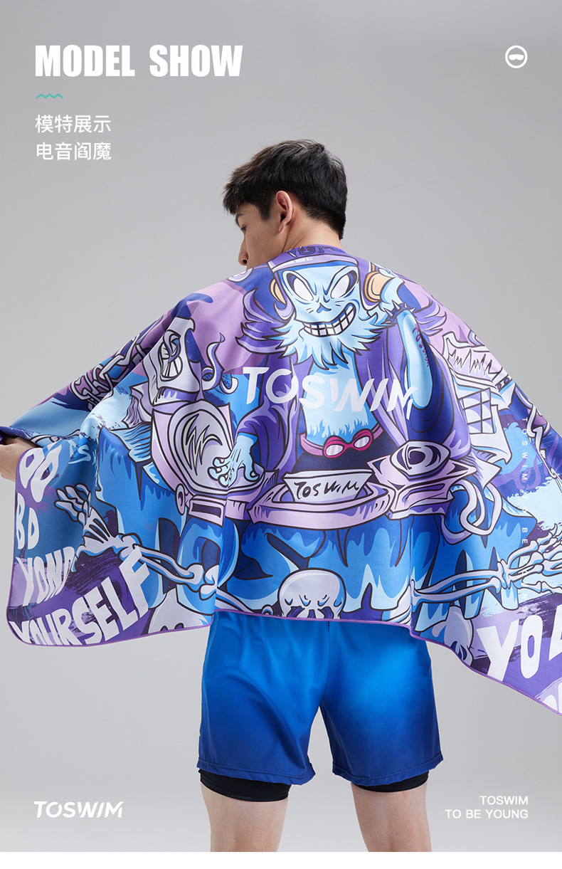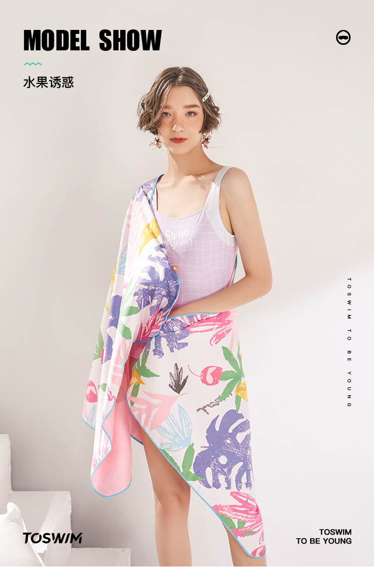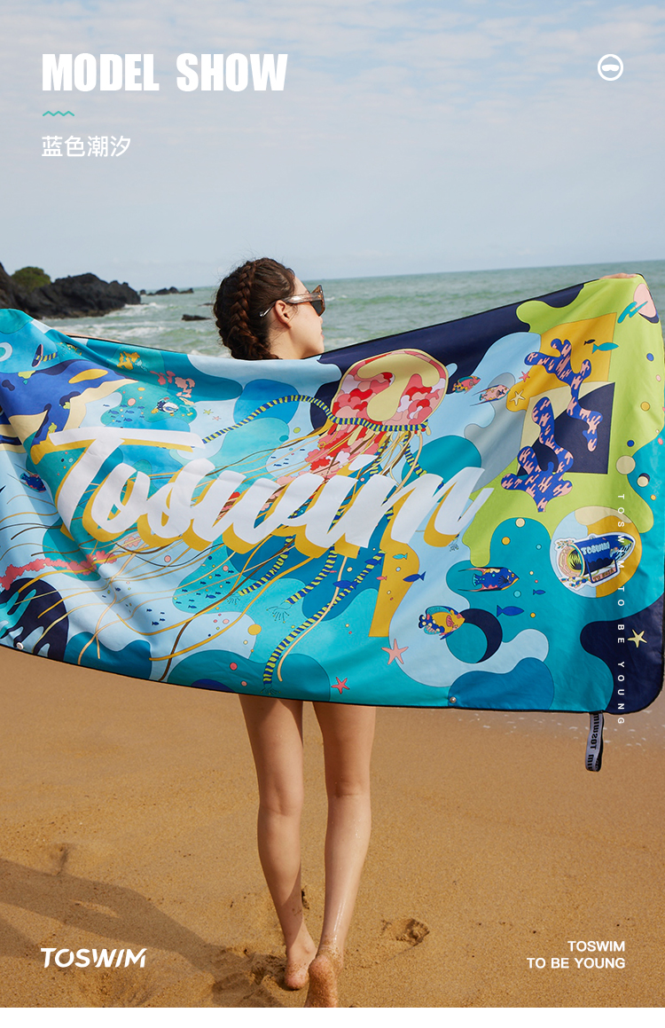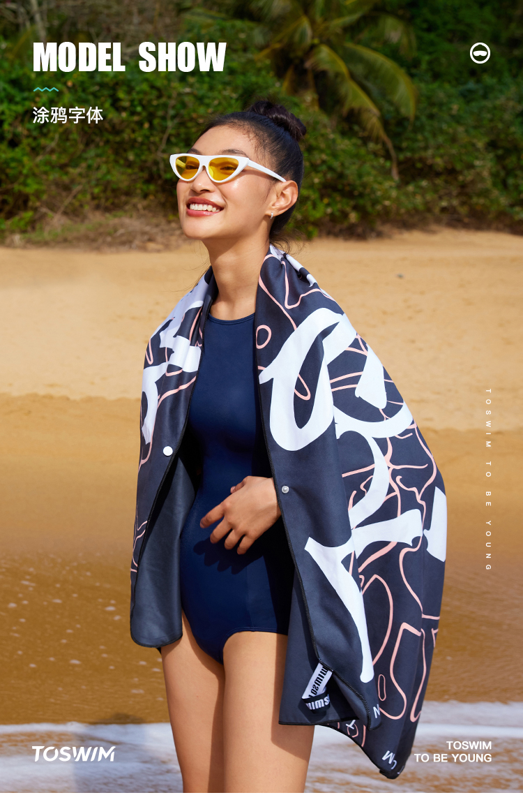 泳镜侠推荐!TOSWIM户外可穿式洗澡快干印花健身薄款大号游泳毛巾