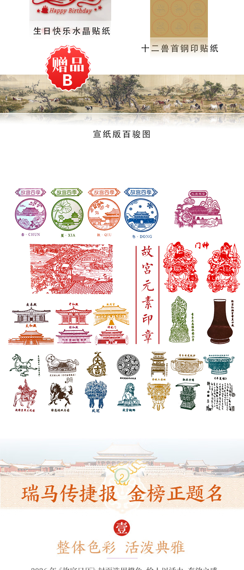 《2026故宫日历》生肖盖章版60个章 赠12枚钢印贴+1枚生日贴+一幅百骏图