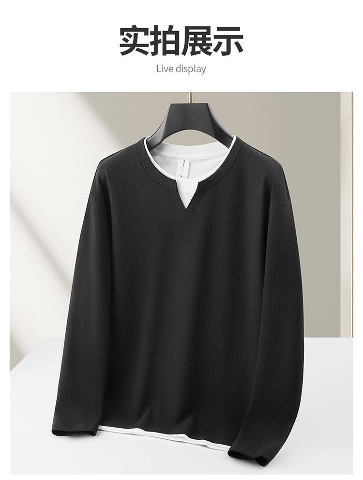 【DKP】大依优型大码男装秋季圆领卫衣时尚休闲商务假两件棉质长袖卫衣