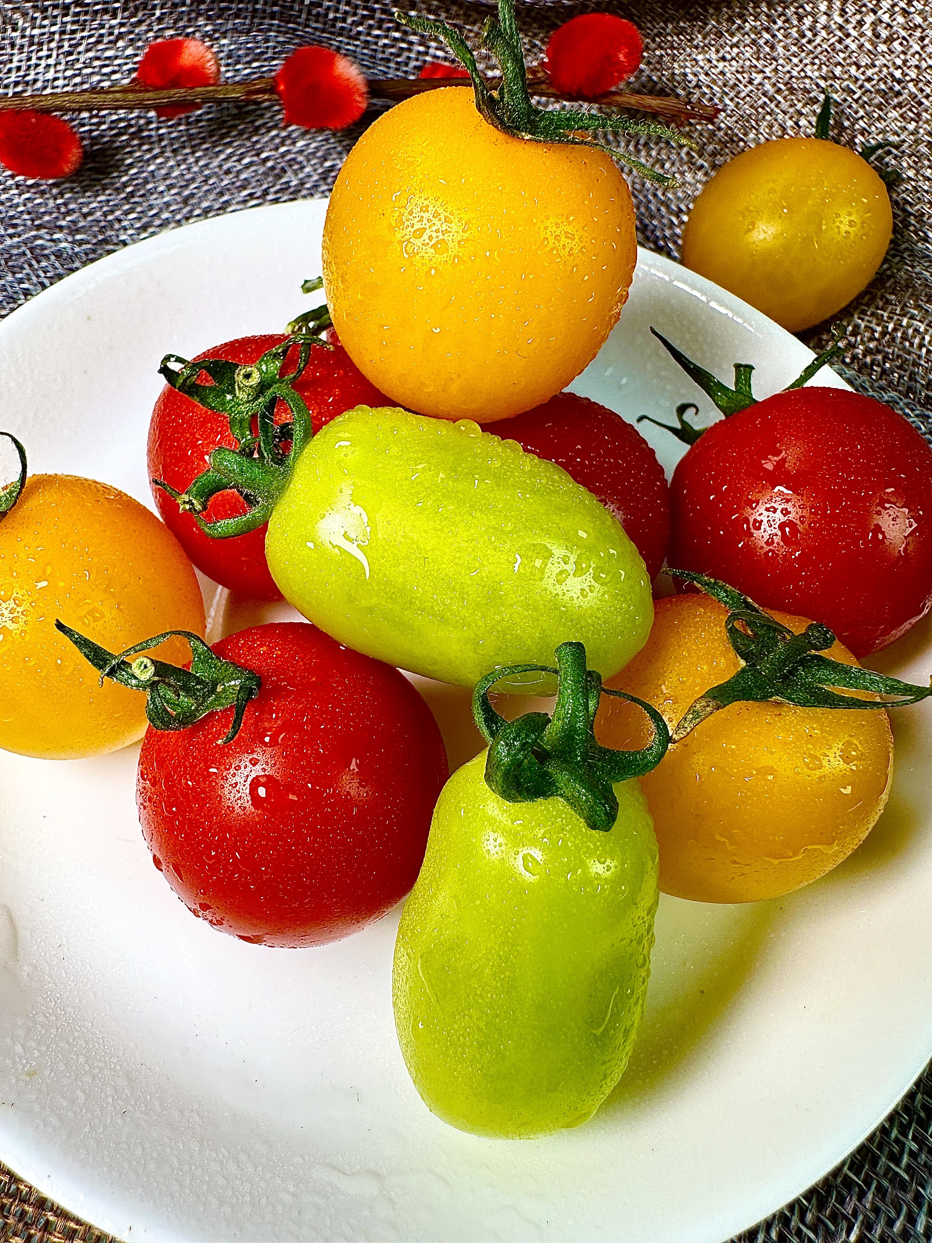 妮小番,彩虹小番茄,像糖豆儿一样的小番茄~皮薄肉嫩,一口爆浆番茄味超浓郁,高甜不失清爽~小番茄中的“钻柿”级口感