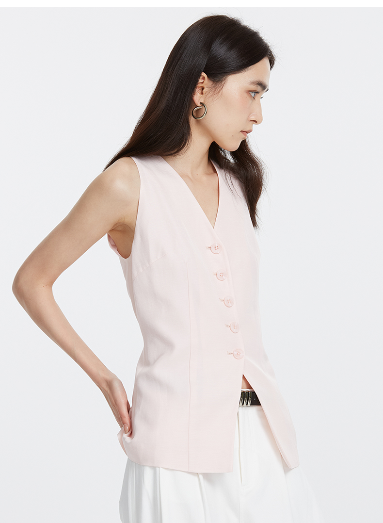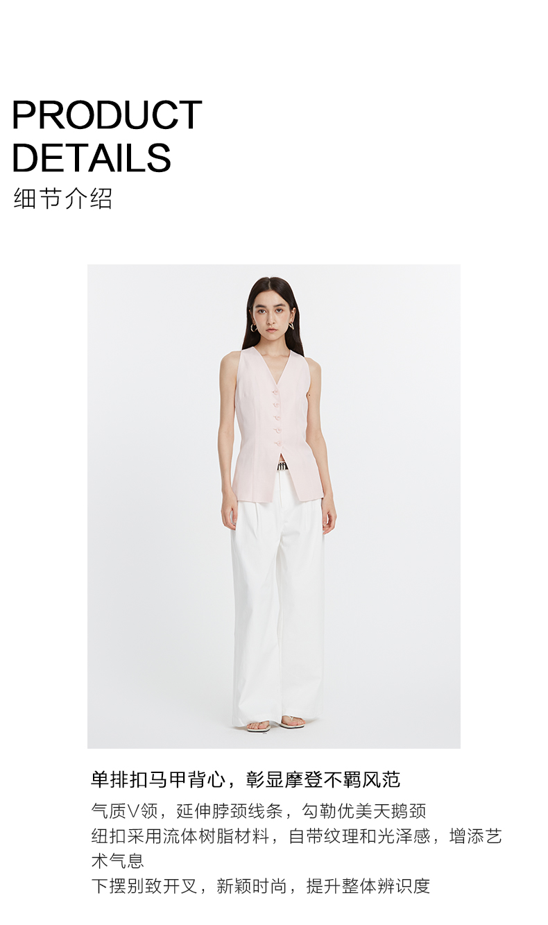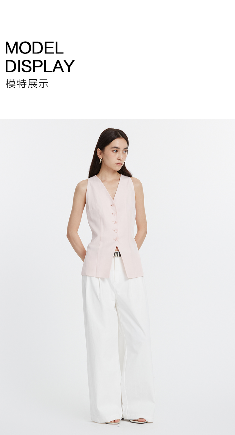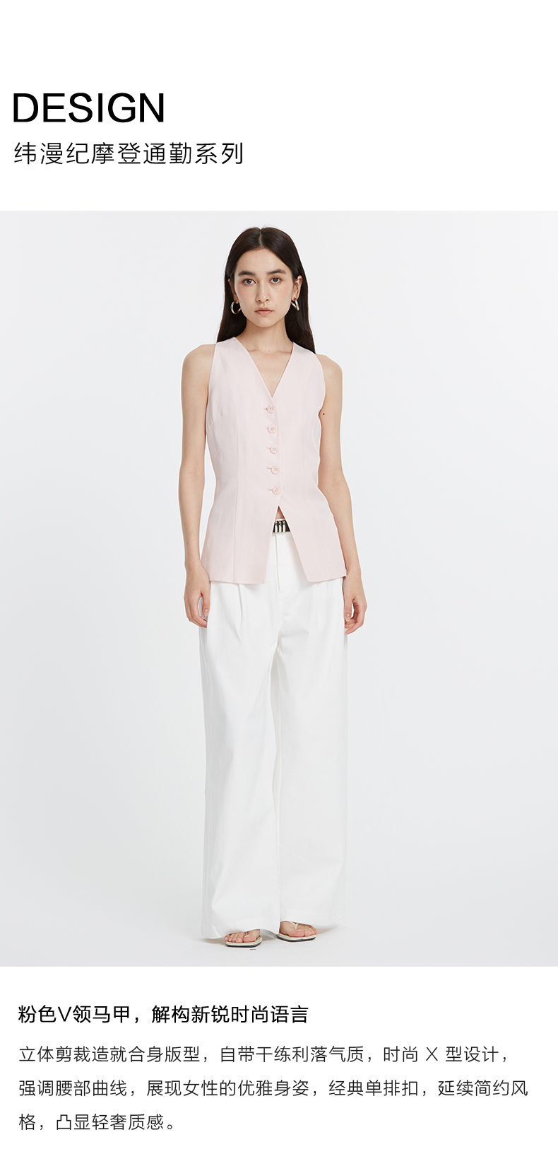 VIMAGE纬漫纪浅粉色百搭V领单排扣修身百搭马夹背心2025春季新款V2303914