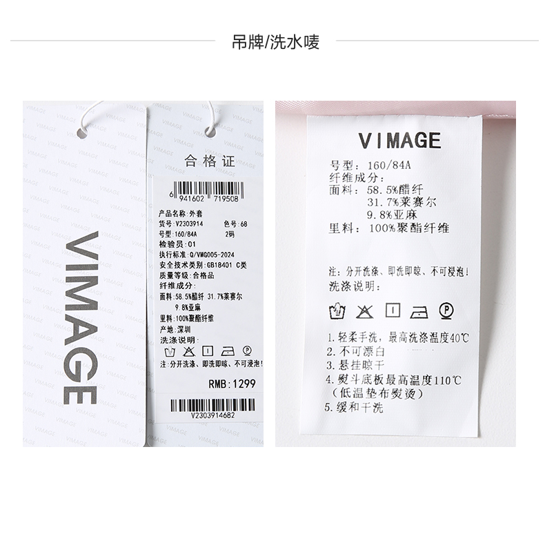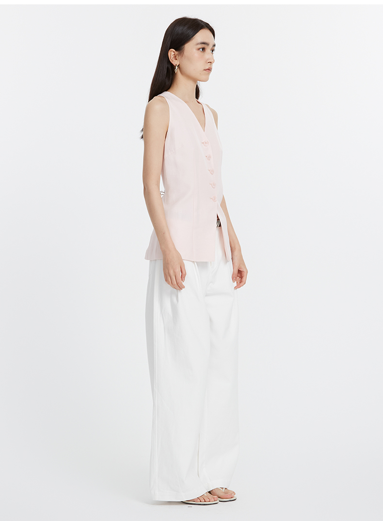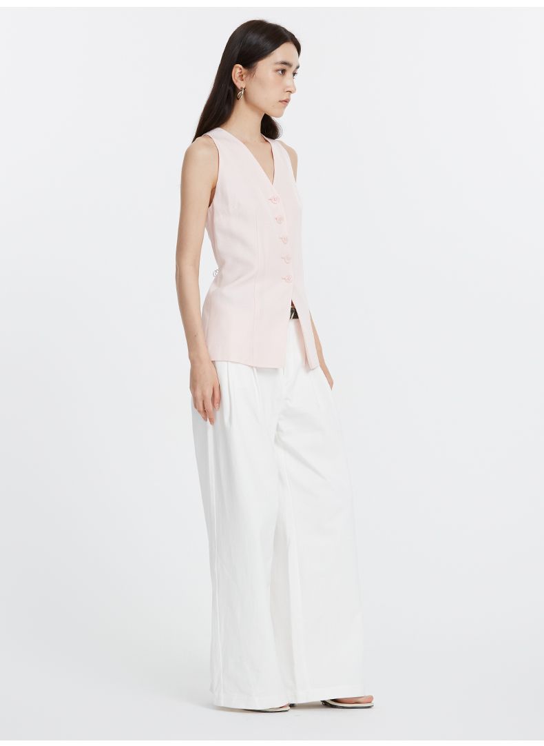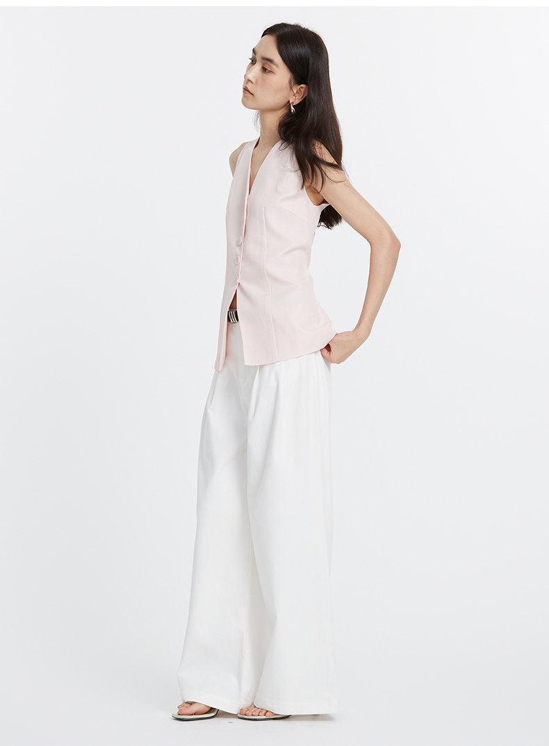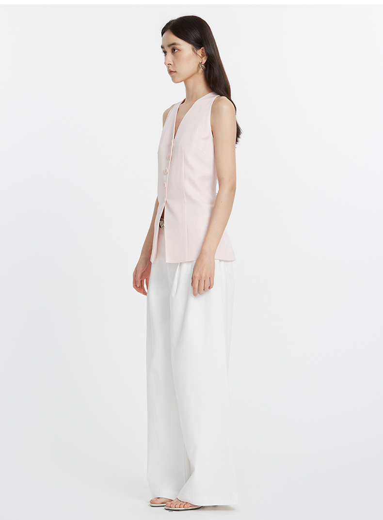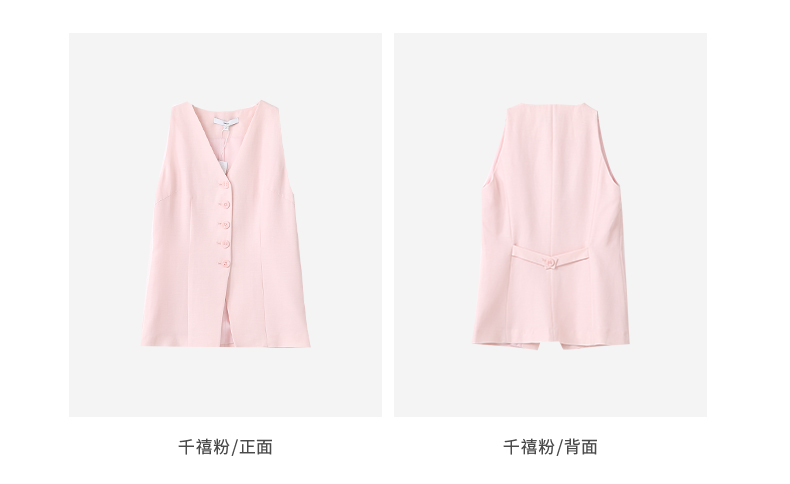 VIMAGE纬漫纪浅粉色百搭V领单排扣修身百搭马夹背心2025春季新款V2303914
