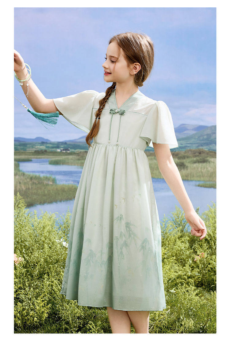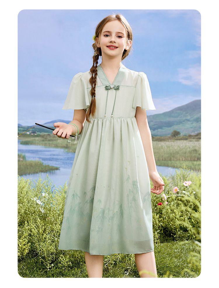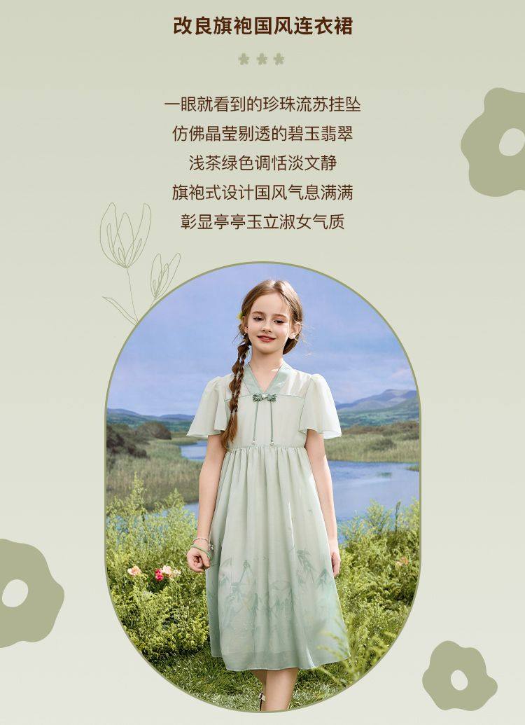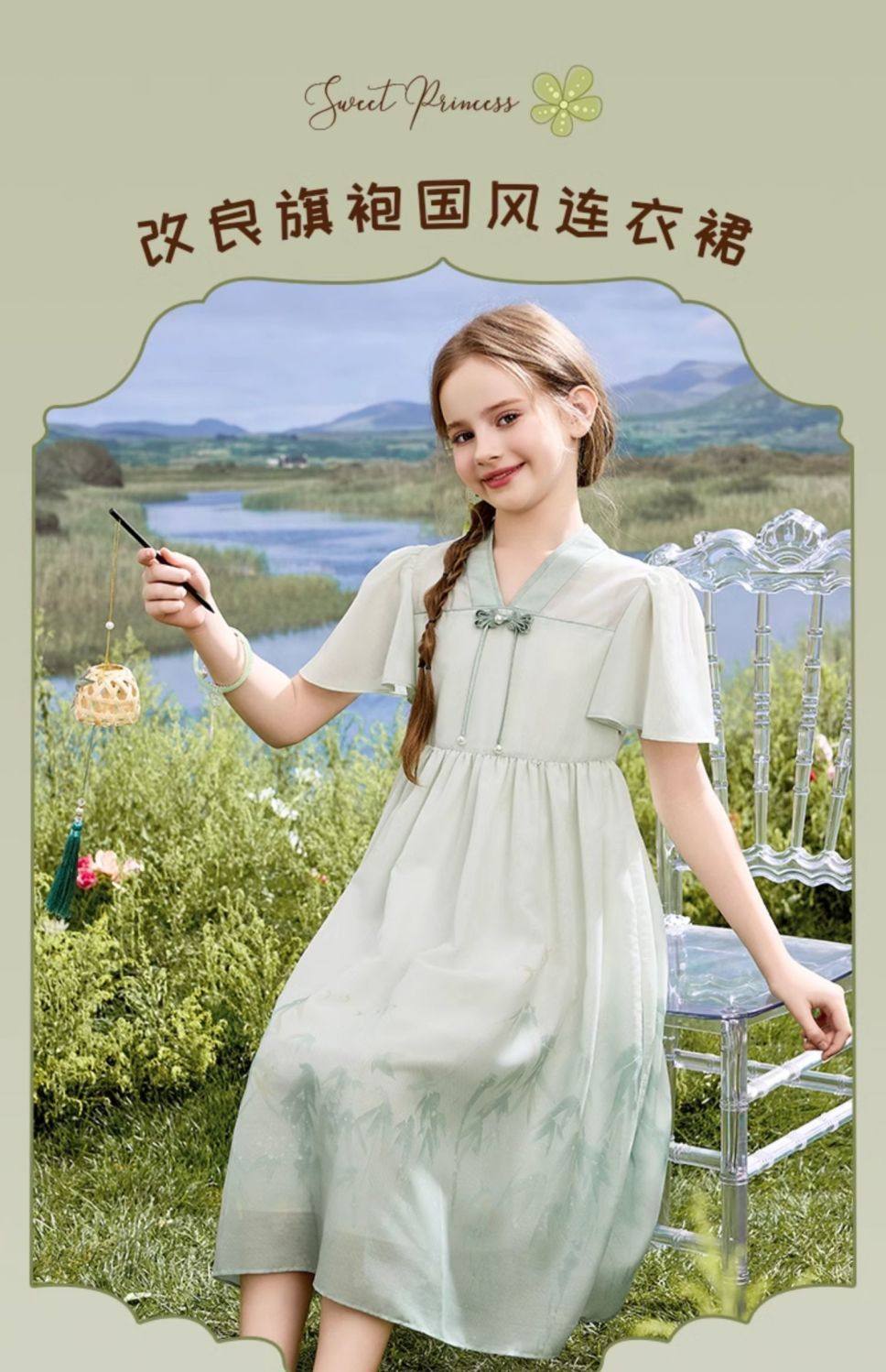 中秋大力度清仓~(不支持退)【孩提精灵】2060 改良旗袍国风新中式童连衣裙-喜出