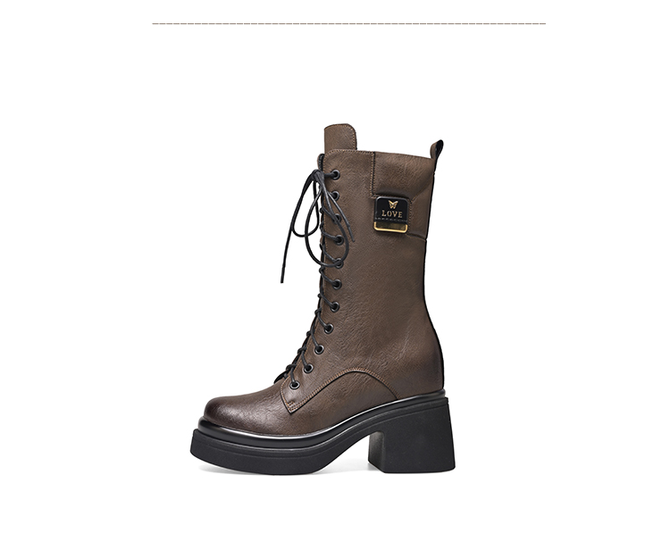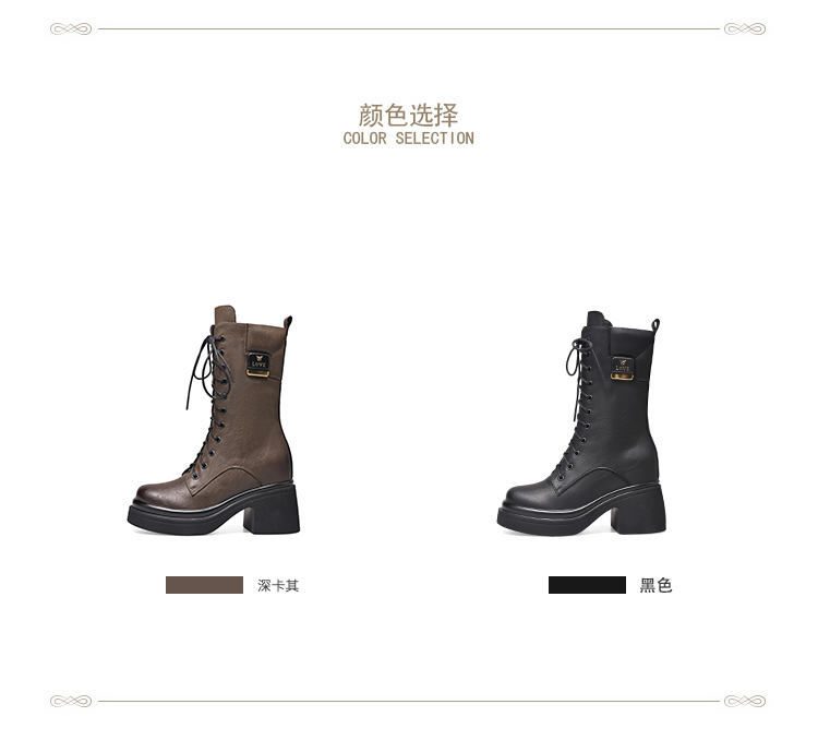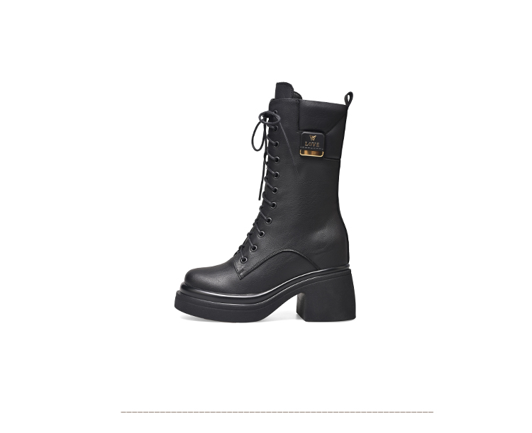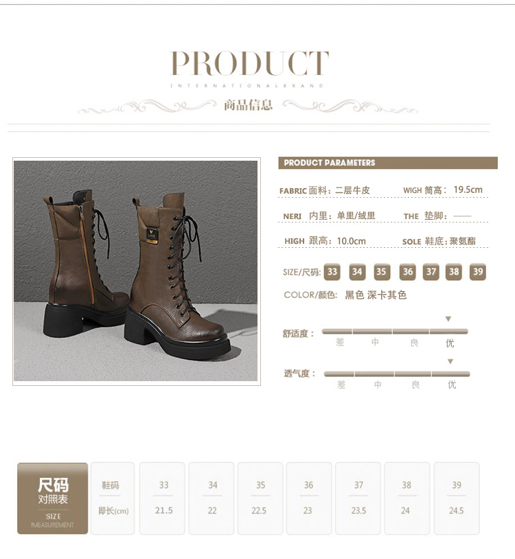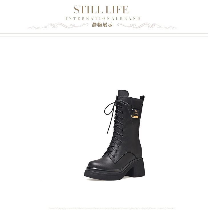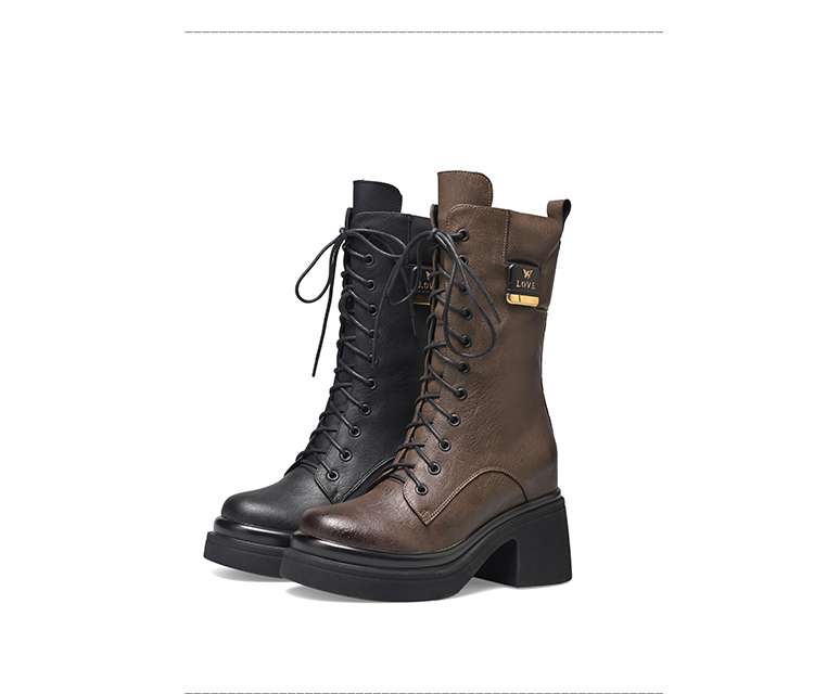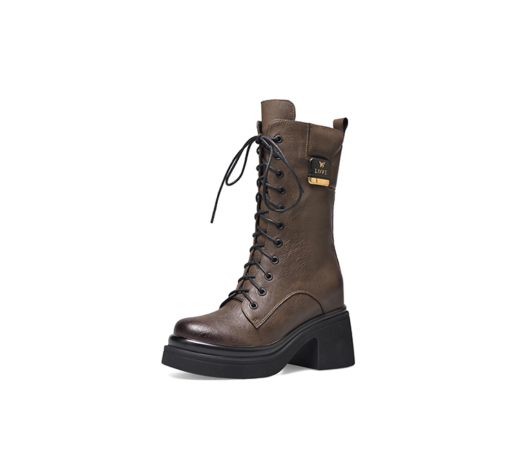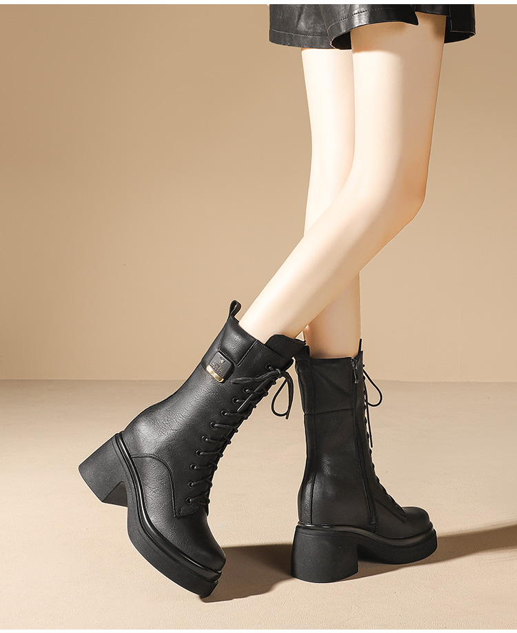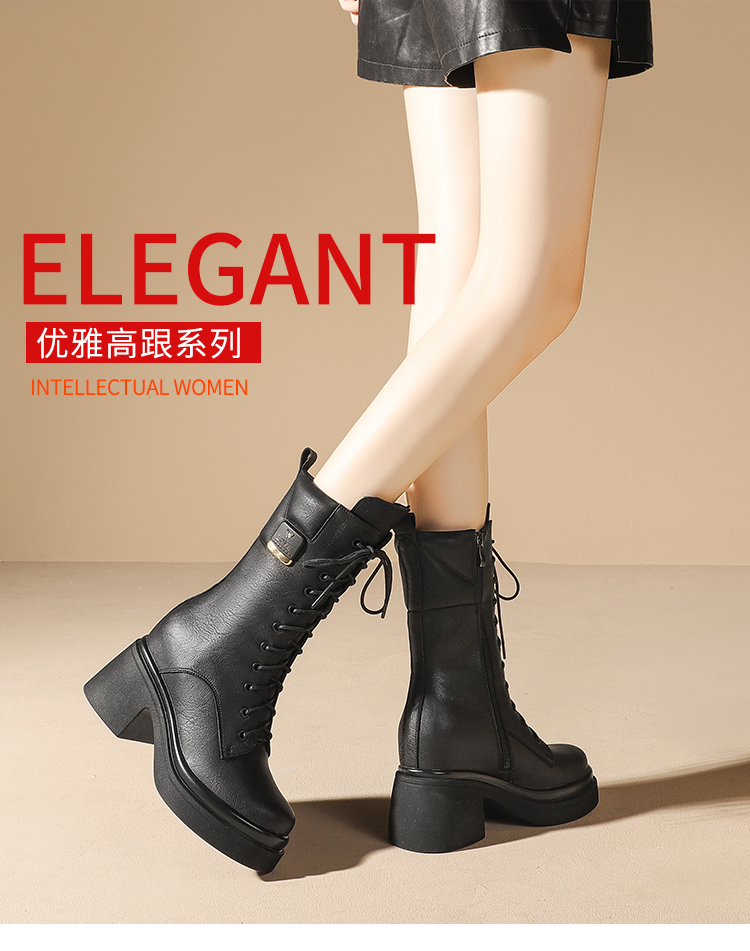 舒适百搭,绑带侧拉链真皮厚底增高短靴WWX-T7331