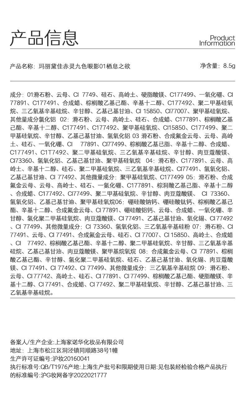 【新品上市】yz玛丽黛佳赤灵九色眼影一盘多用百搭饱和哑光大地色